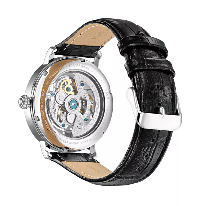 Изысканные наручные часы со сложным механизмом-скелетоном и функцией автоподзавода с запасом хода 35 часов влюбляют в себя с первого взгляда.