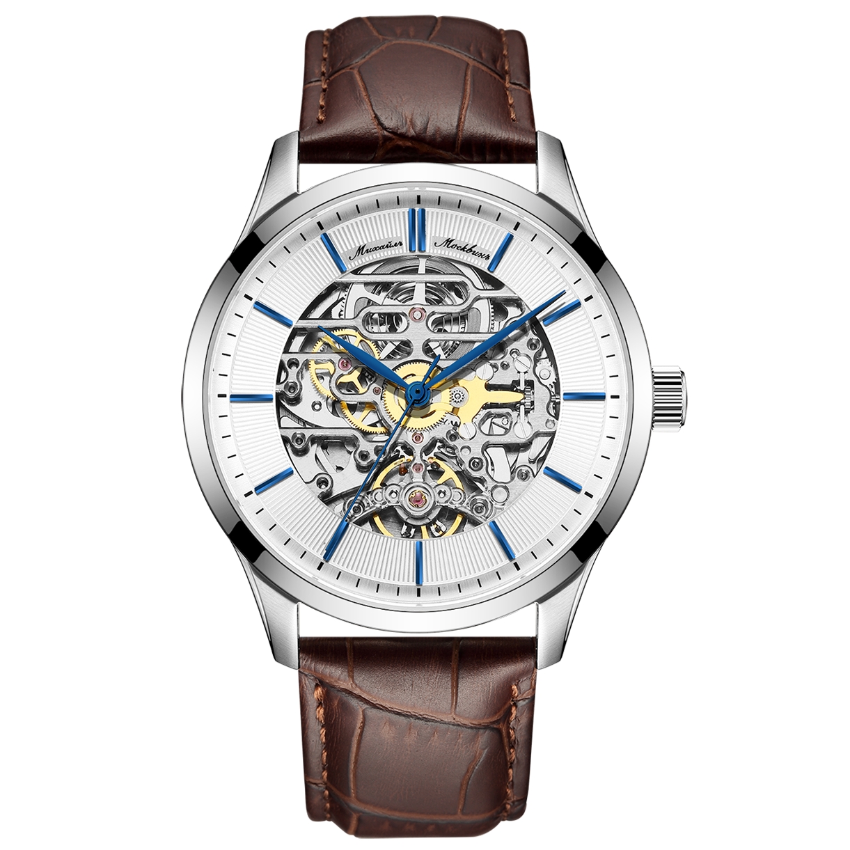 Наручные механические часы с автоподзаводом Mikhail Moskvin "Elegance" серебристые с коричневым ремешком