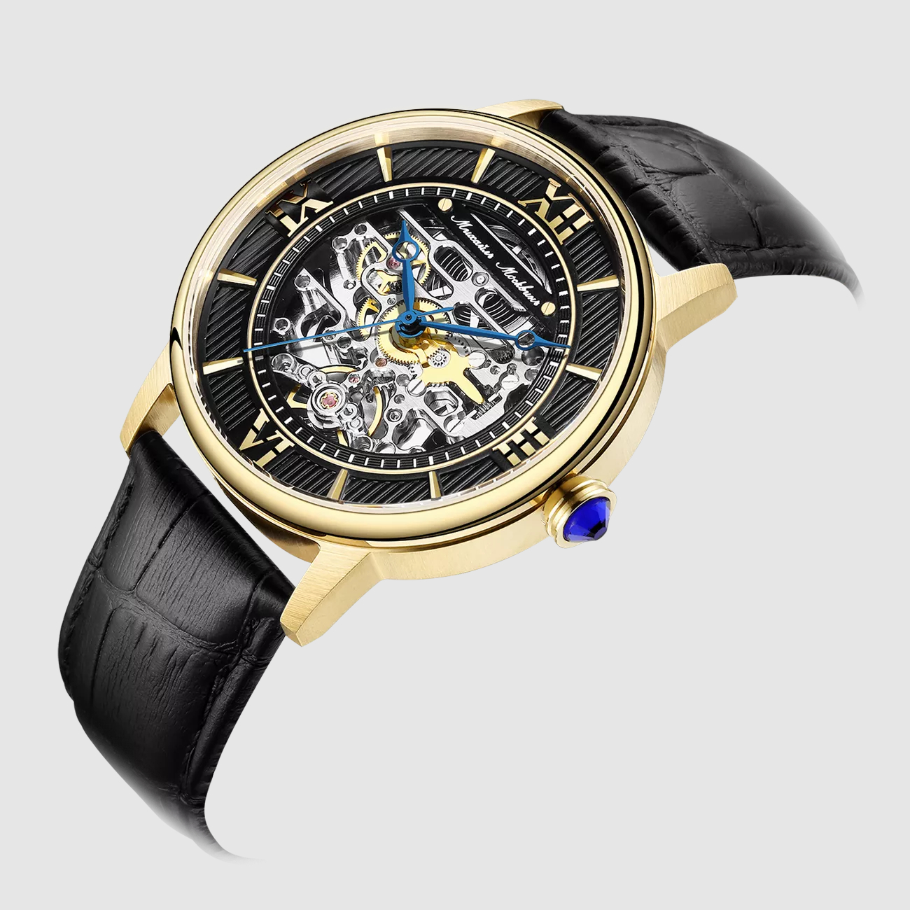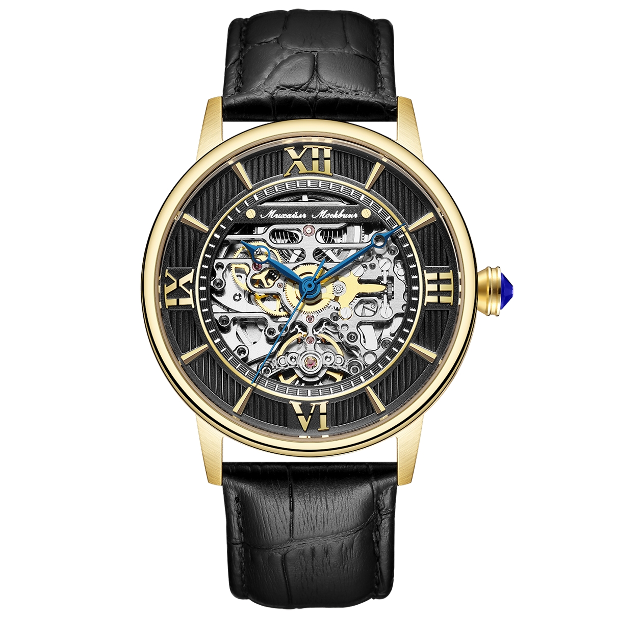 Наручные механические часы с автоподзаводом Mikhail Moskvin "Elegance" золотисто-черные с черным ремешком