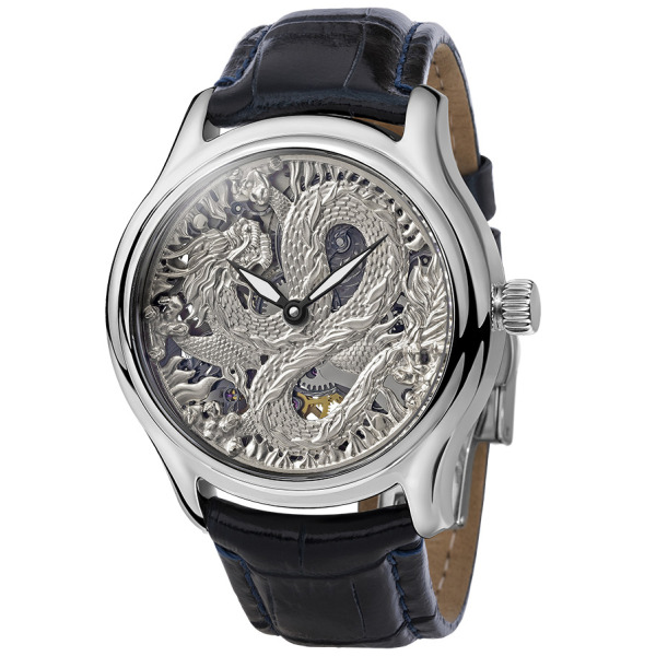 Эти часы — редкий симбиоз инженерного гения и художественного мастерства. Полностью скелетонированный механизм и детализированный циферблат с драконом делают их по-настоящему уникальными, а ручная обработка возводит в ранг коллекционного искусства. Это не просто хронометр — это механическая скульптура, застывшая в серебре, созданная для истинных ценителей часового мастерства.
