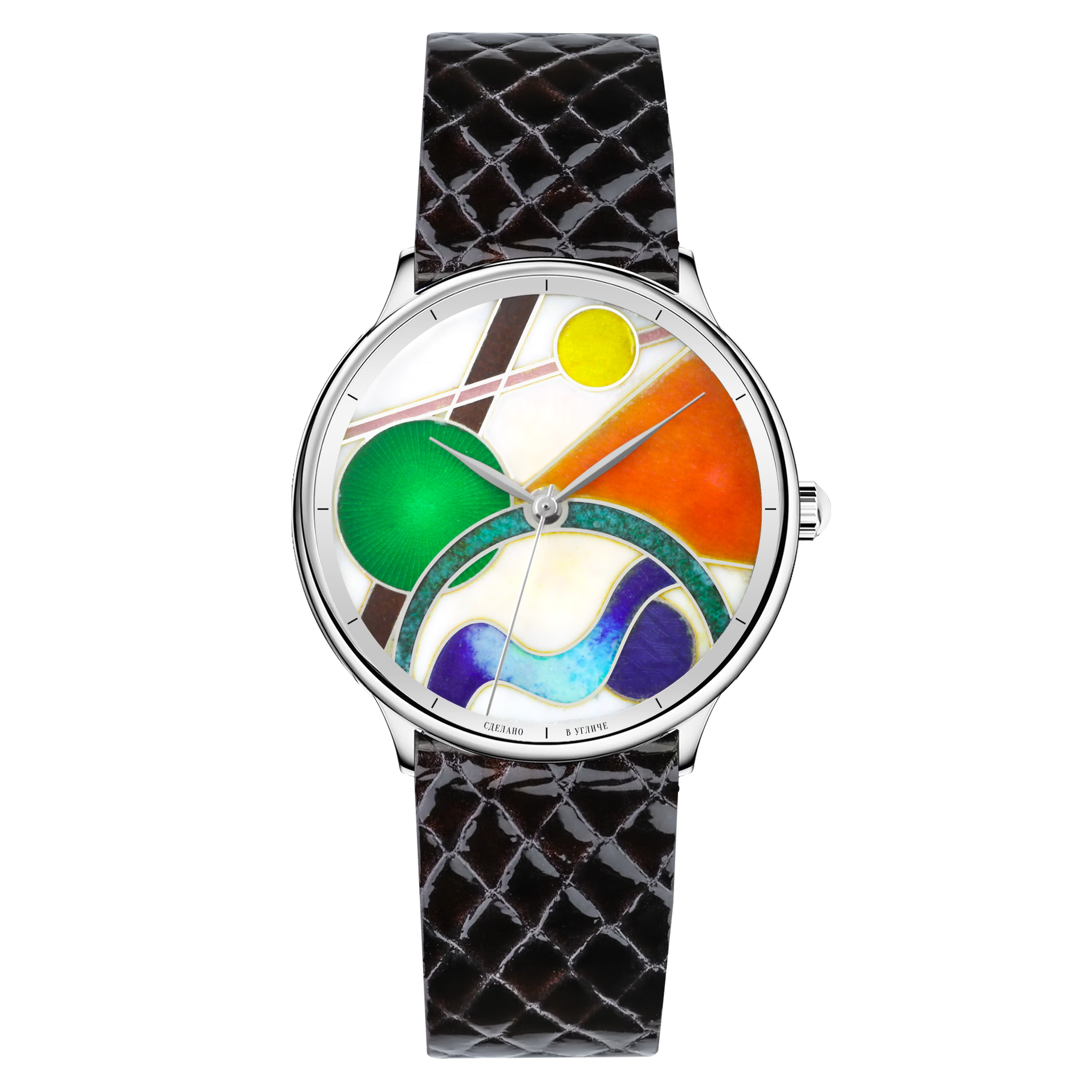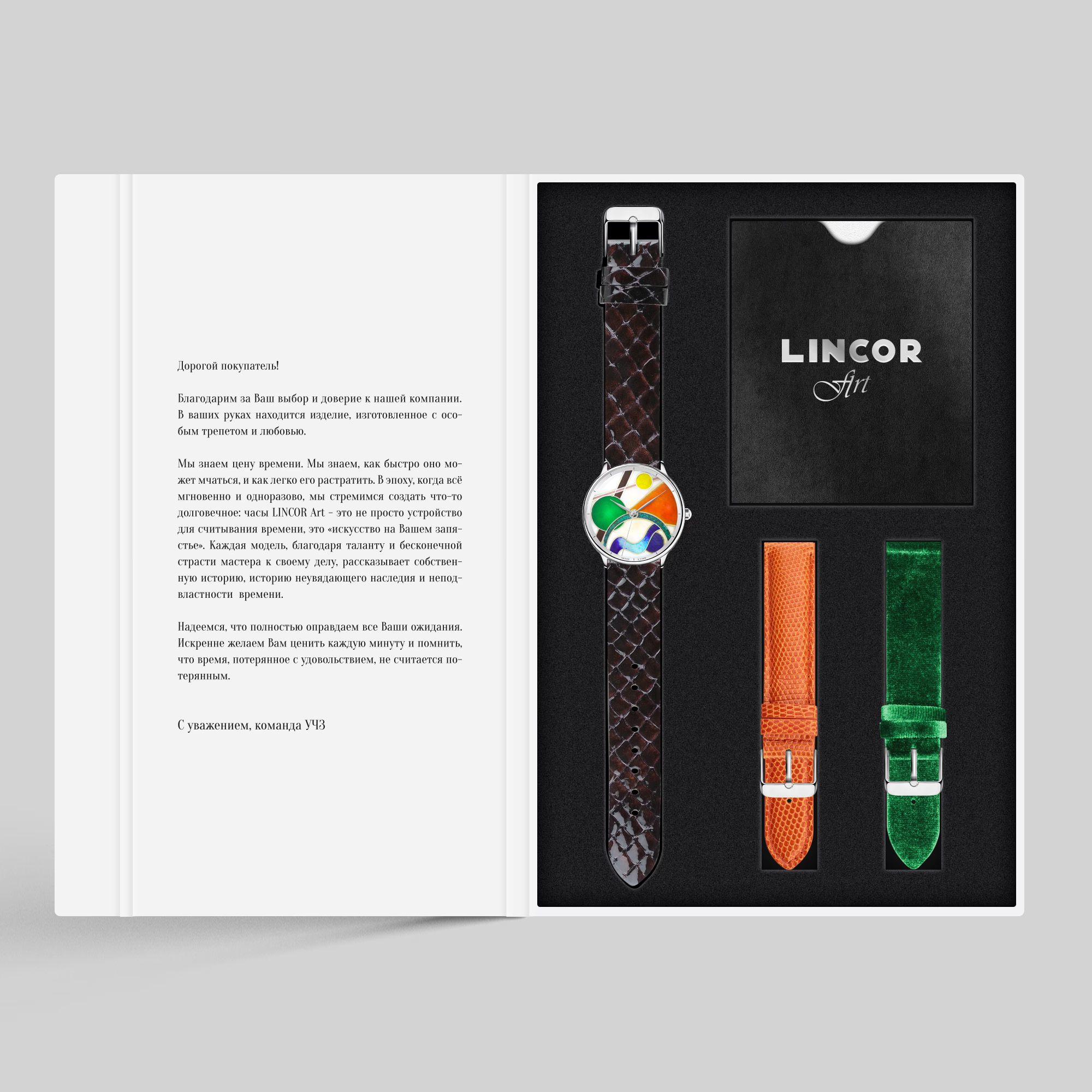 Наручные кварцевые часы Lincor "ART Эмили 8225" серебристые с черным ремешком