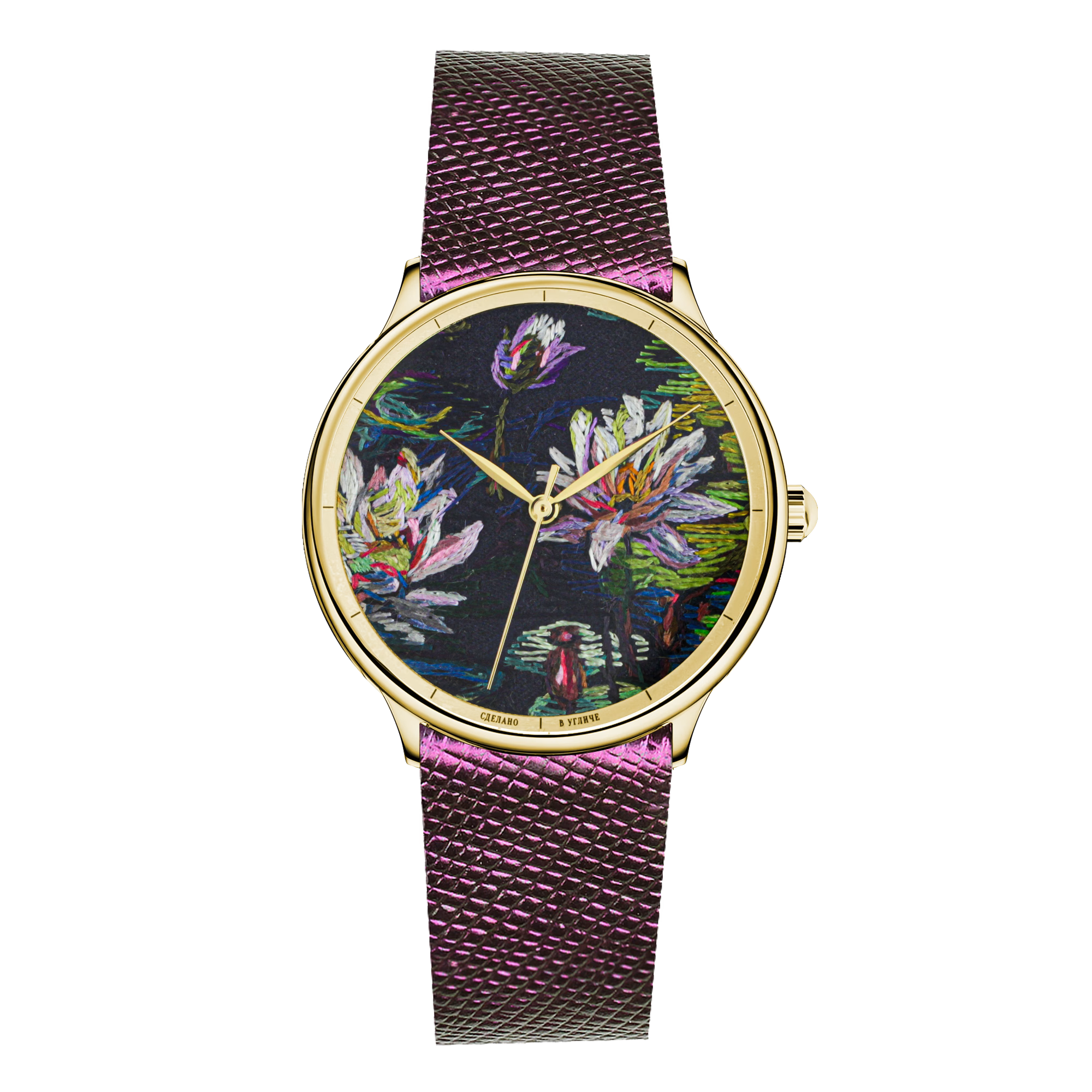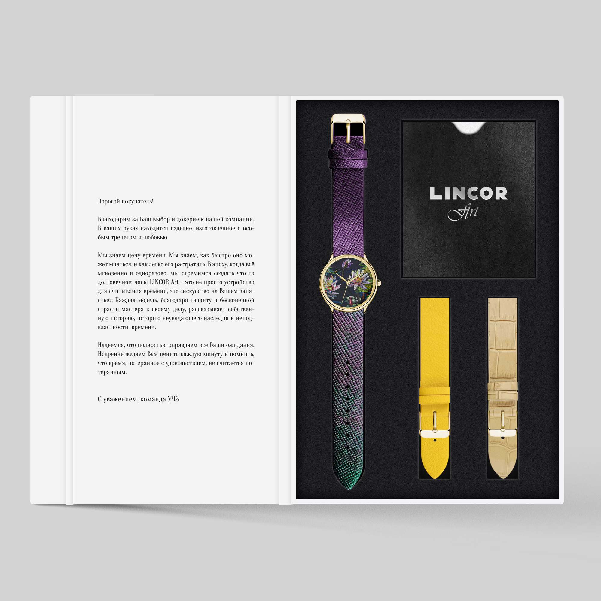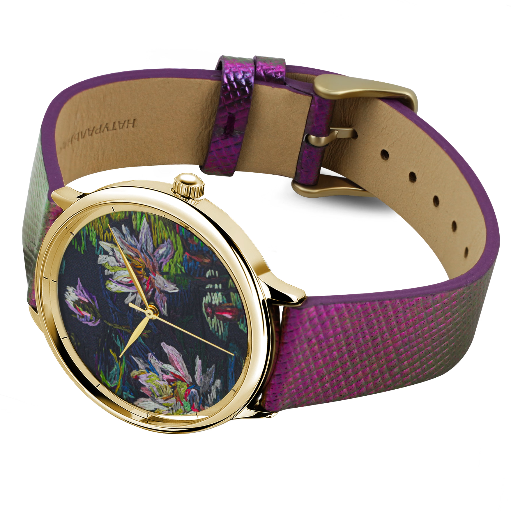 Наручные кварцевые часы Lincor "ART Этника" золотистые с фиолетовым ремешком