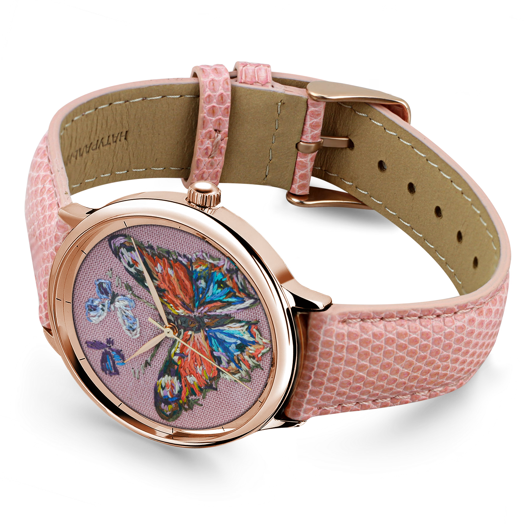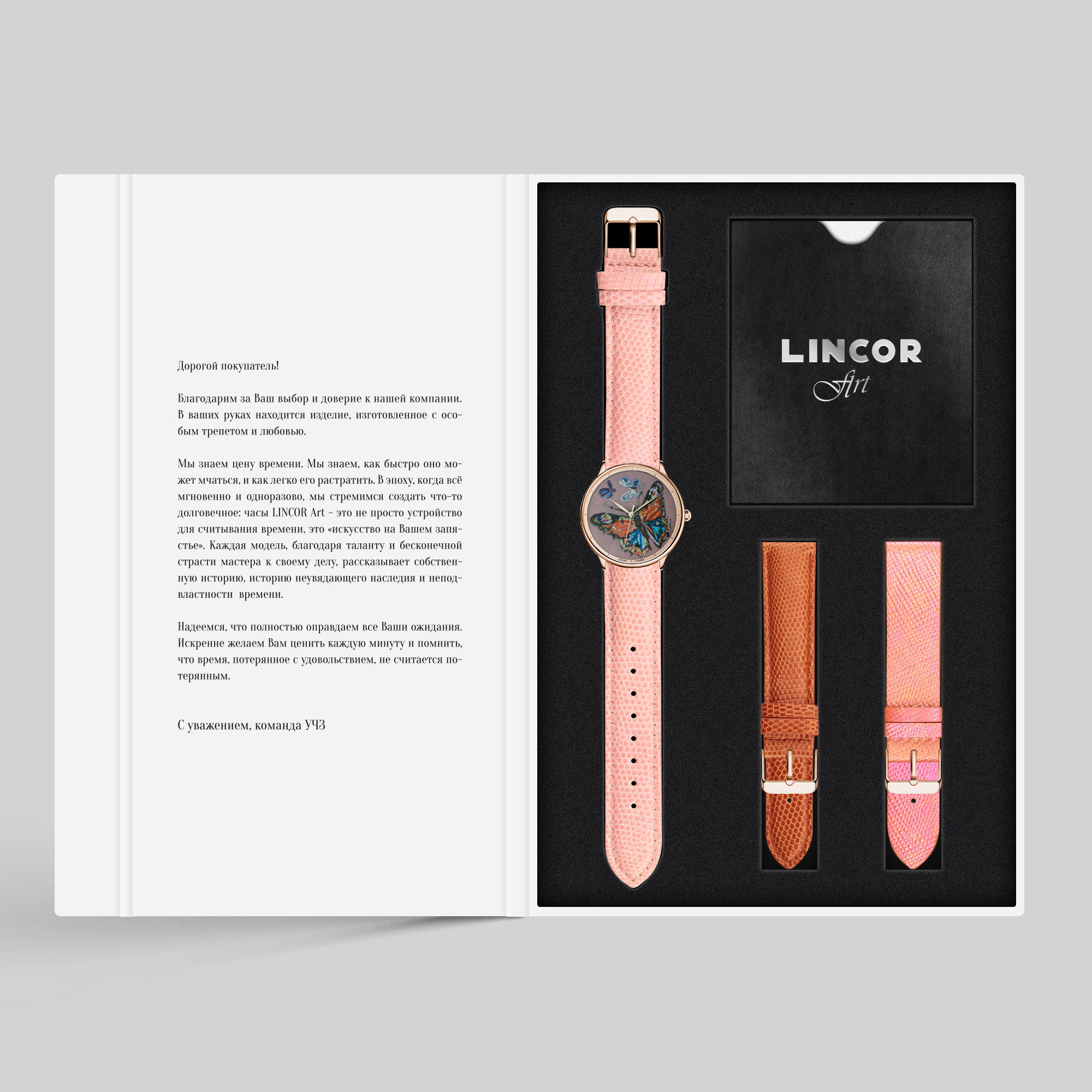 Наручные кварцевые часы Lincor "ART Этника" золотистые с розовым ремешком