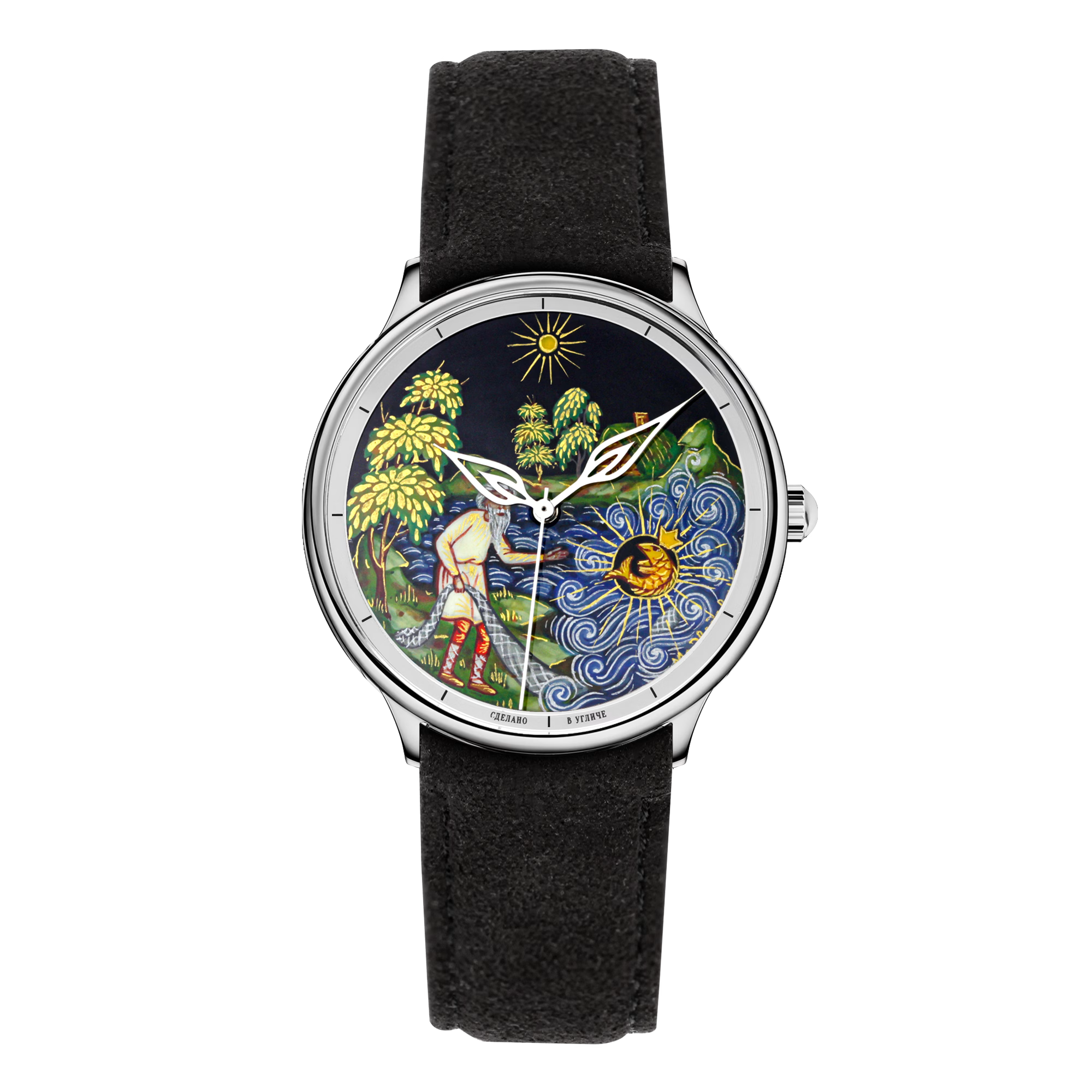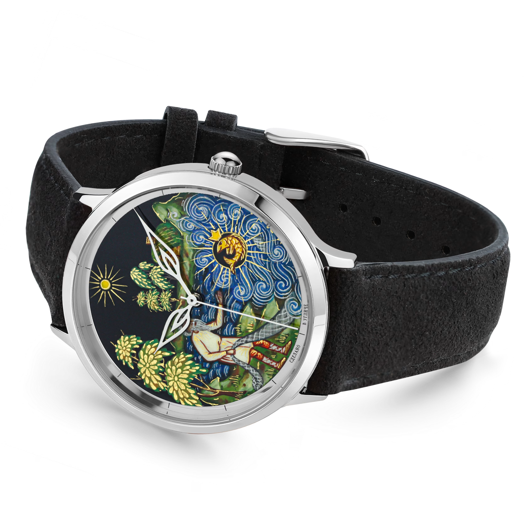 Наручные кварцевые часы Lincor "ART Традиции - Сентябрь" серебристые с черным ремешком