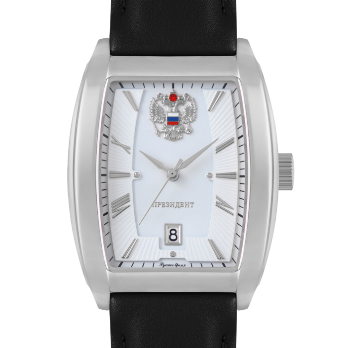 Наручные кварцевые часы Президент бело-серебристые, с черным ремешком