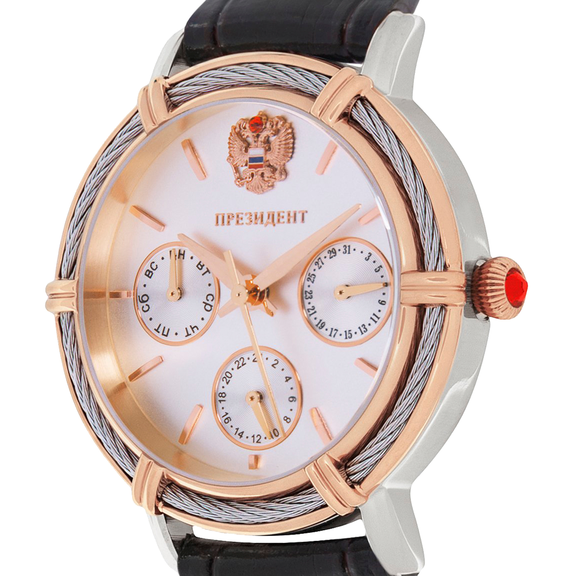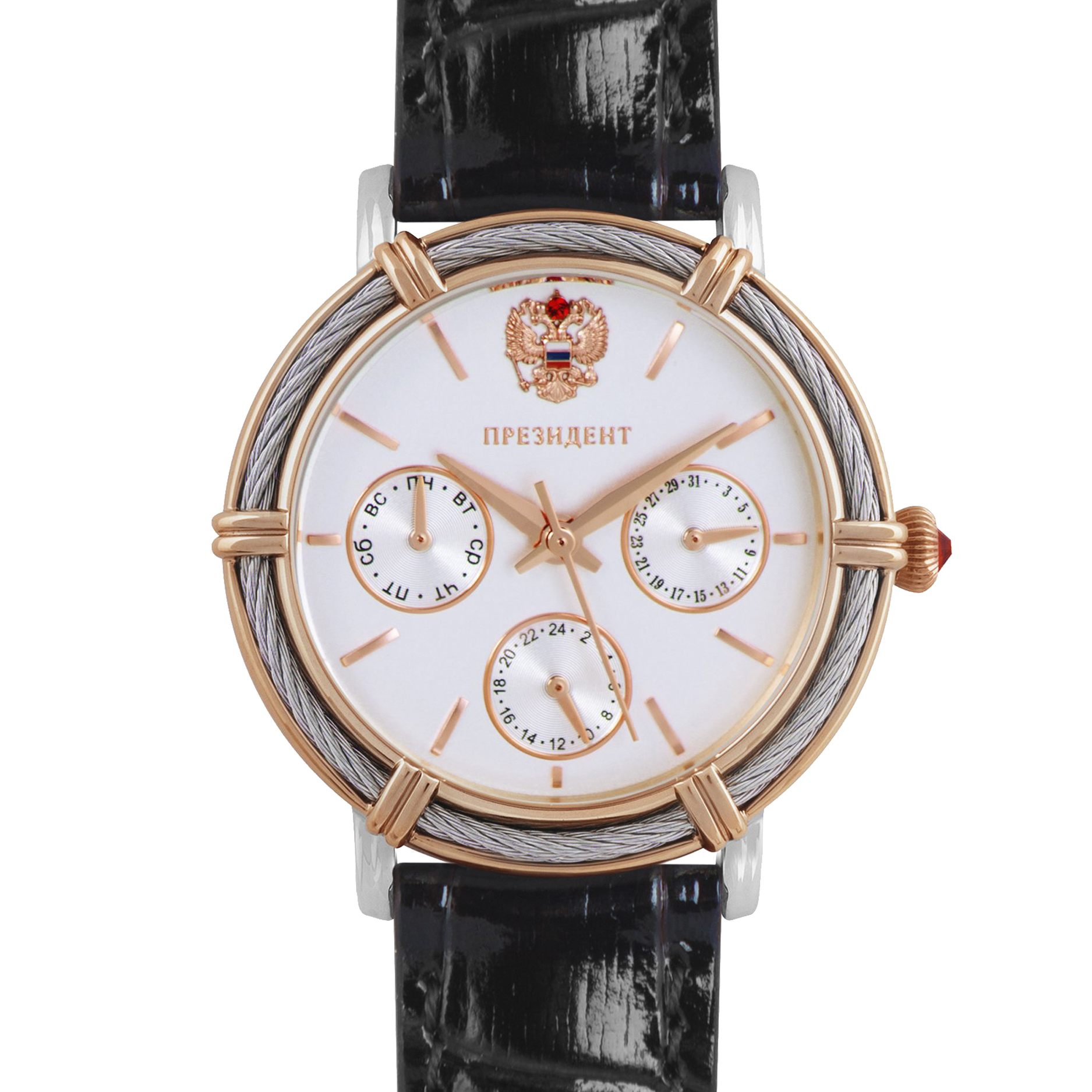 Наручные кварцевые часы Президент бело-золотистые, с черным ремешком