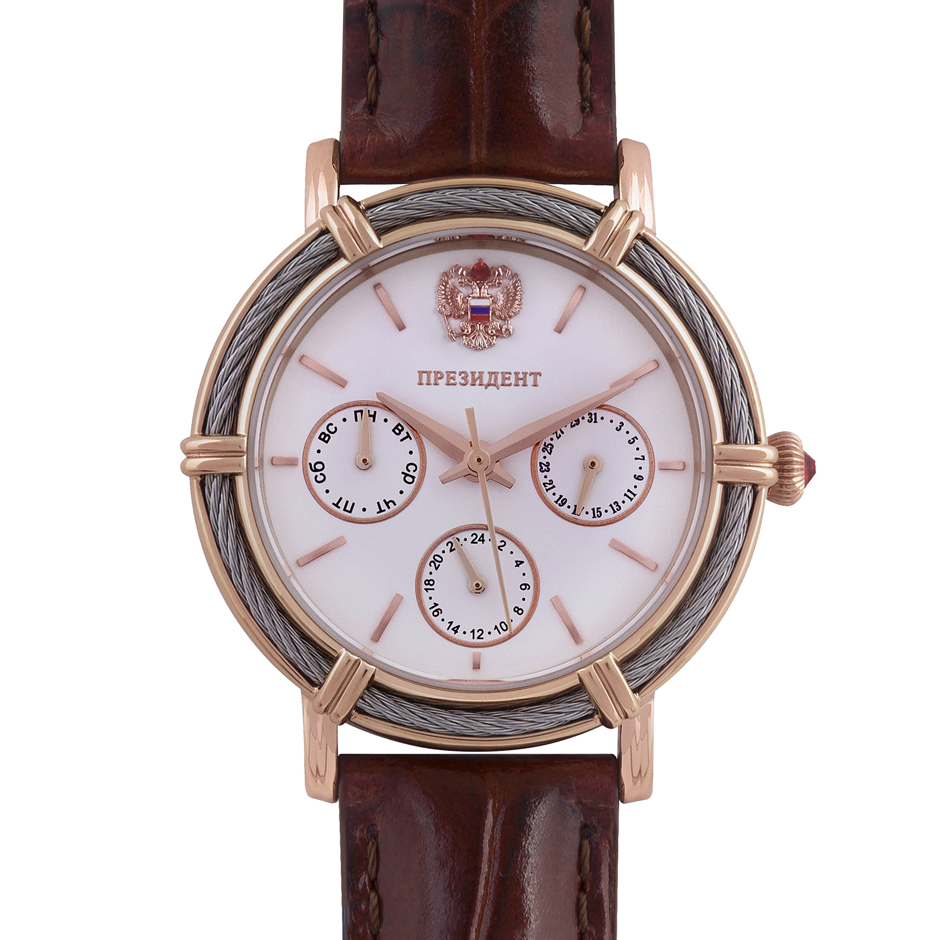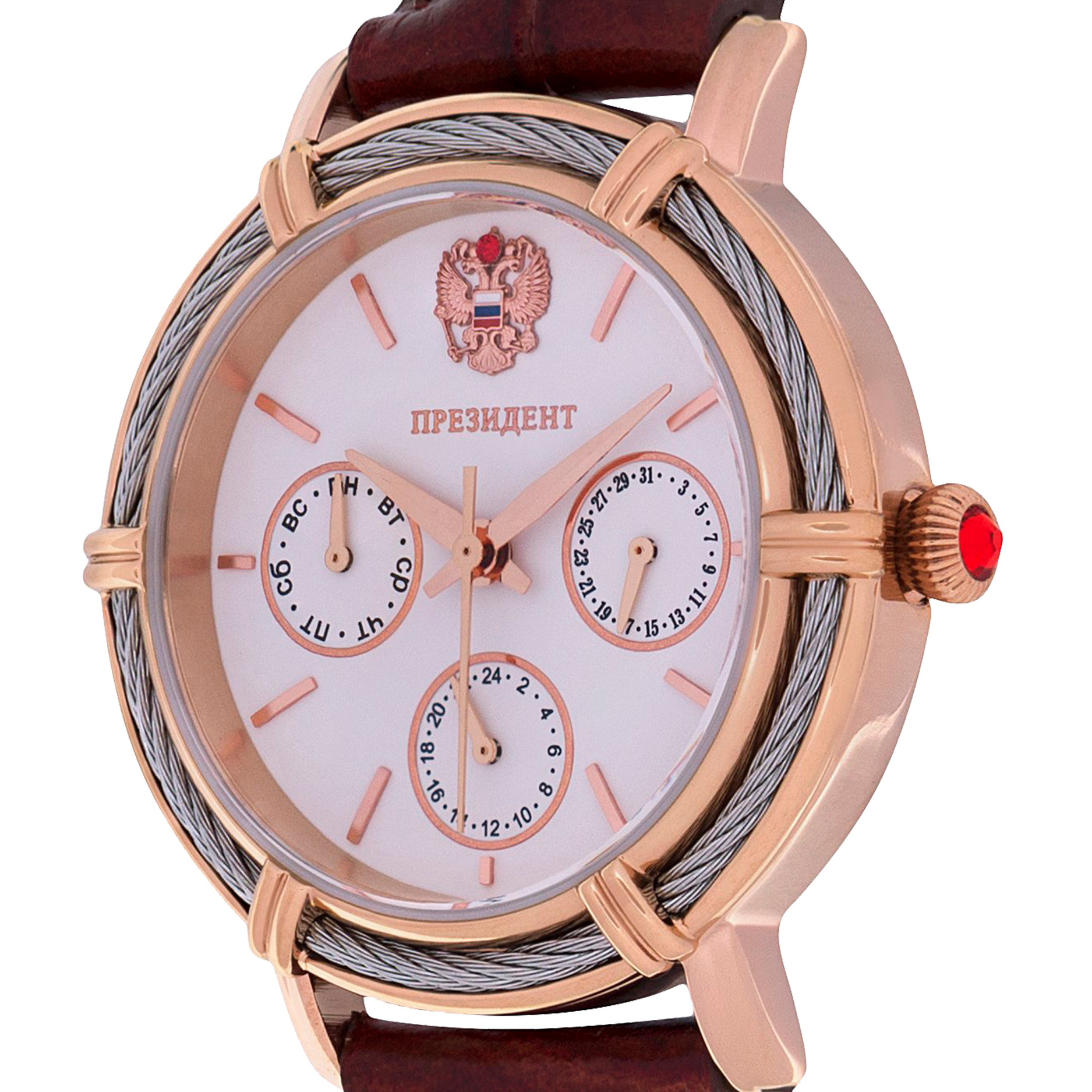 Наручные кварцевые часы Президент бело-золотистые, с коричневым ремешком