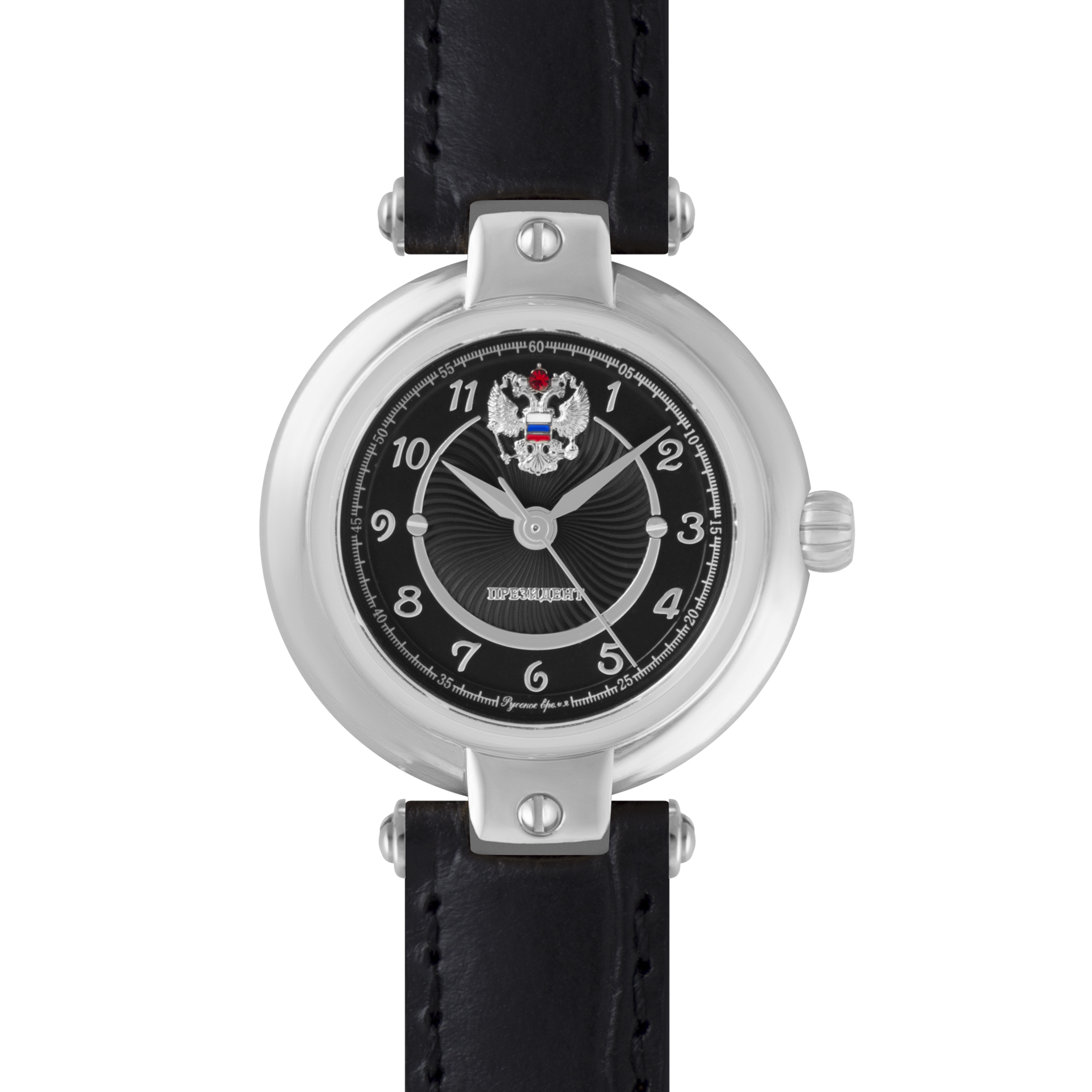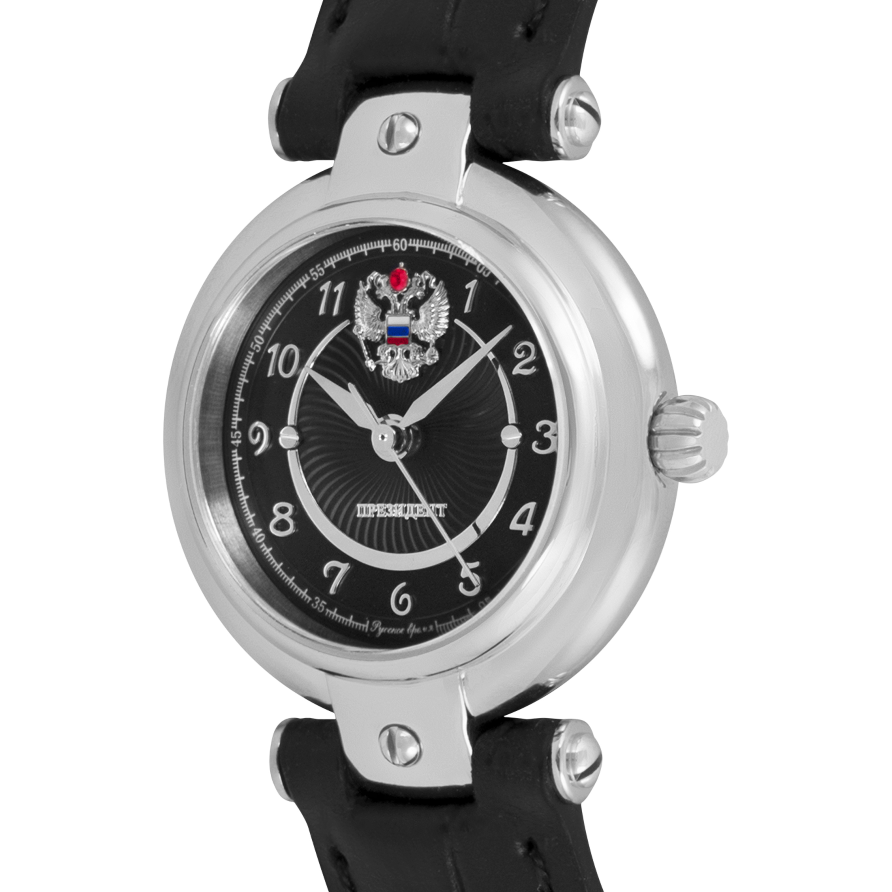 Наручные кварцевые часы Президент черно-серебристые, с черным ремешком