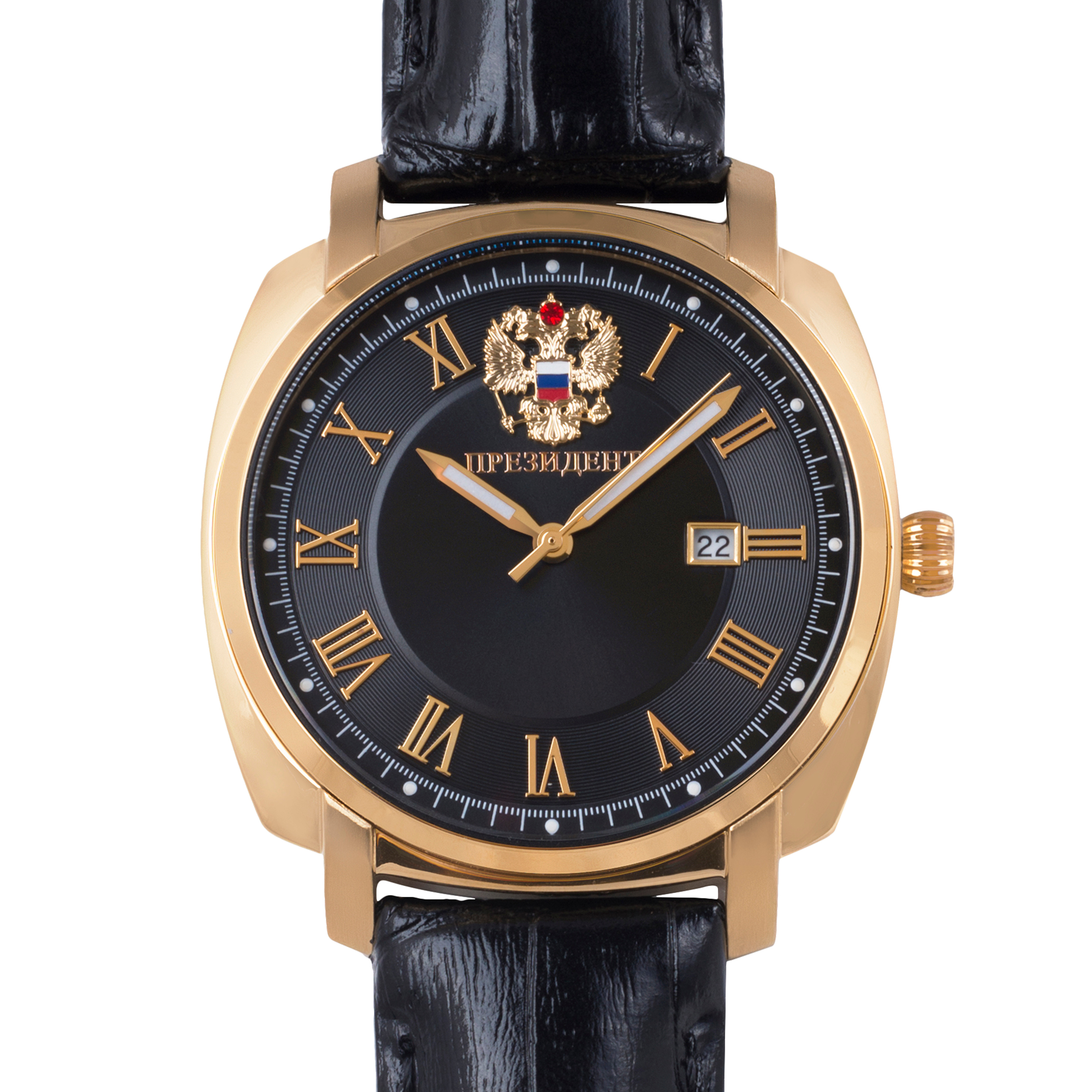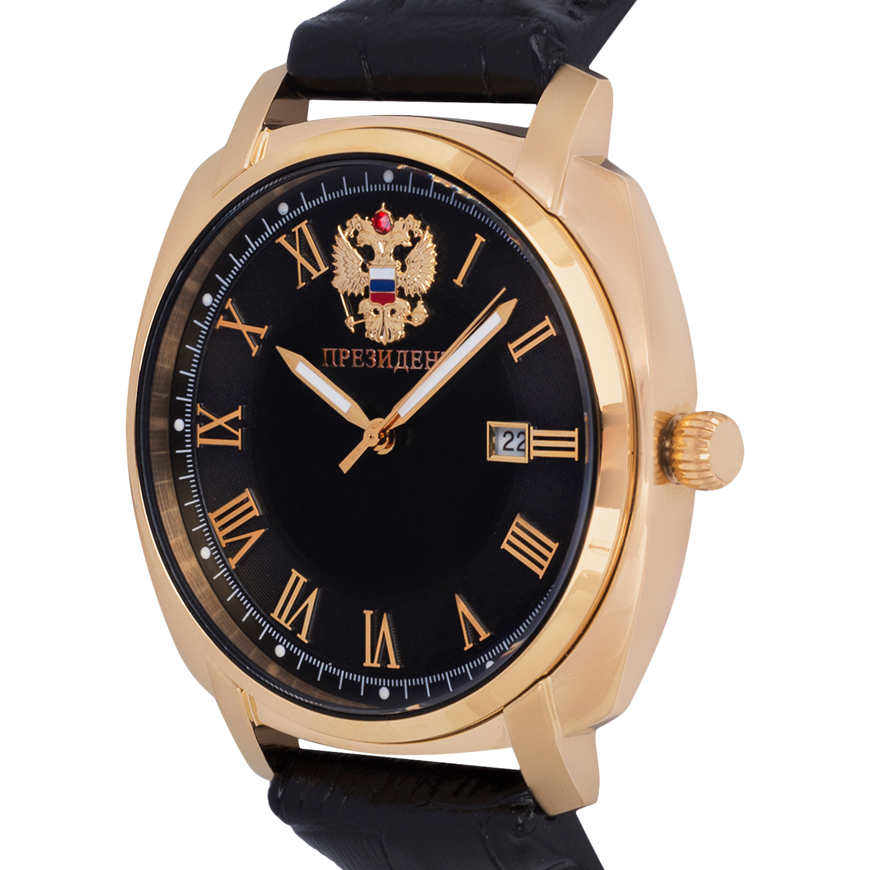 Наручные кварцевые часы Президент черно-золотистые, с черным ремешком