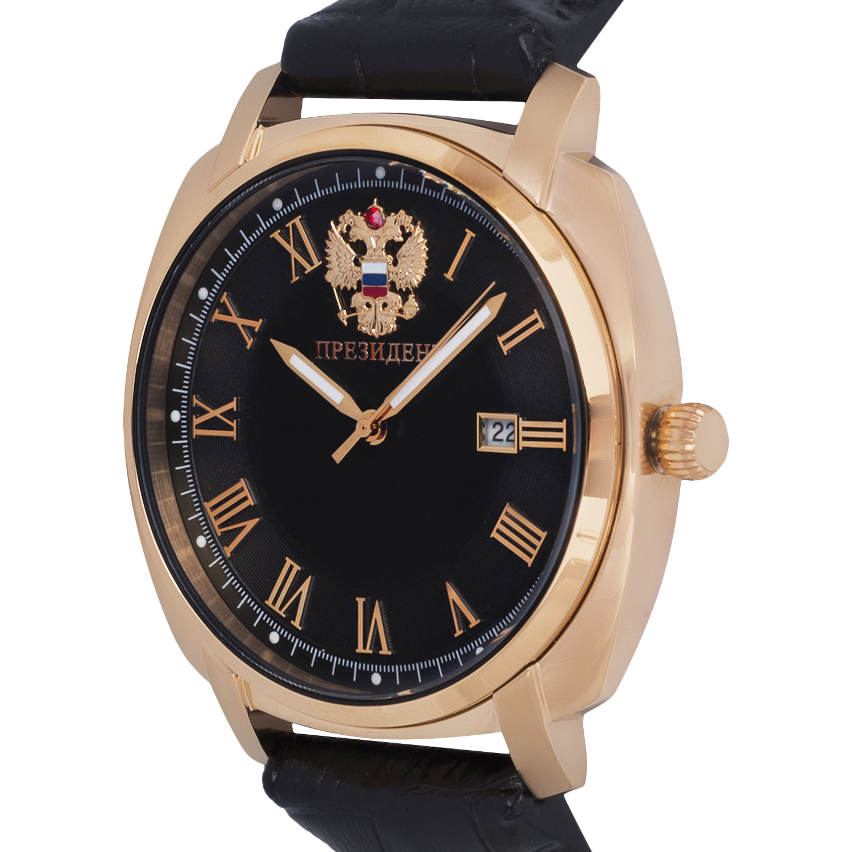 Наручные кварцевые часы Президент черно-золотистые, с черным ремешком