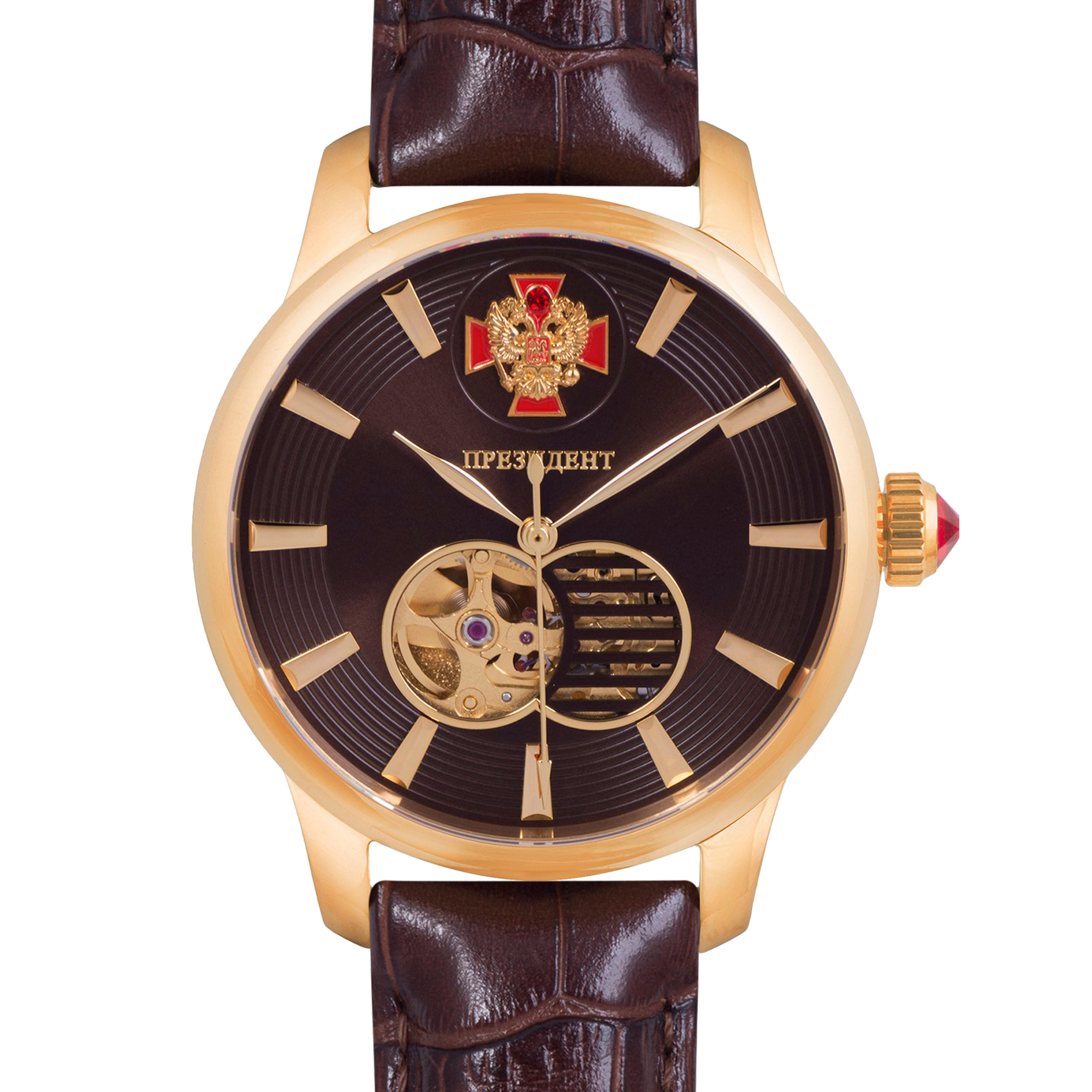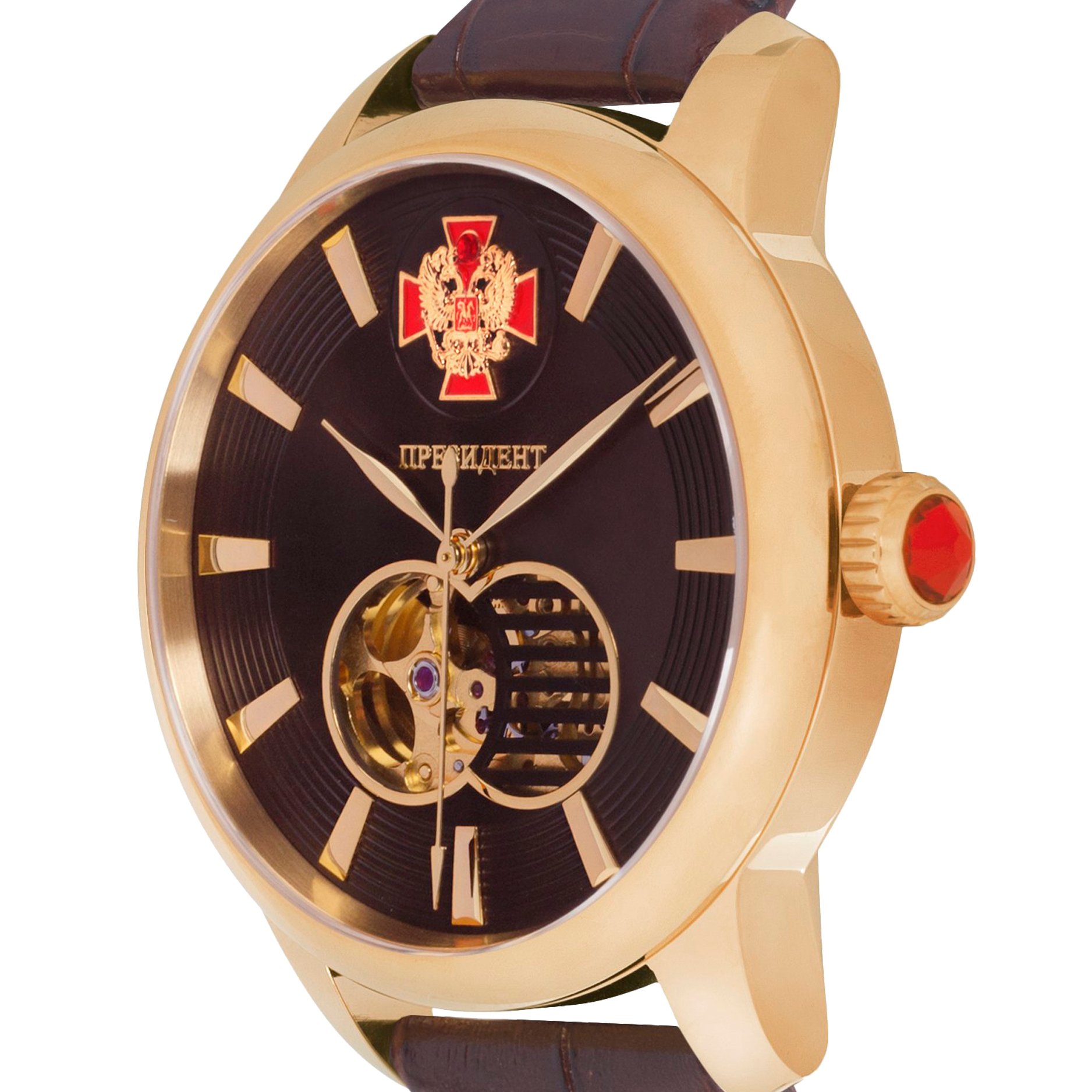 Наручные кварцевые часы Президент коричнево-золотистые, с коричневым ремешком