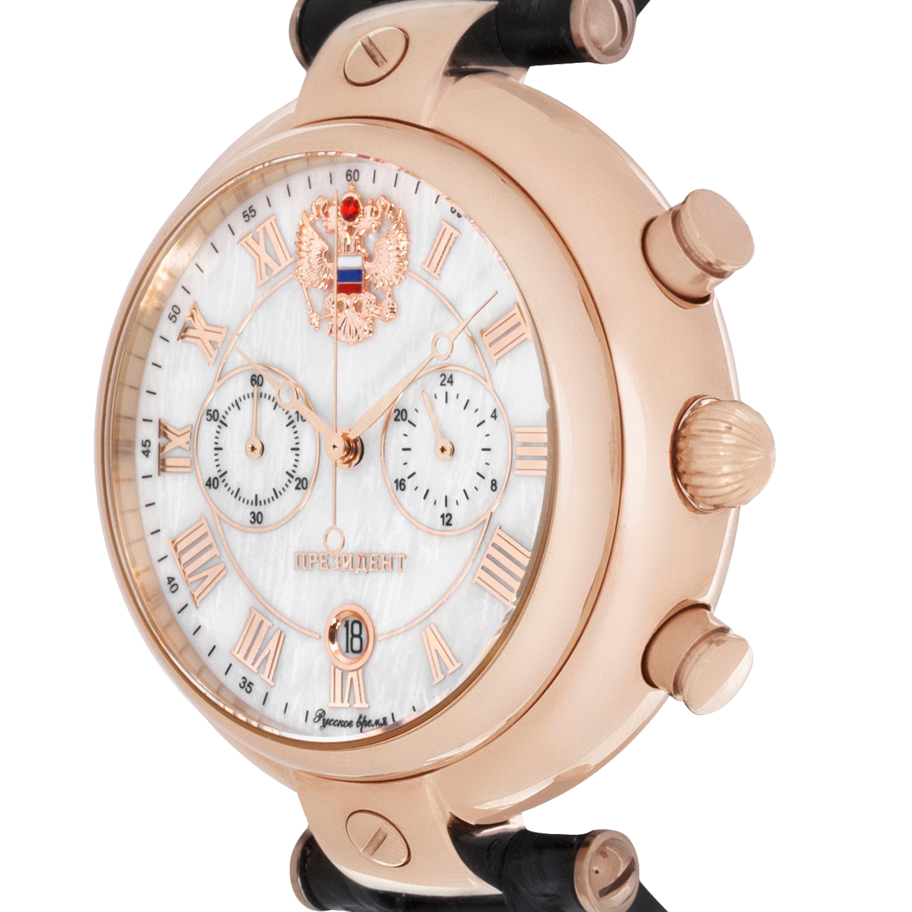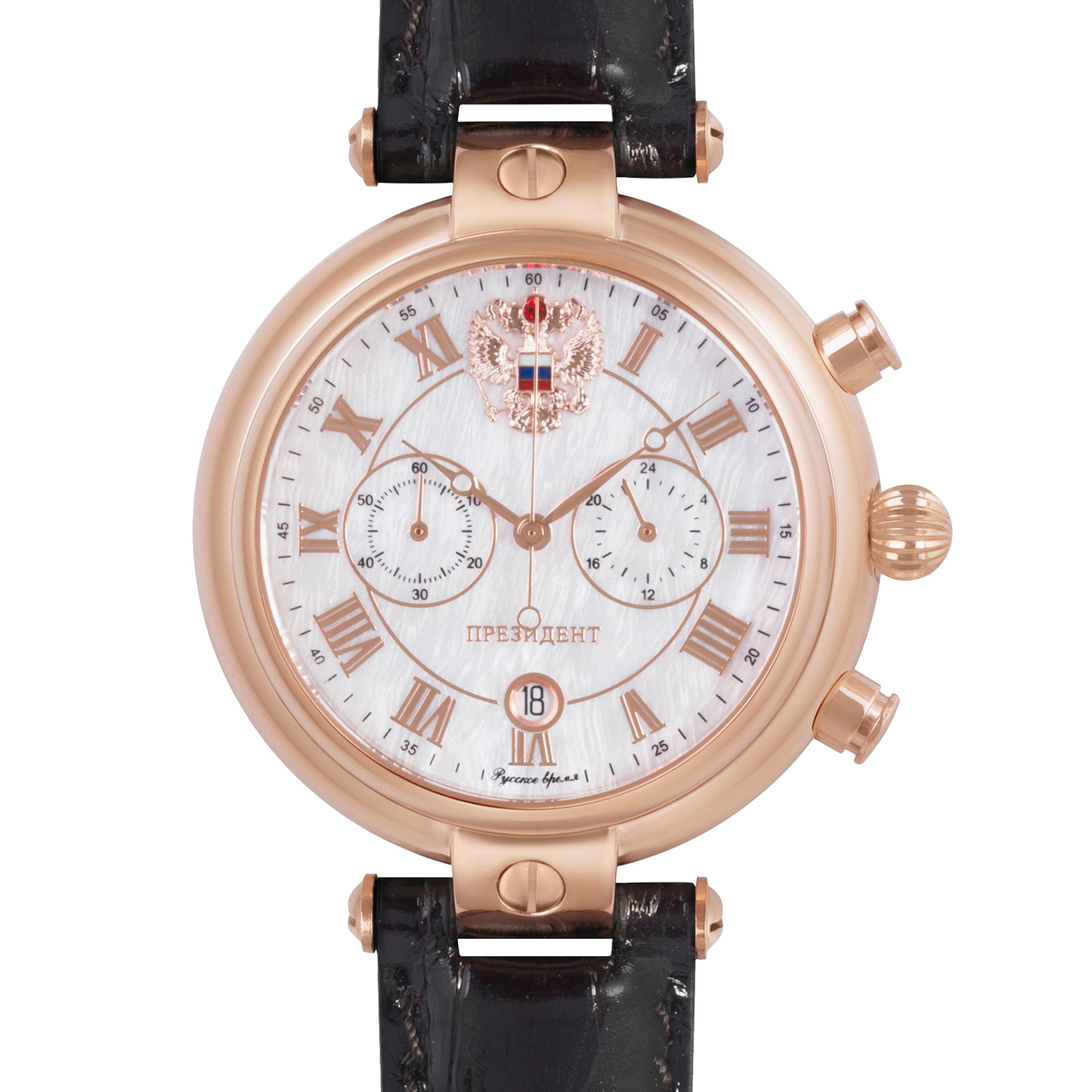 Наручные кварцевые часы Президент пперламутрово-золотистые, с коричневым ремешком