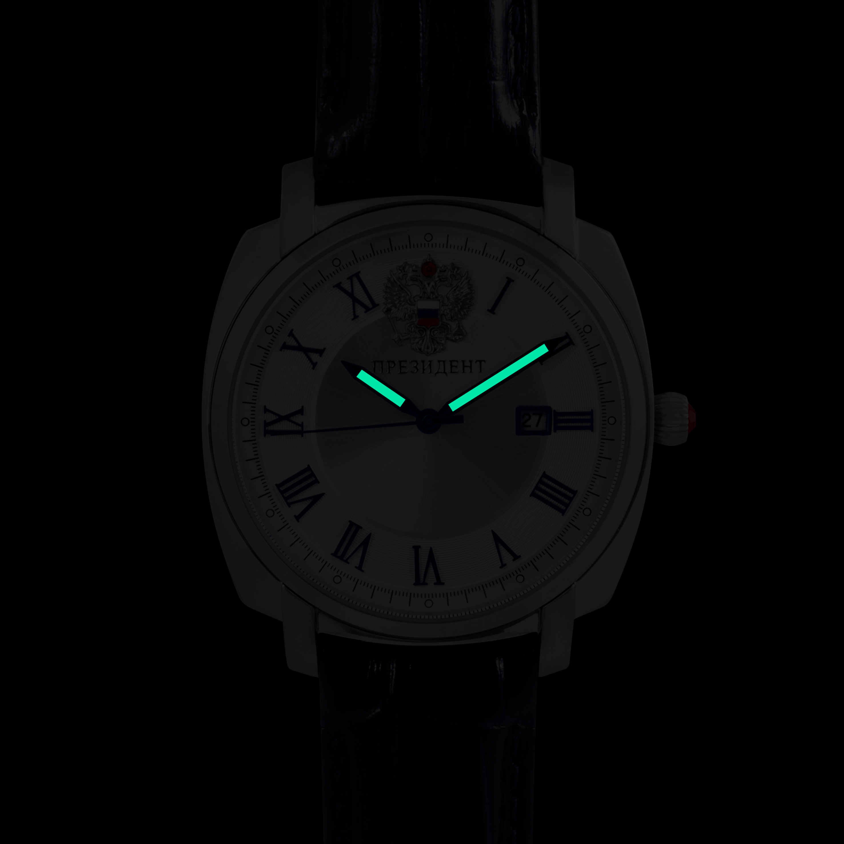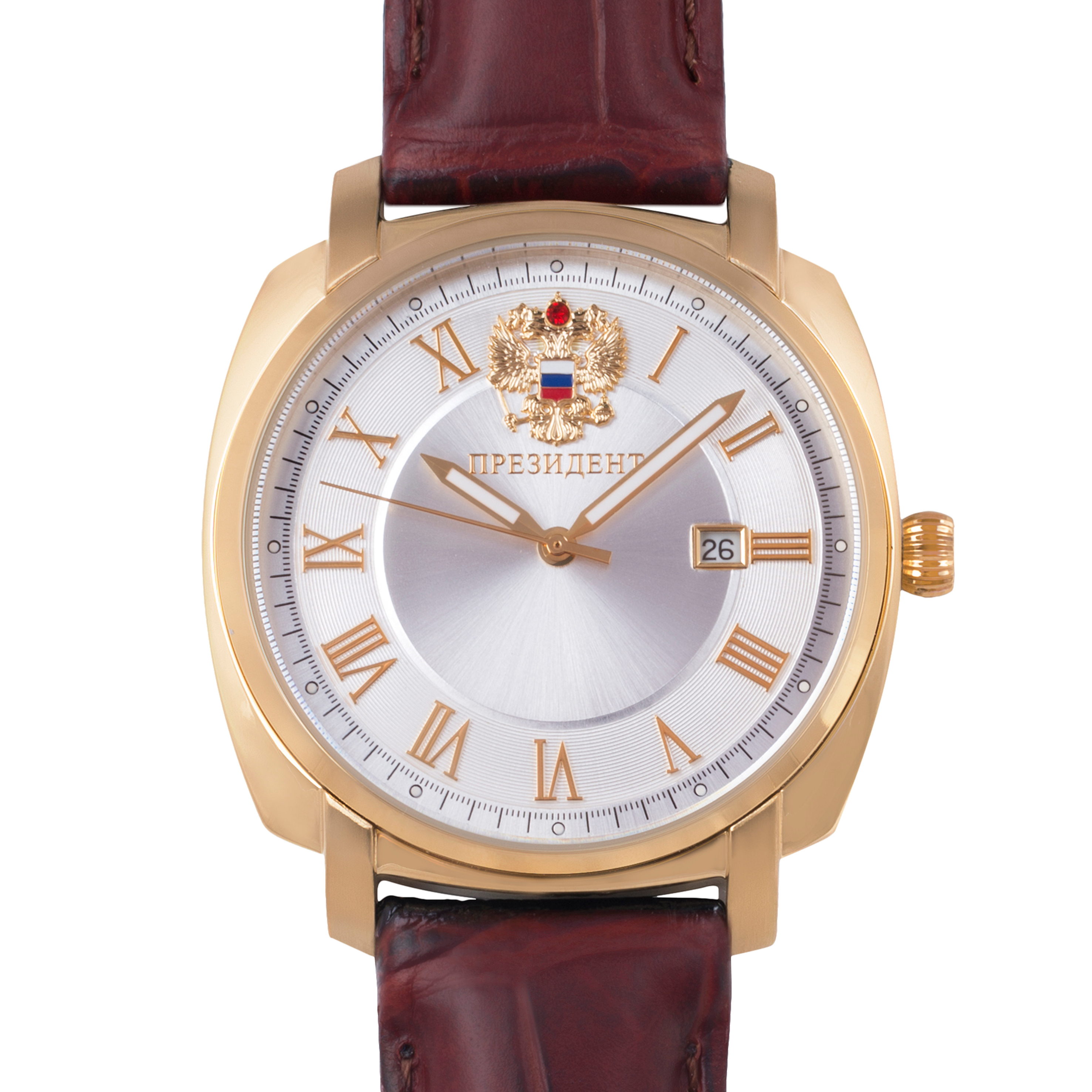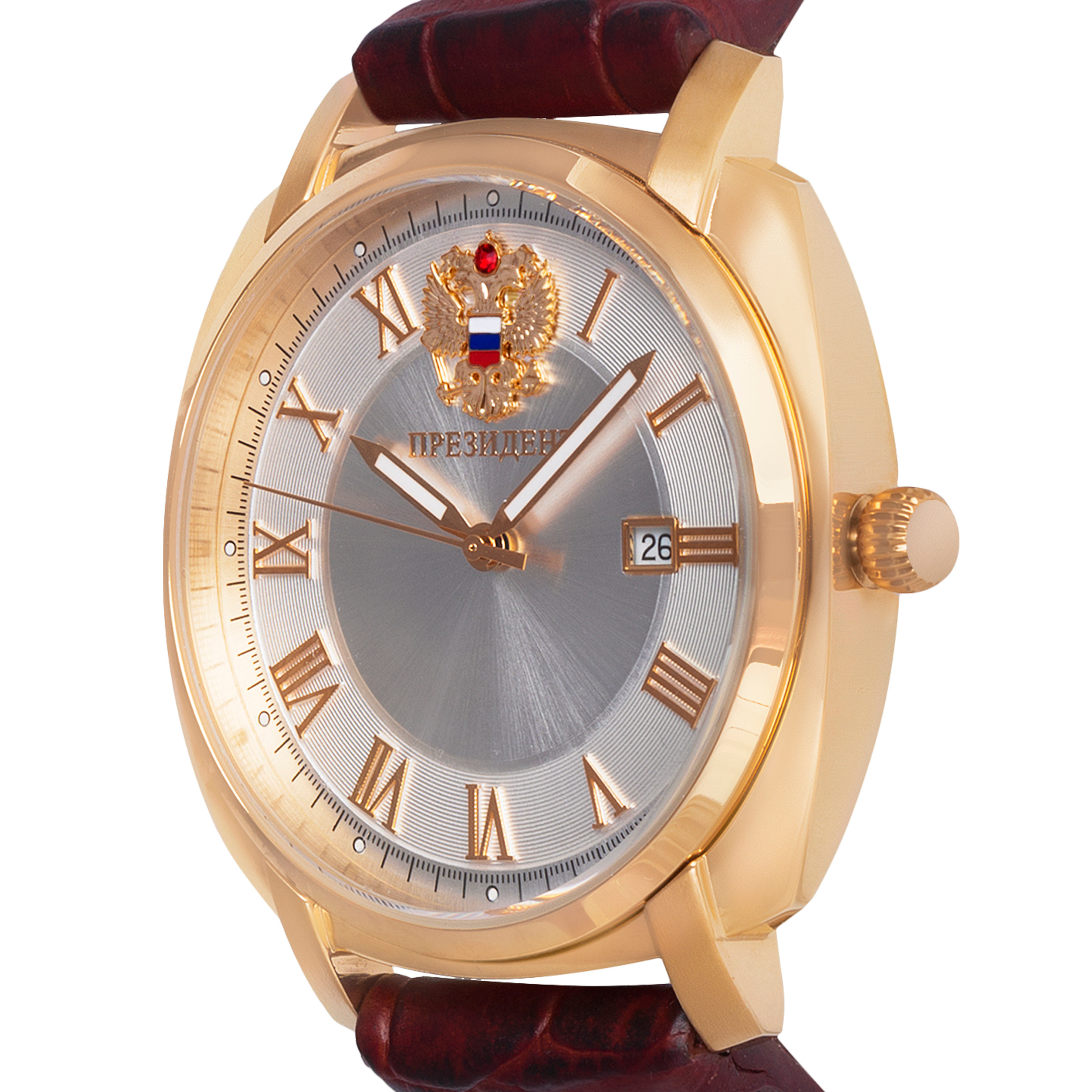Наручные кварцевые часы Президент серебристо-золотистые, с коричнево ремешком