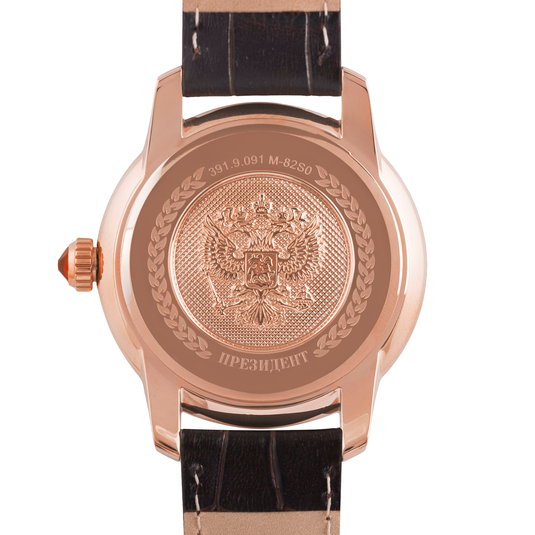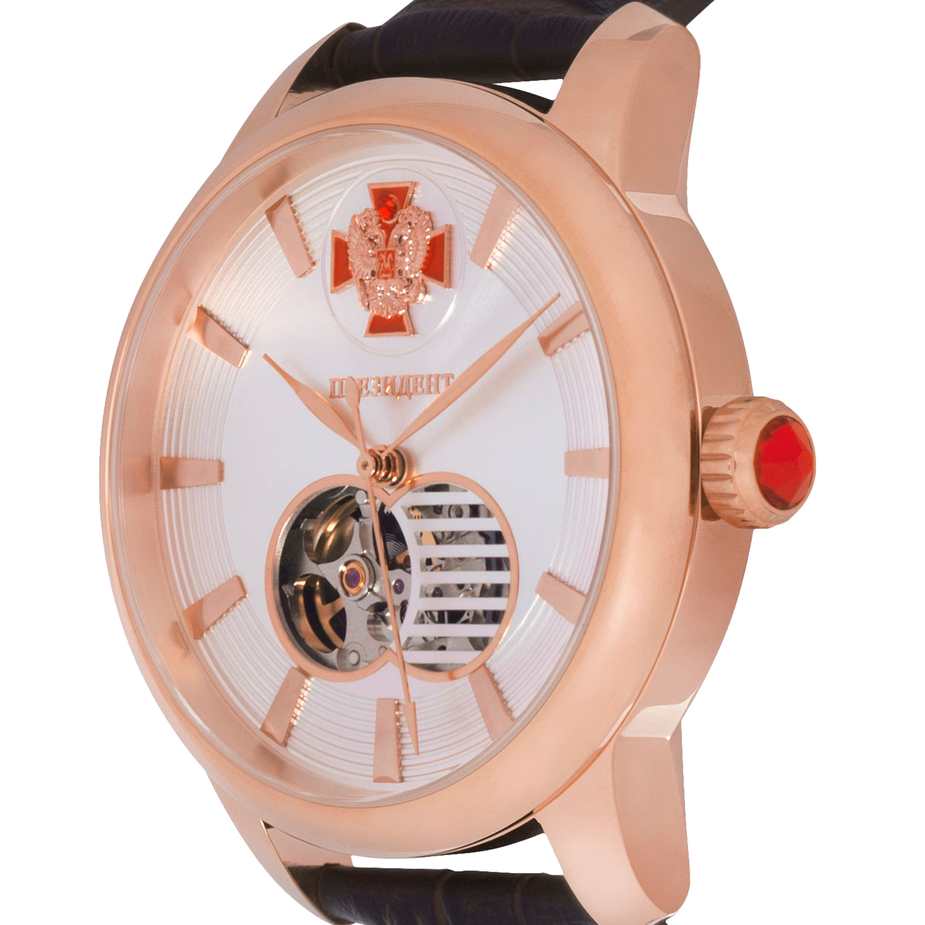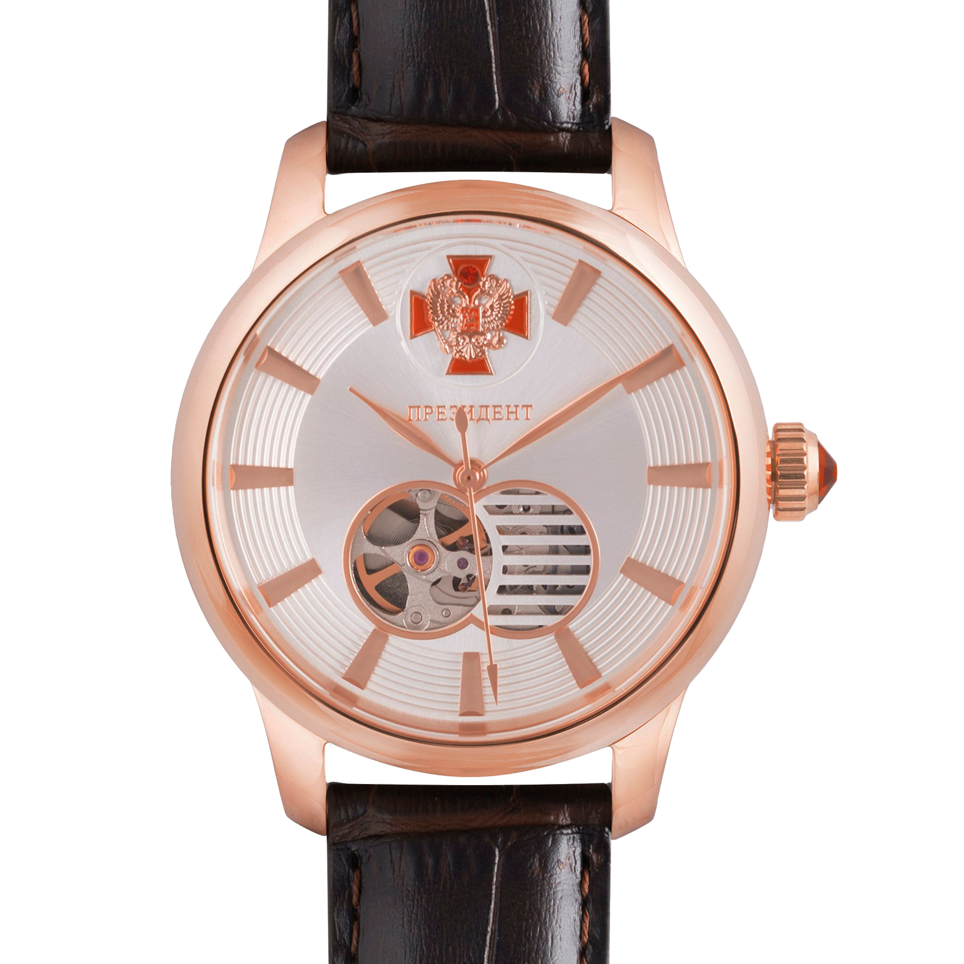 Наручные кварцевые часы Президент серебристо-золотистые, с коричневым ремешком