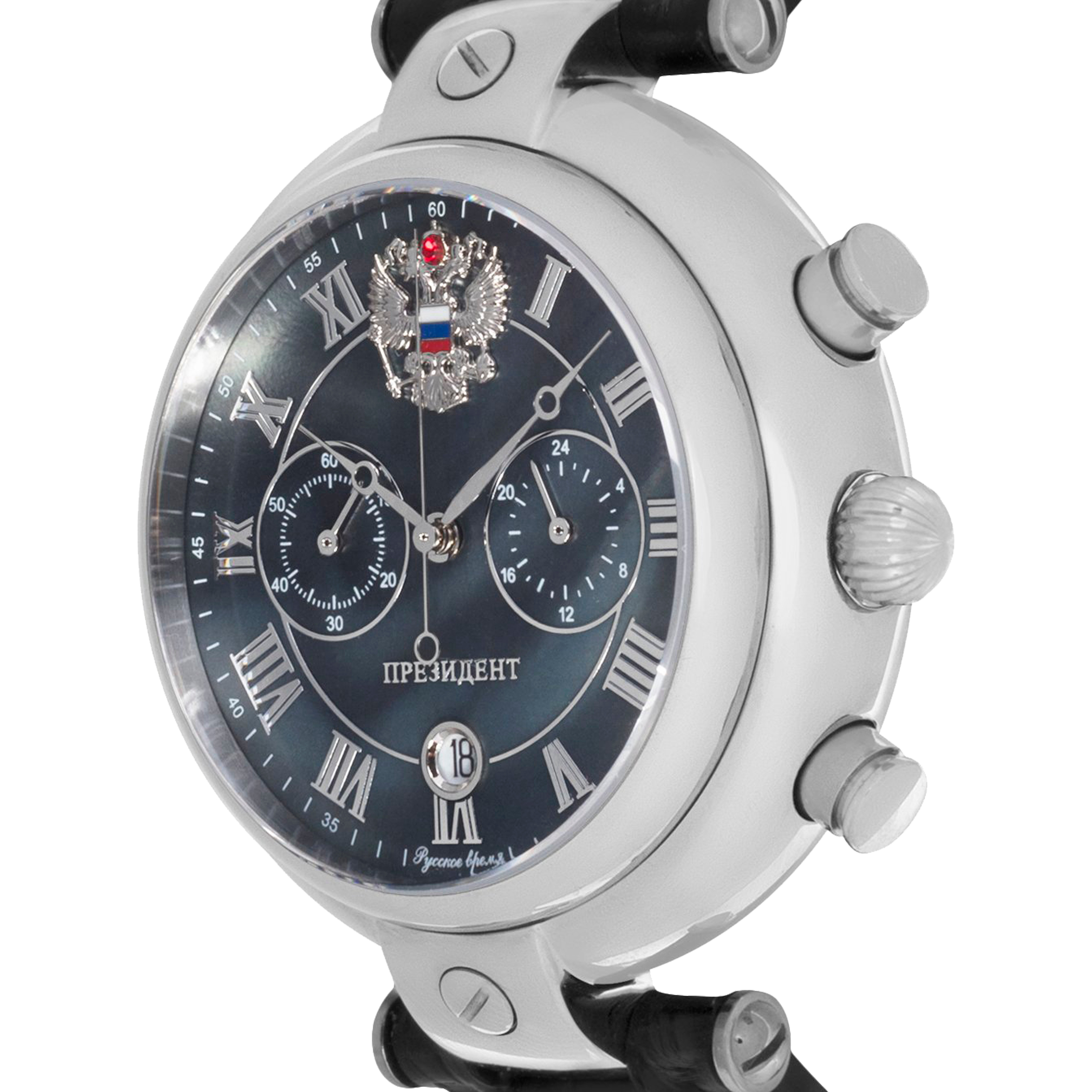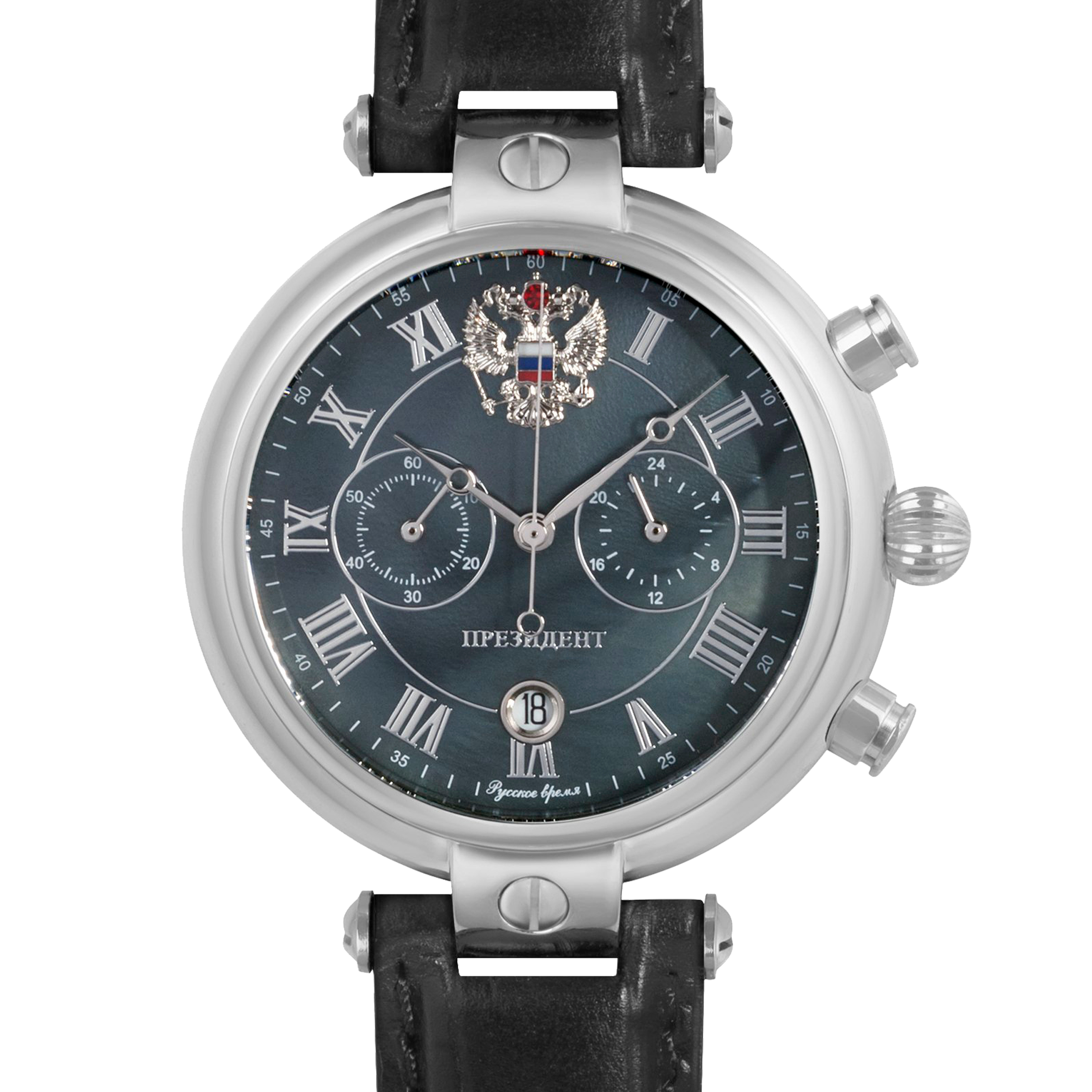 Наручные кварцевые часы Президент серебристые, с черным ремешком