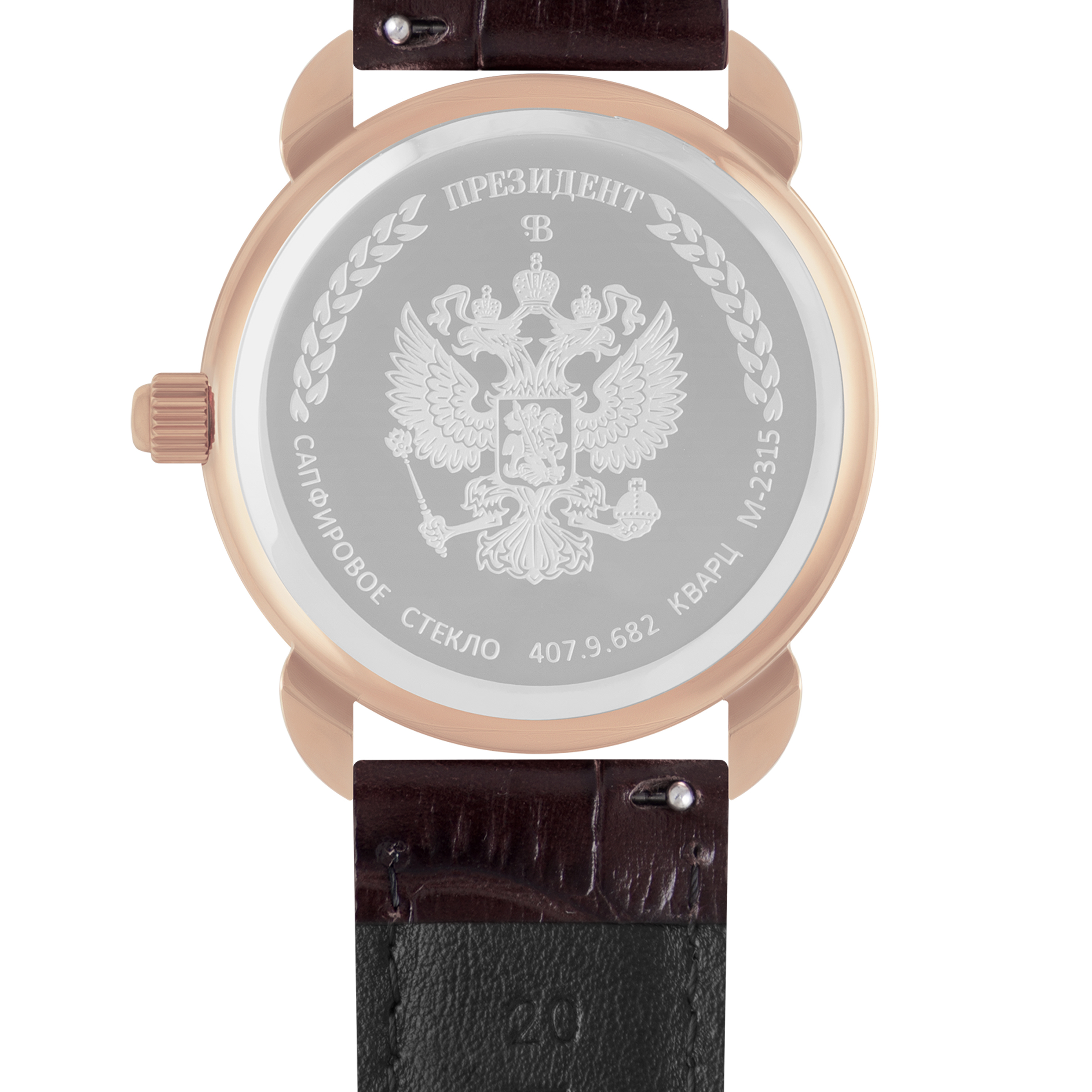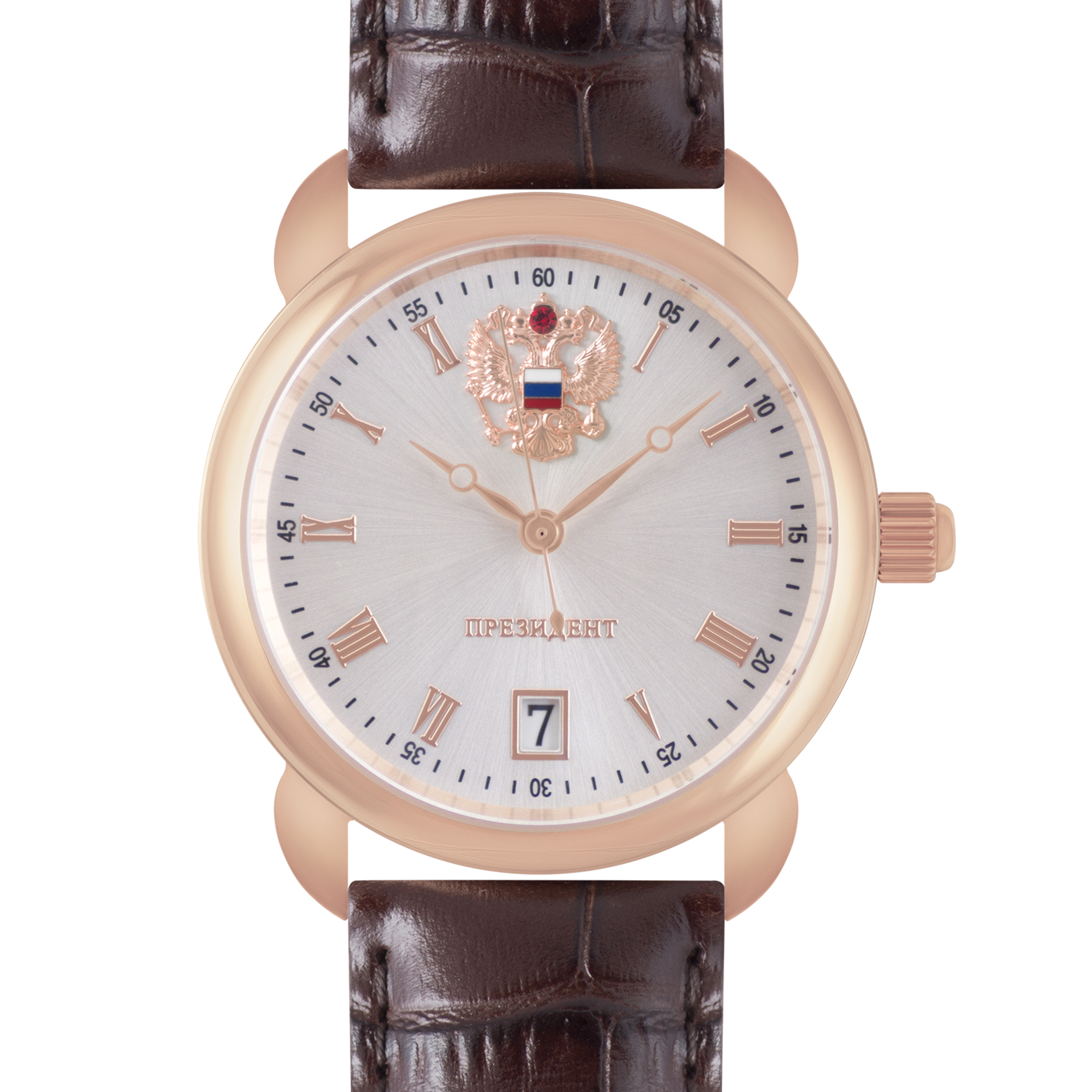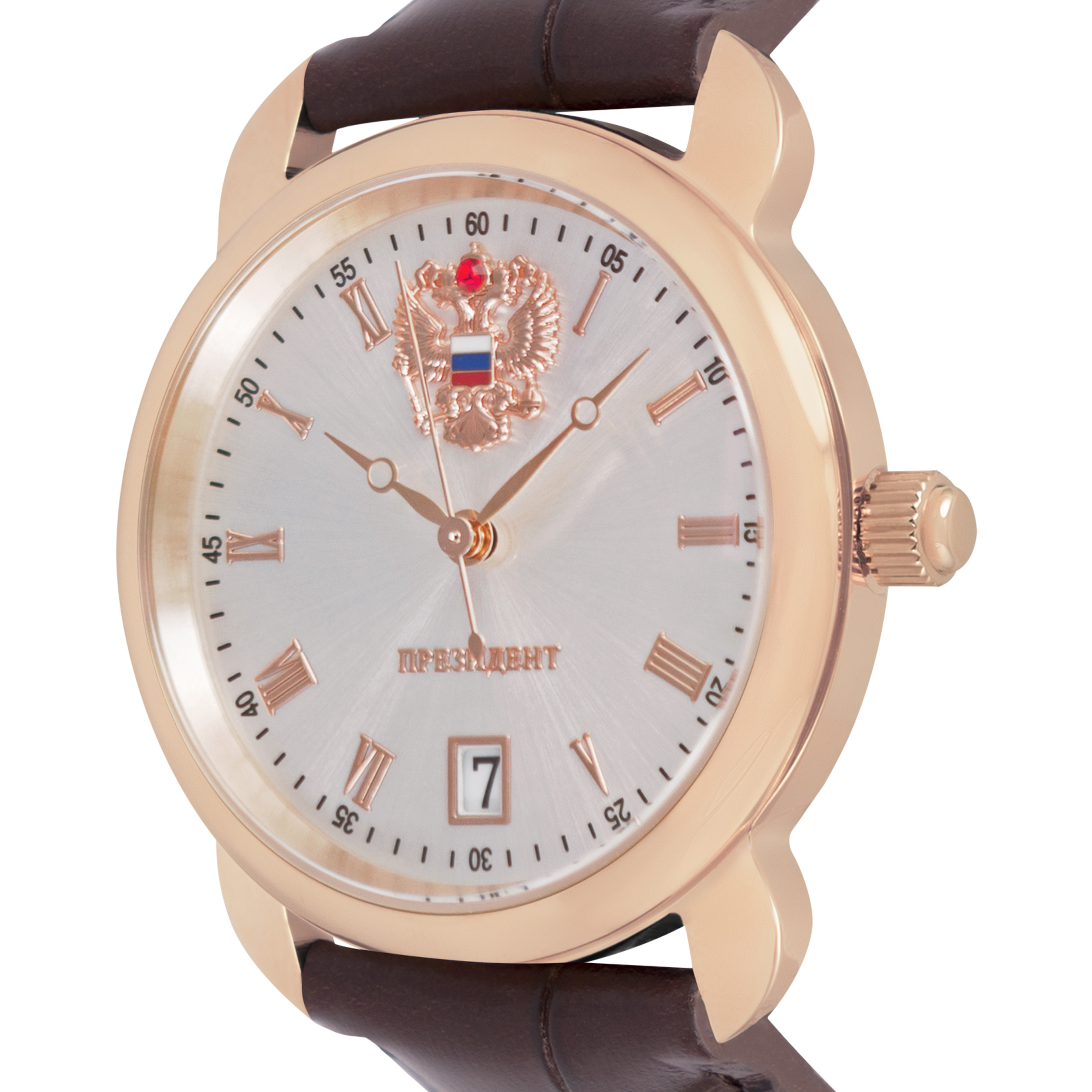 Наручные кварцевые часы Президент золотистые, с коричневым ремешком