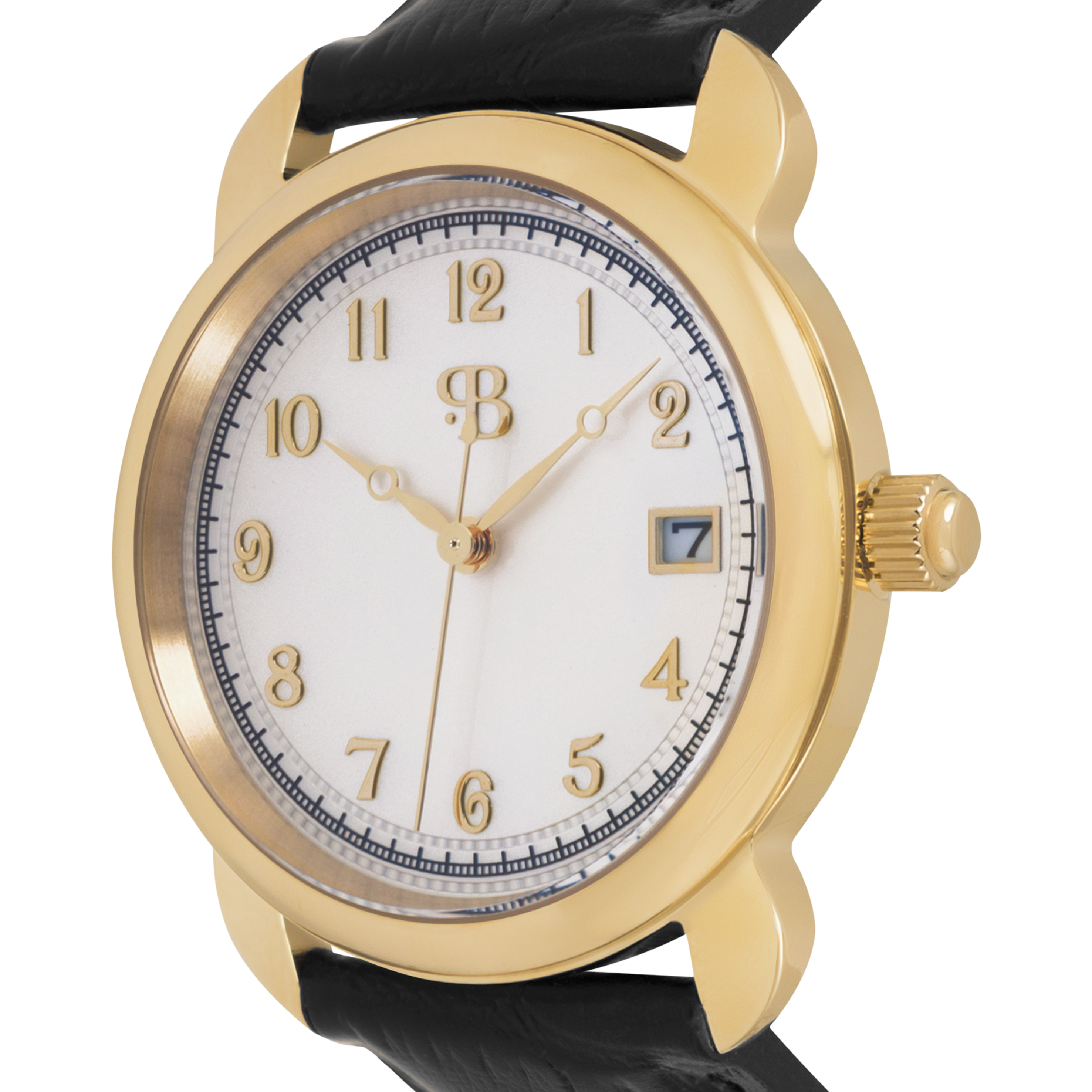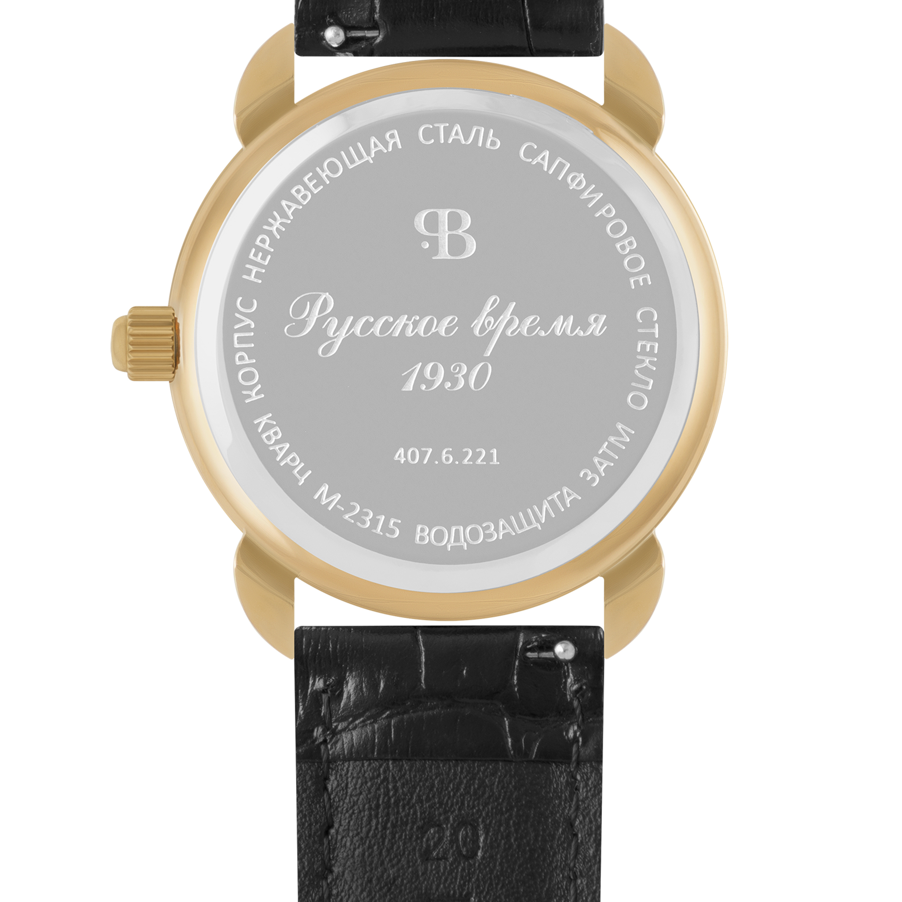 Наручные кварцевые часы Русское время бело-золотистые с черным ремешком