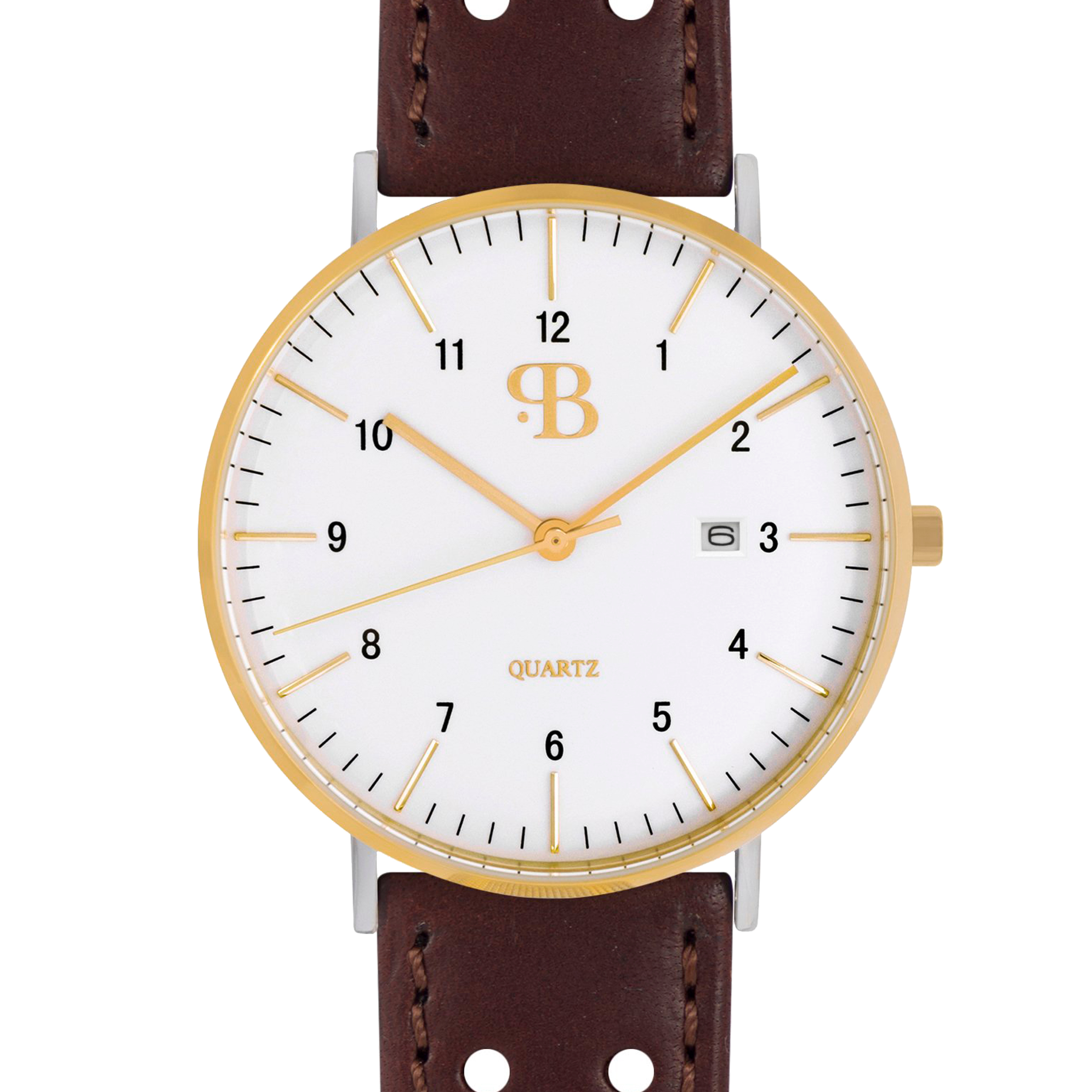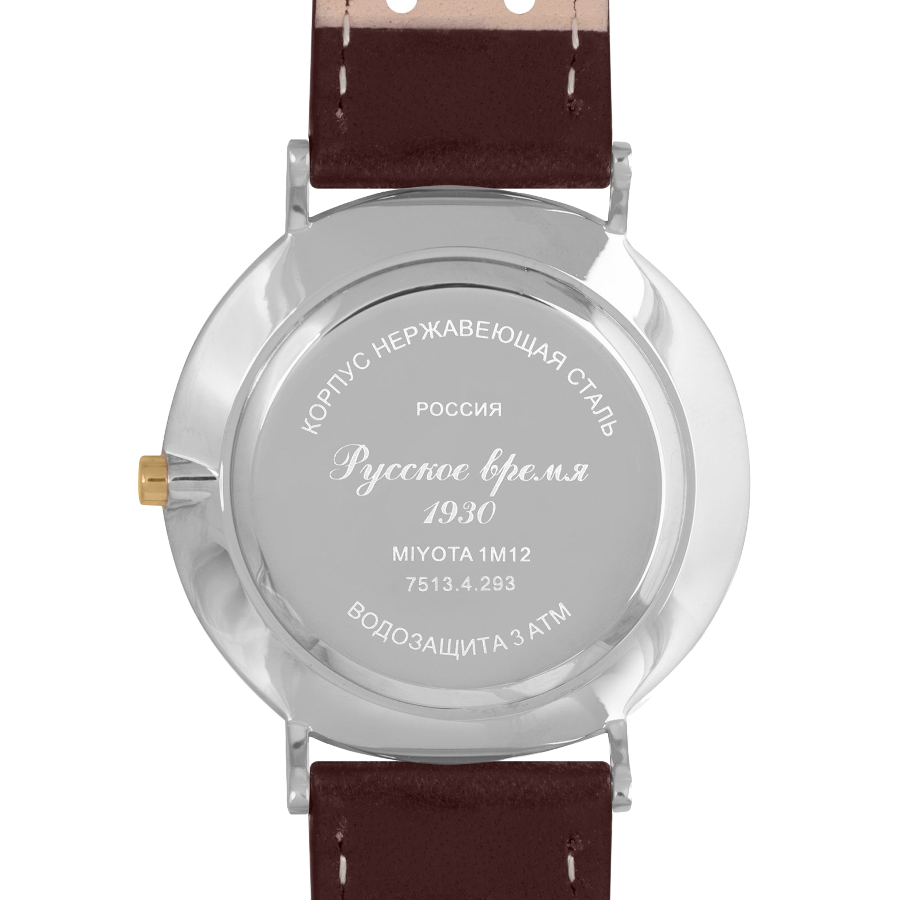 Наручные кварцевые часы Русское время бело-золотистые с коричневым ремешком