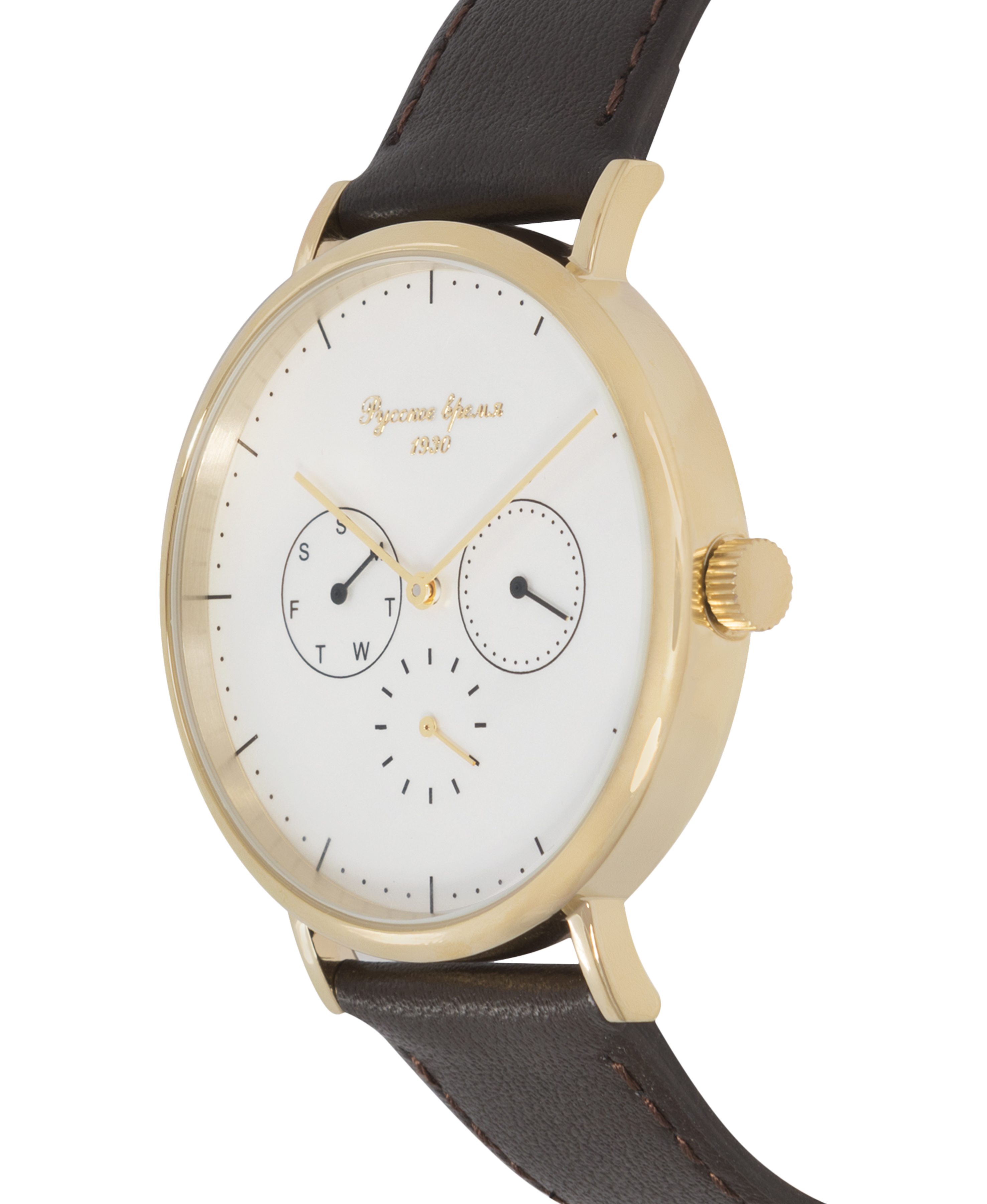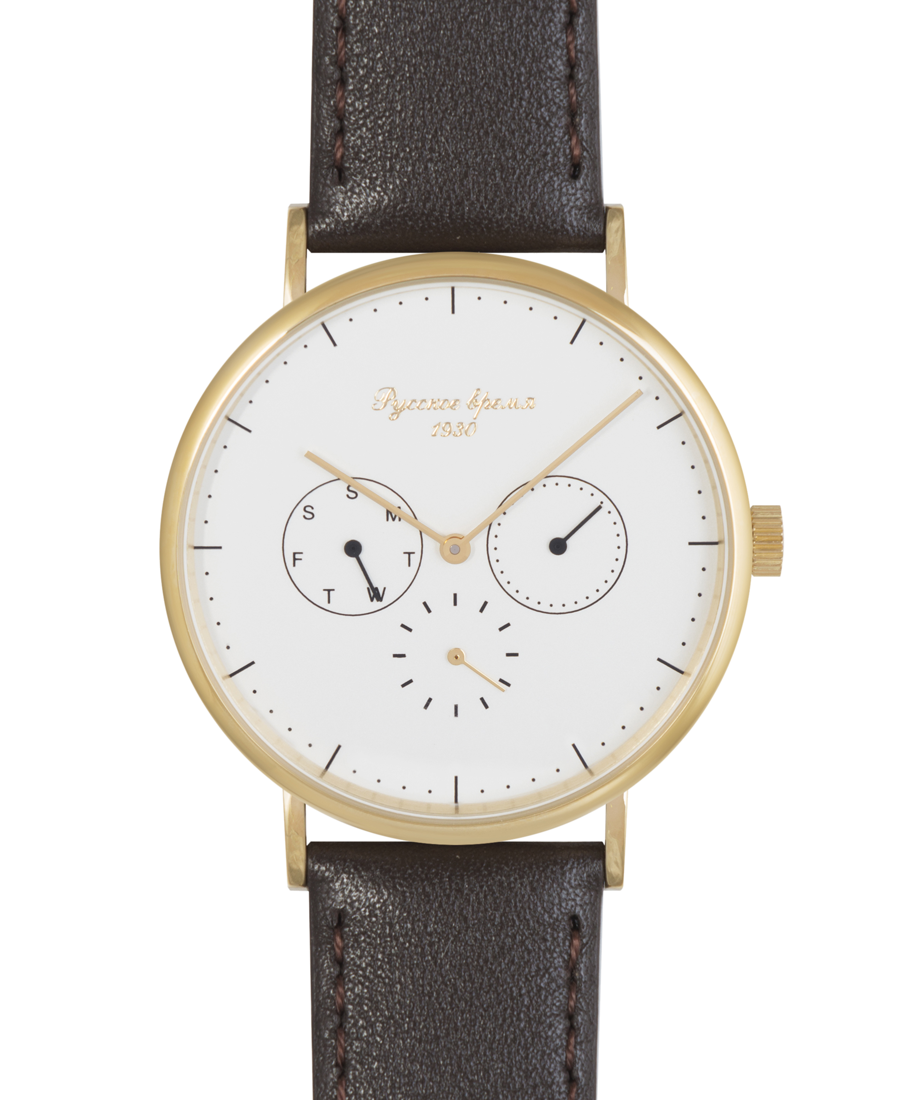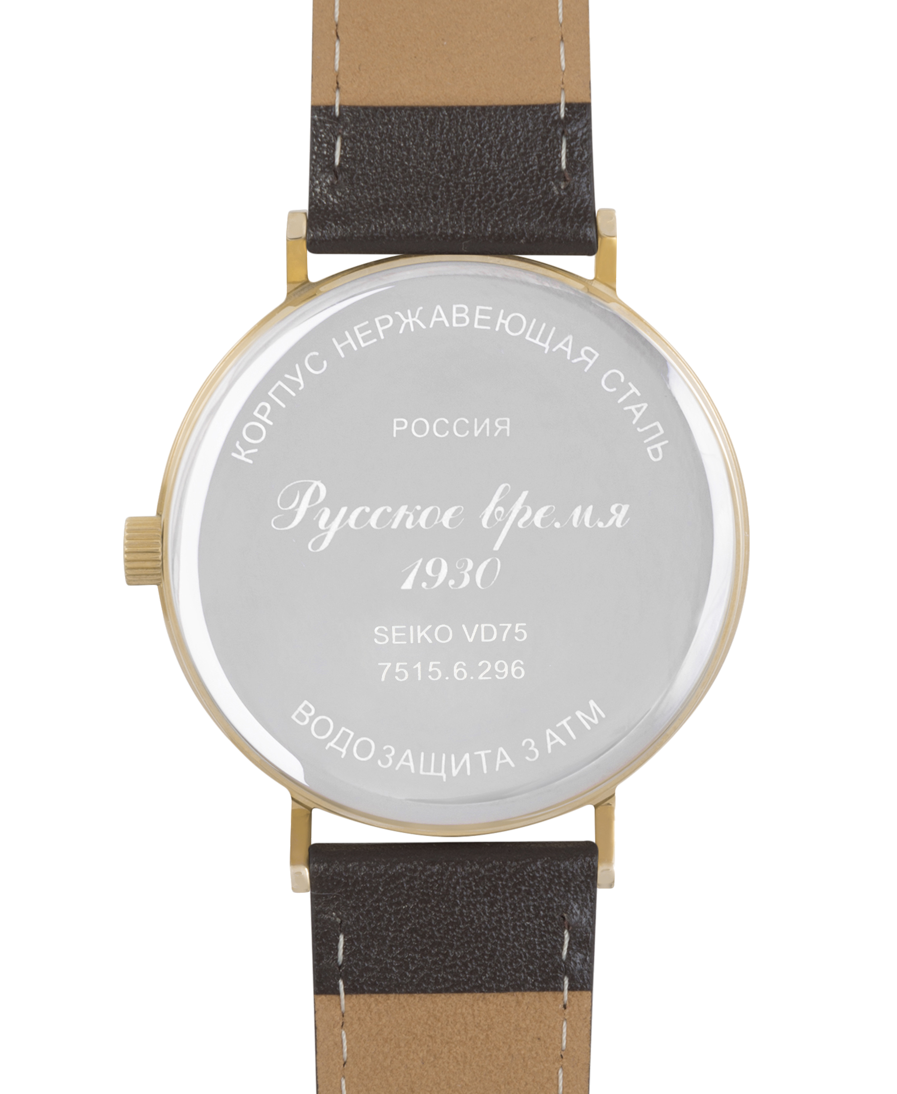 Наручные кварцевые часы Русское время бело-золотистые с коричневым ремешком
