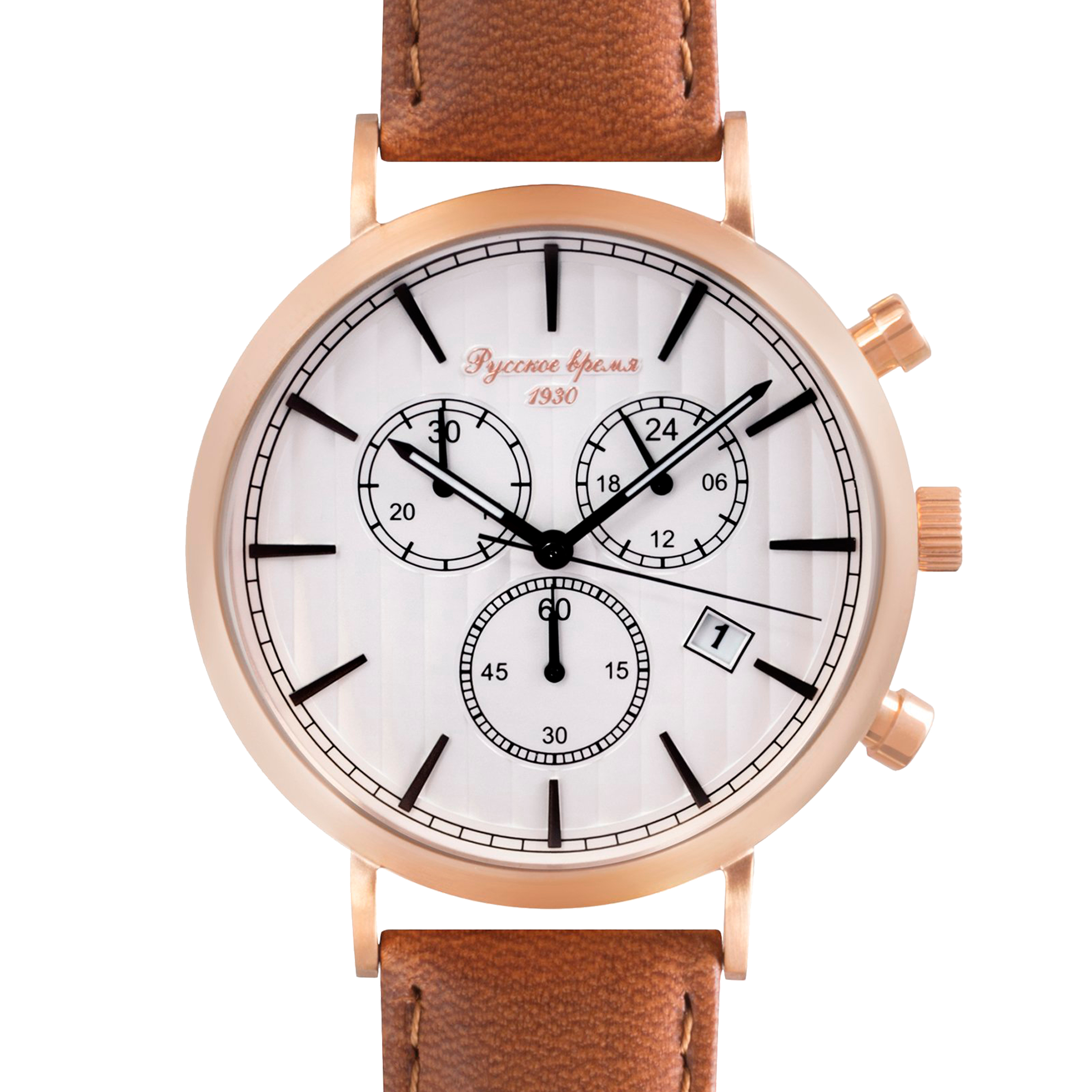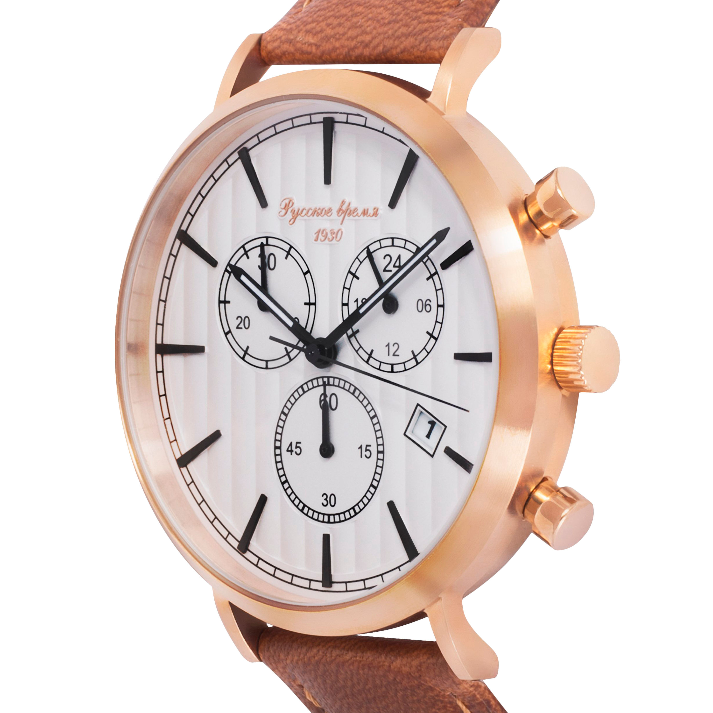 Наручные кварцевые часы Русское время бело-золотистые с оранжевым ремешком