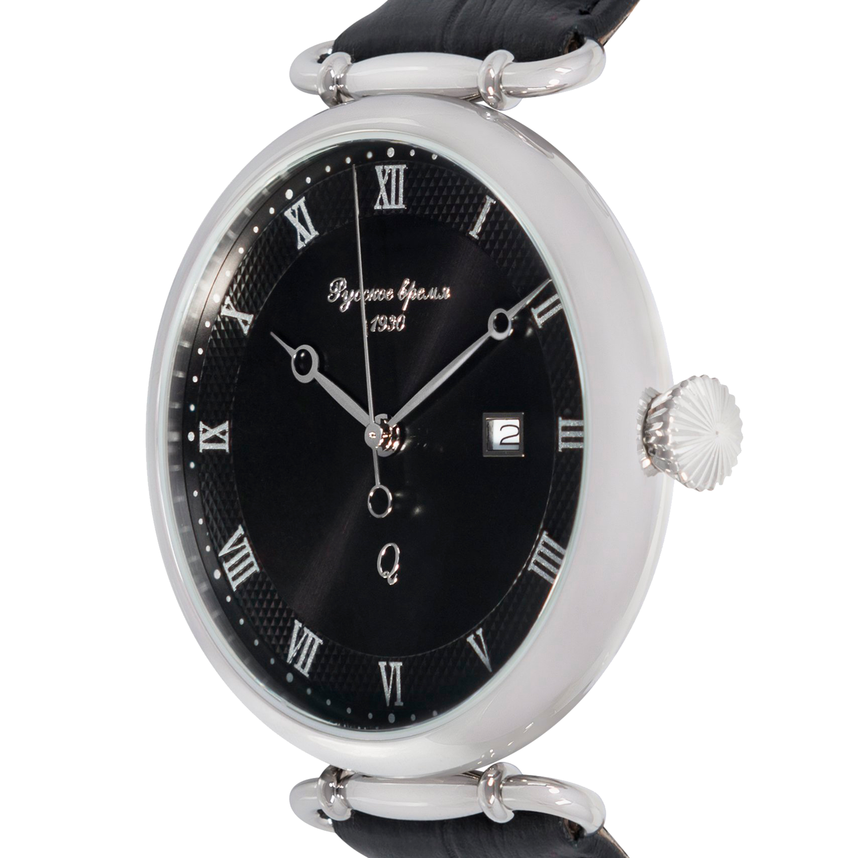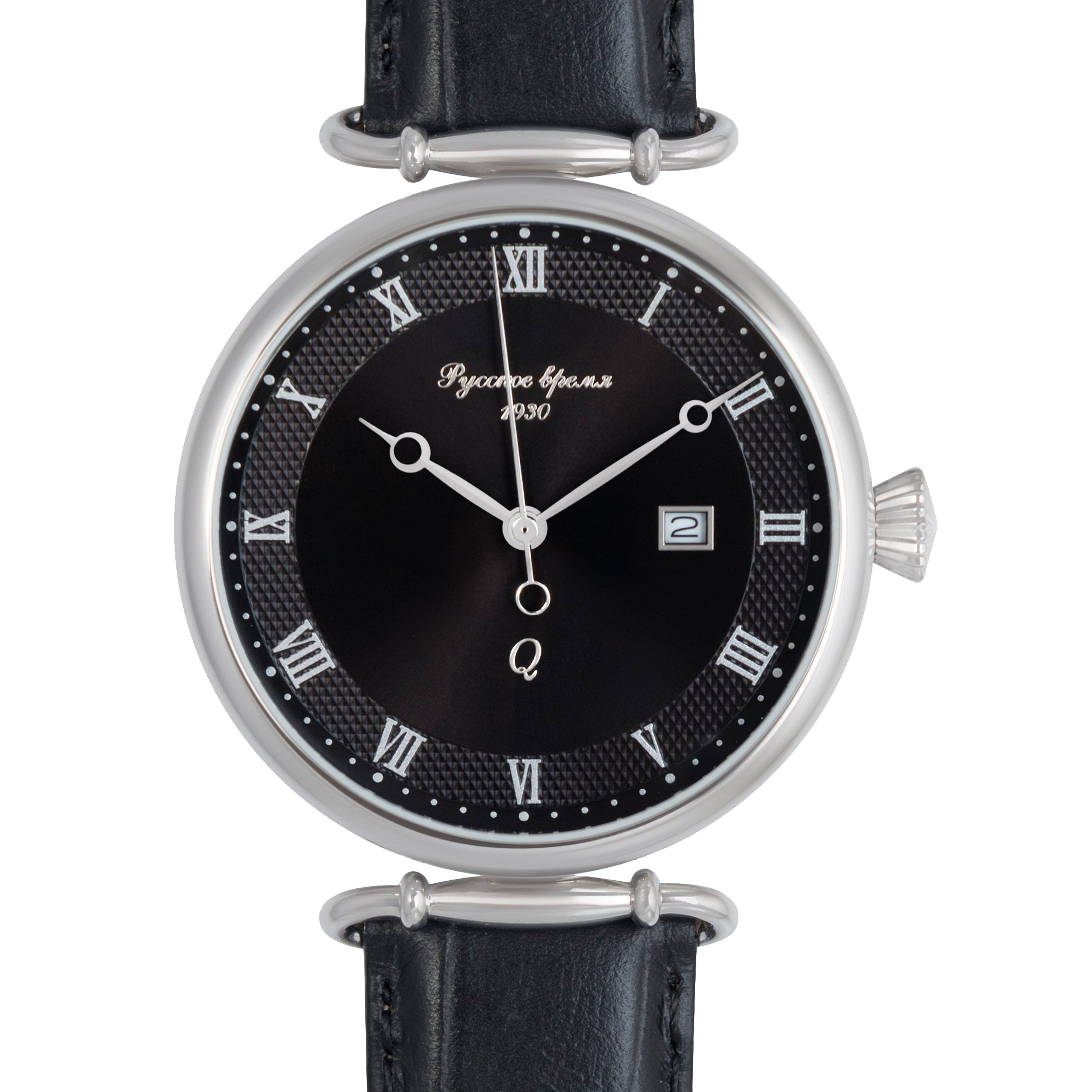 Наручные кварцевые часы Русское время черно-серебристые с черным ремешком