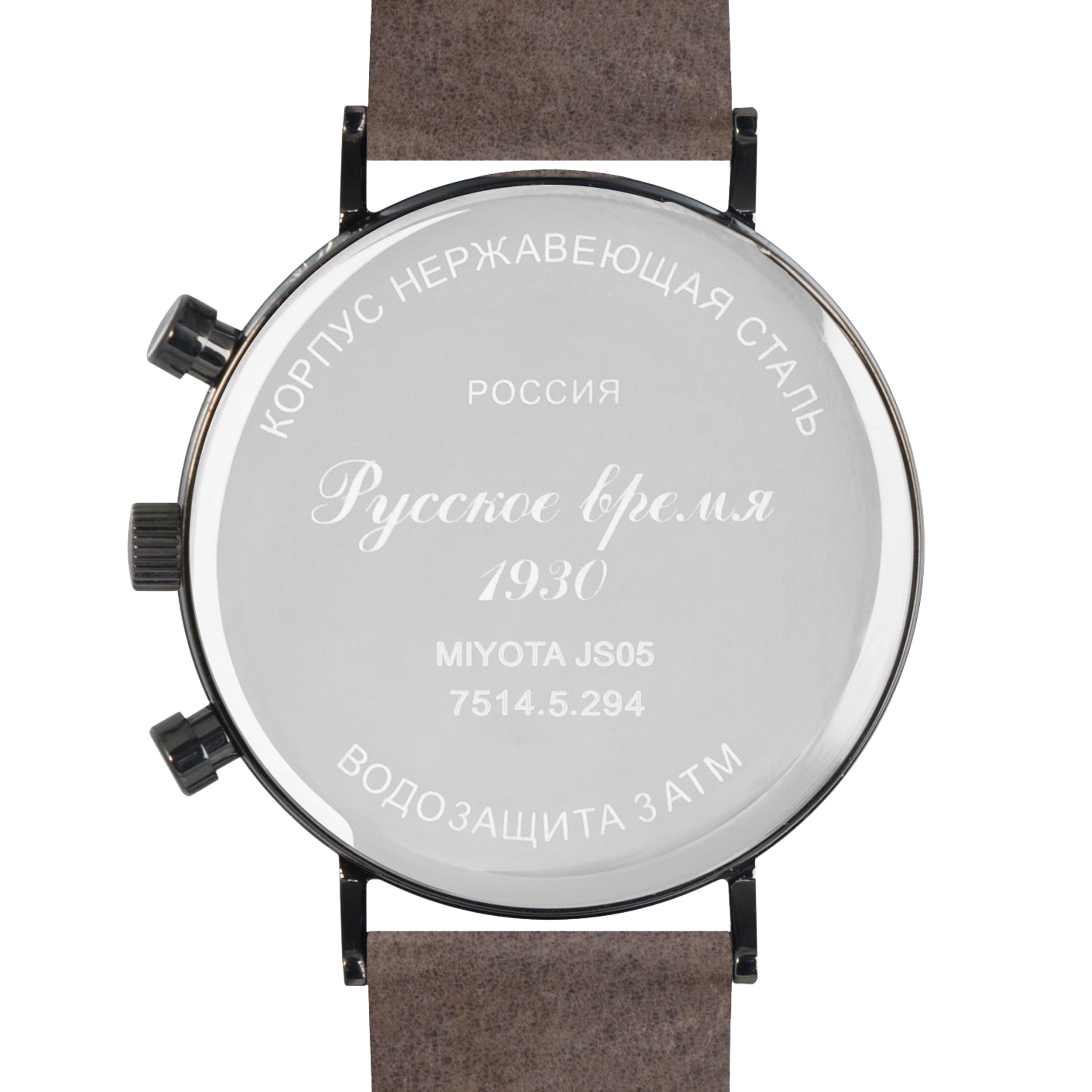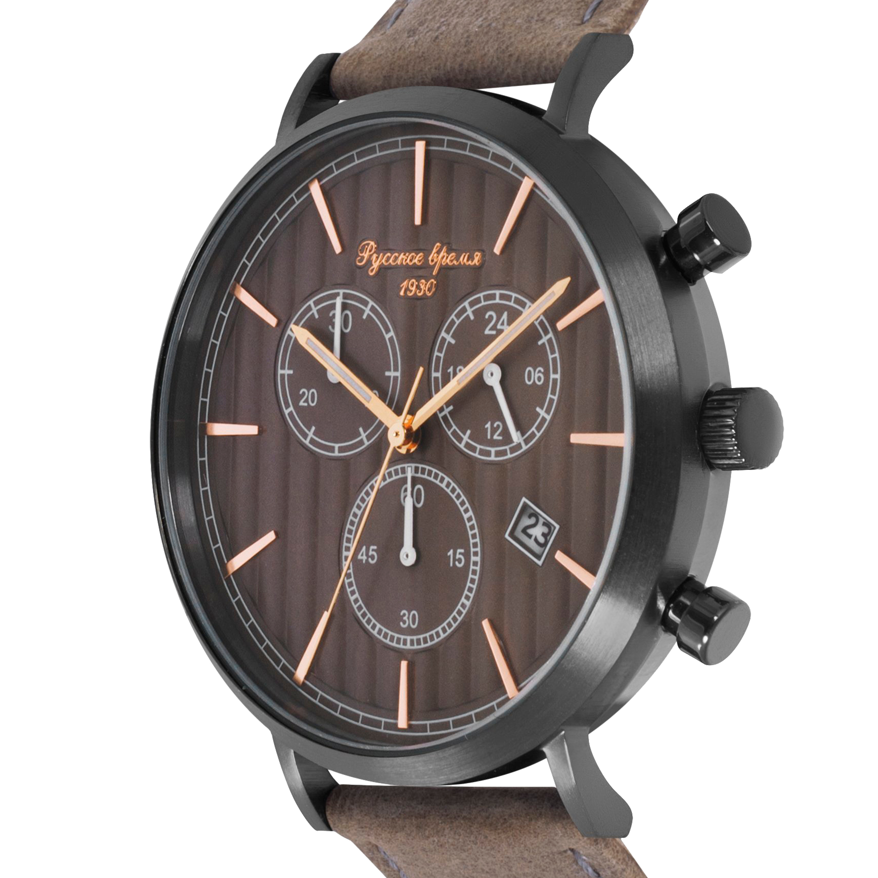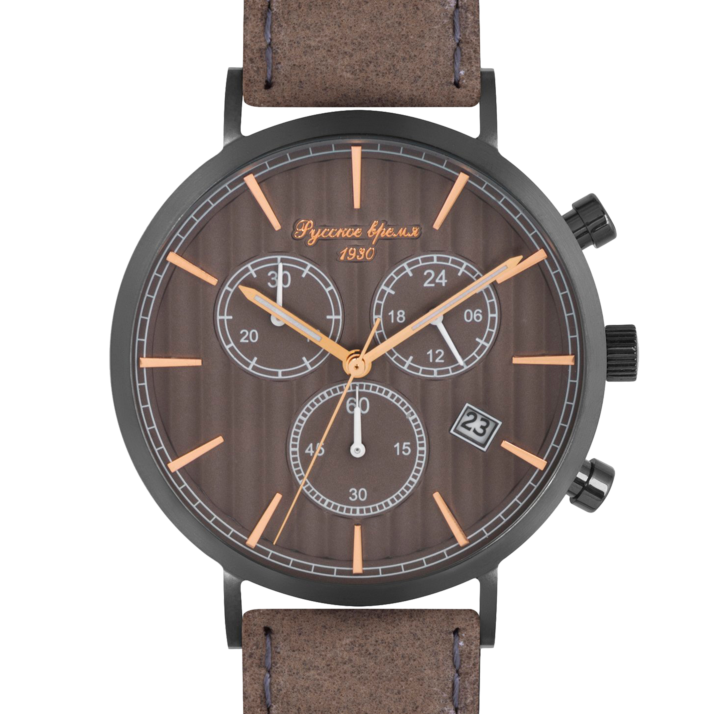 Наручные кварцевые часы Русское время коричнево-черные с коричневым ремешком