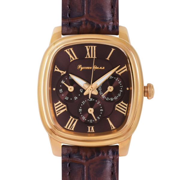 Наручные кварцевые часы Русское время коричнево-золотистые с коричневым ремешком