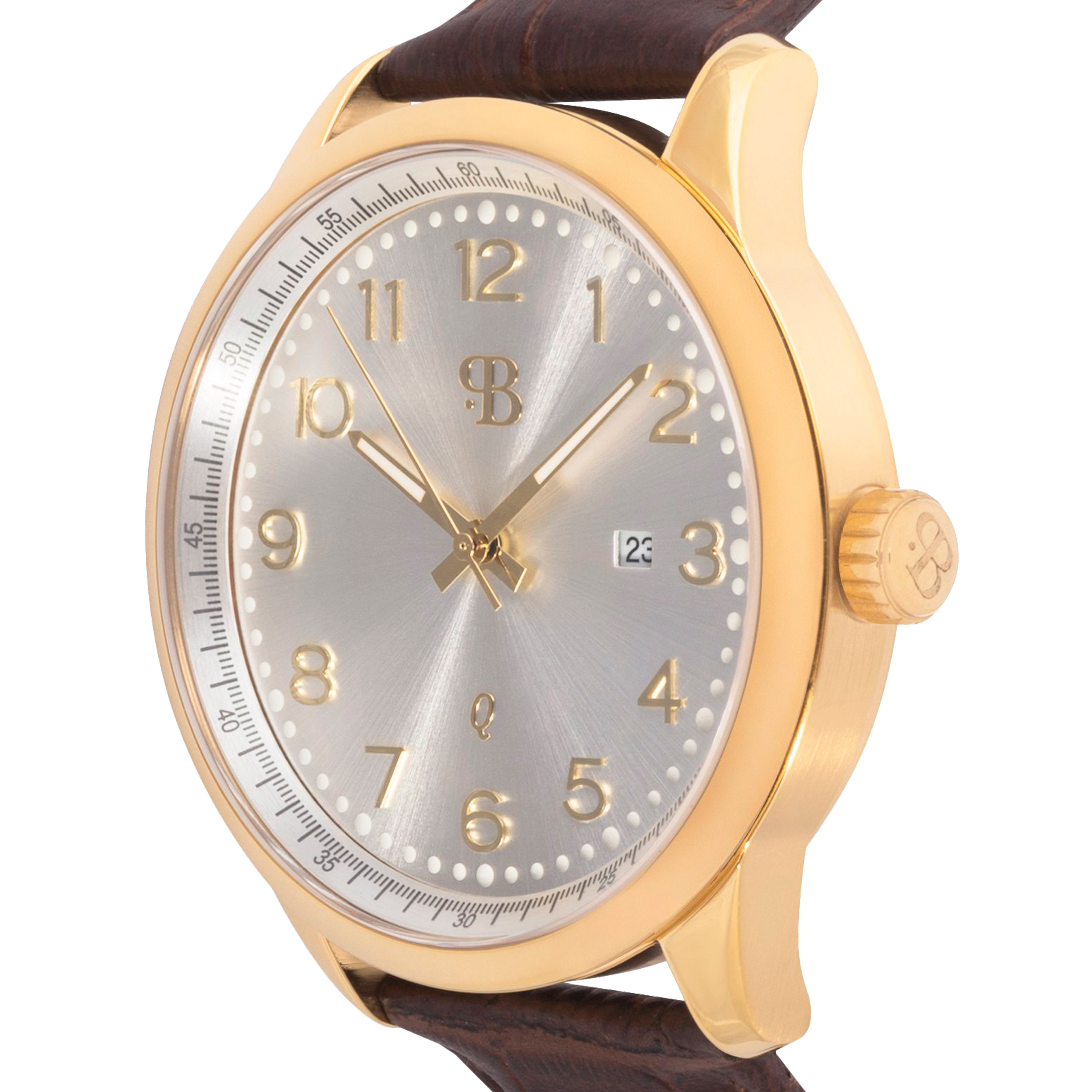 Наручные кварцевые часы Русское время серебристо-золотистые, с коричневым ремешком