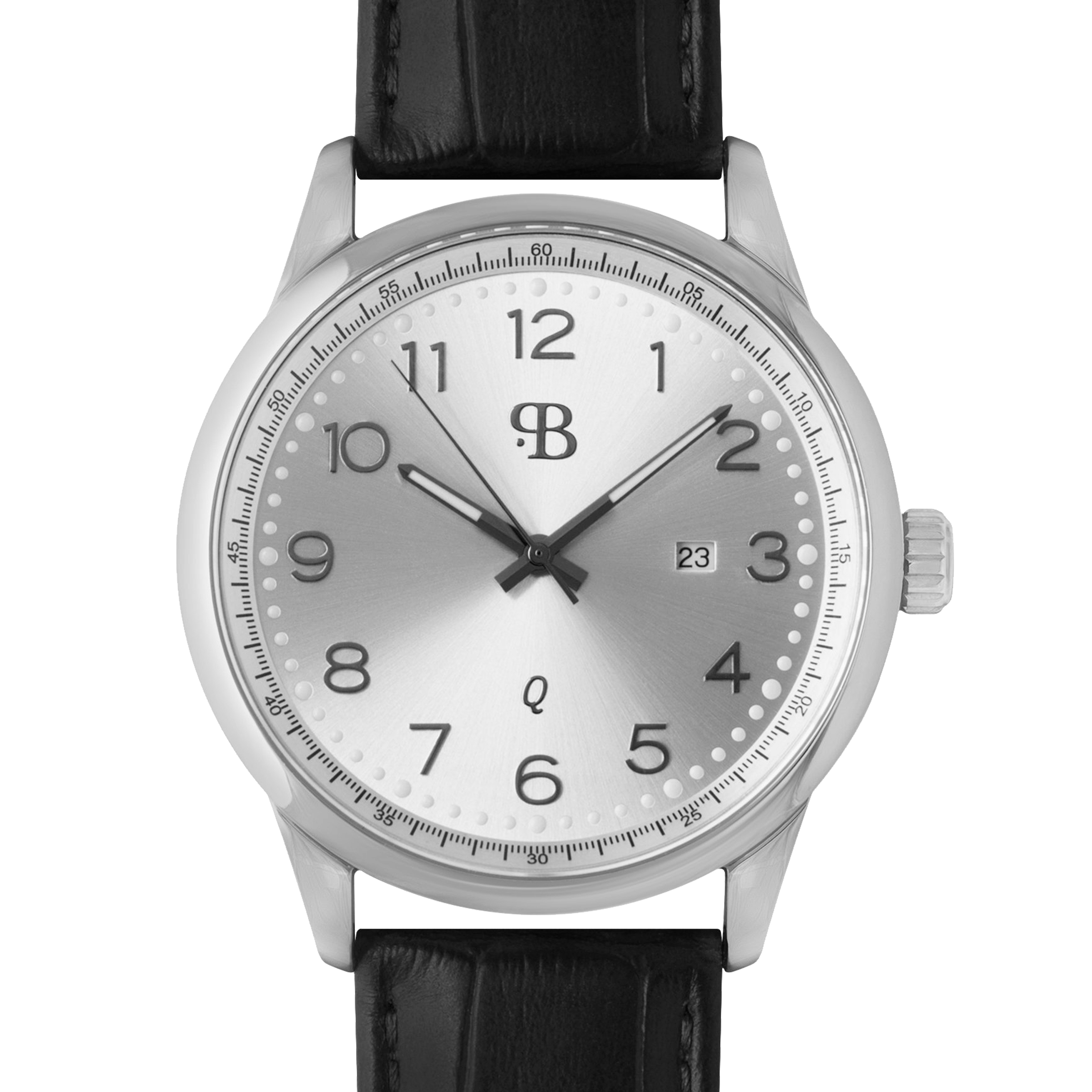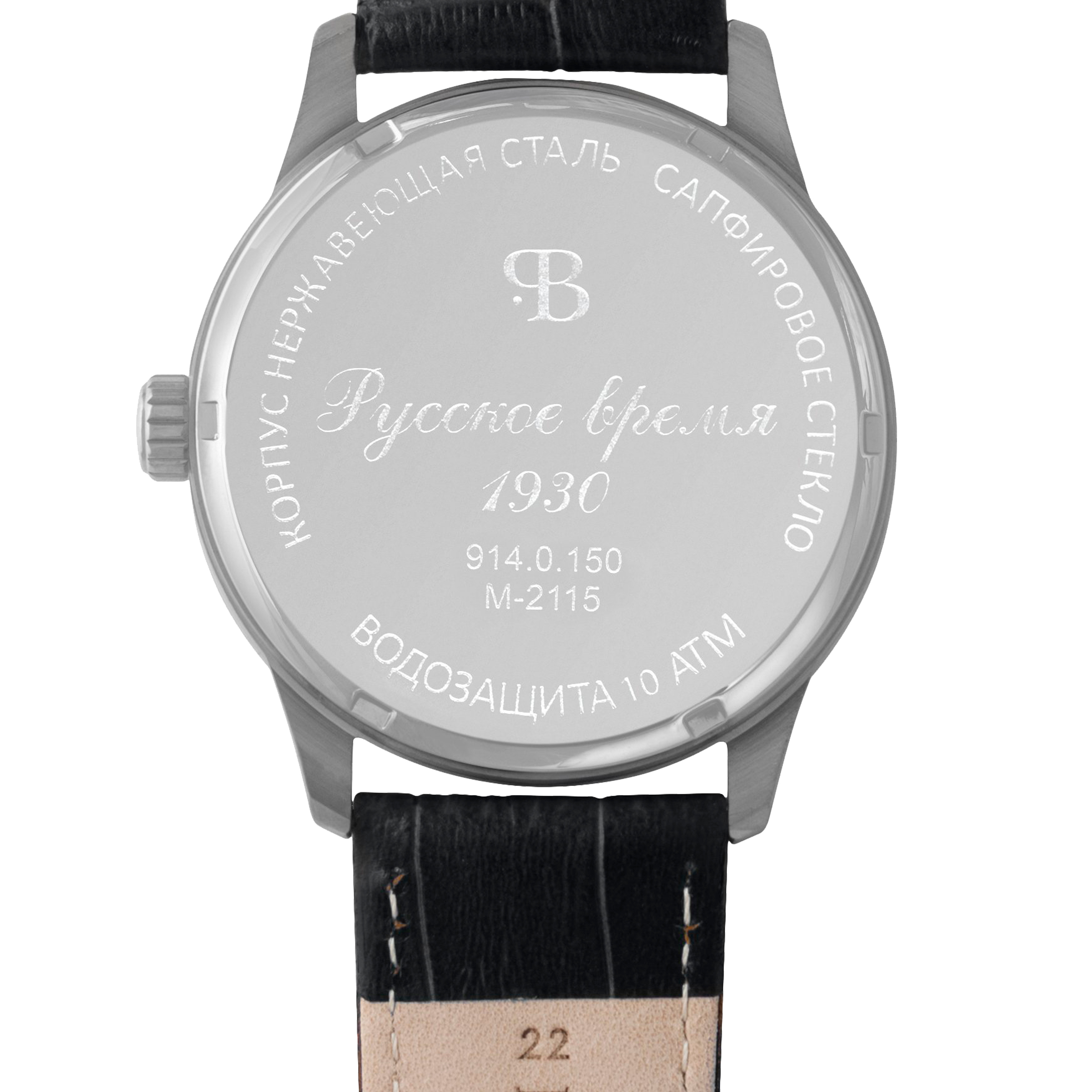 Наручные кварцевые часы Русское время серебристые, с черным ремешком