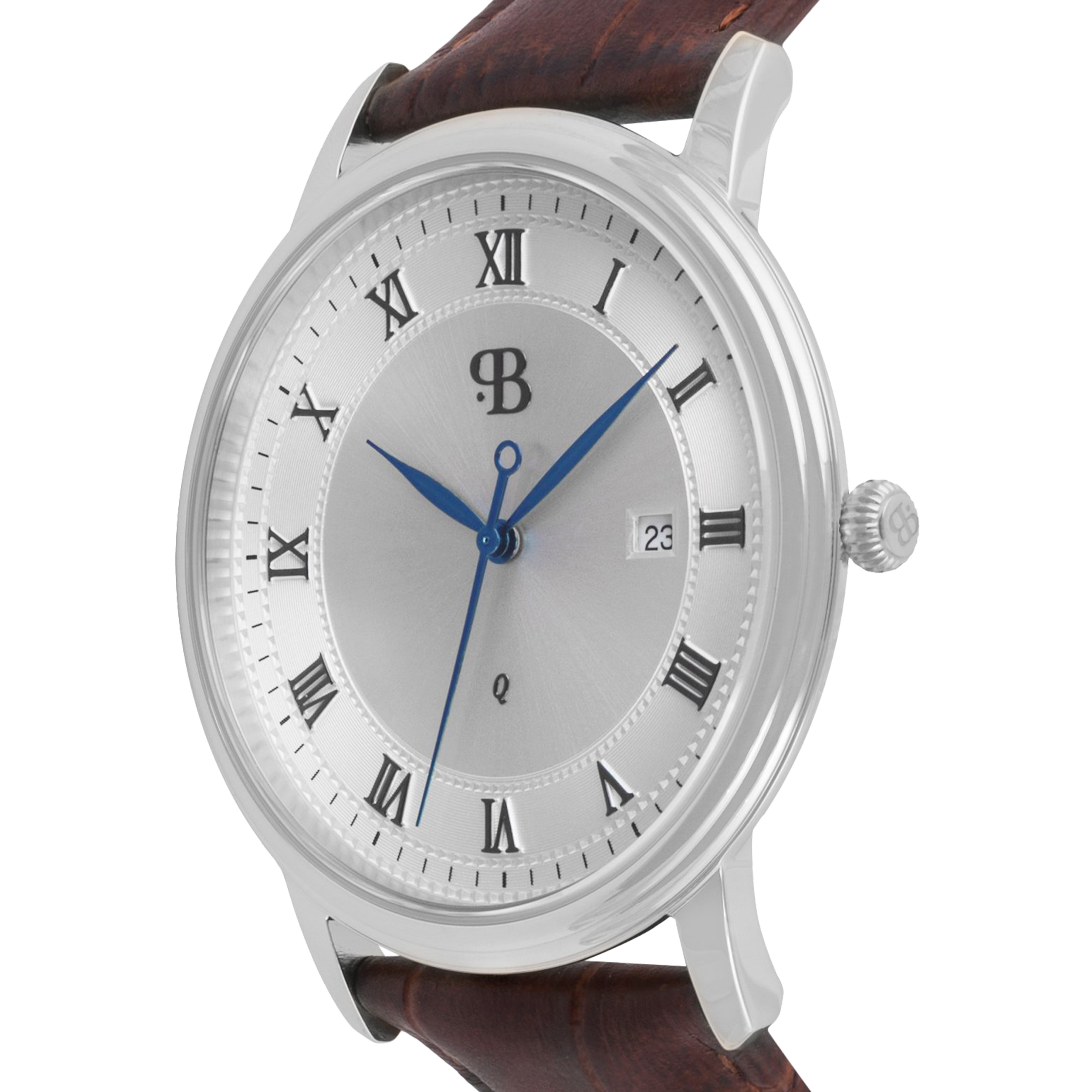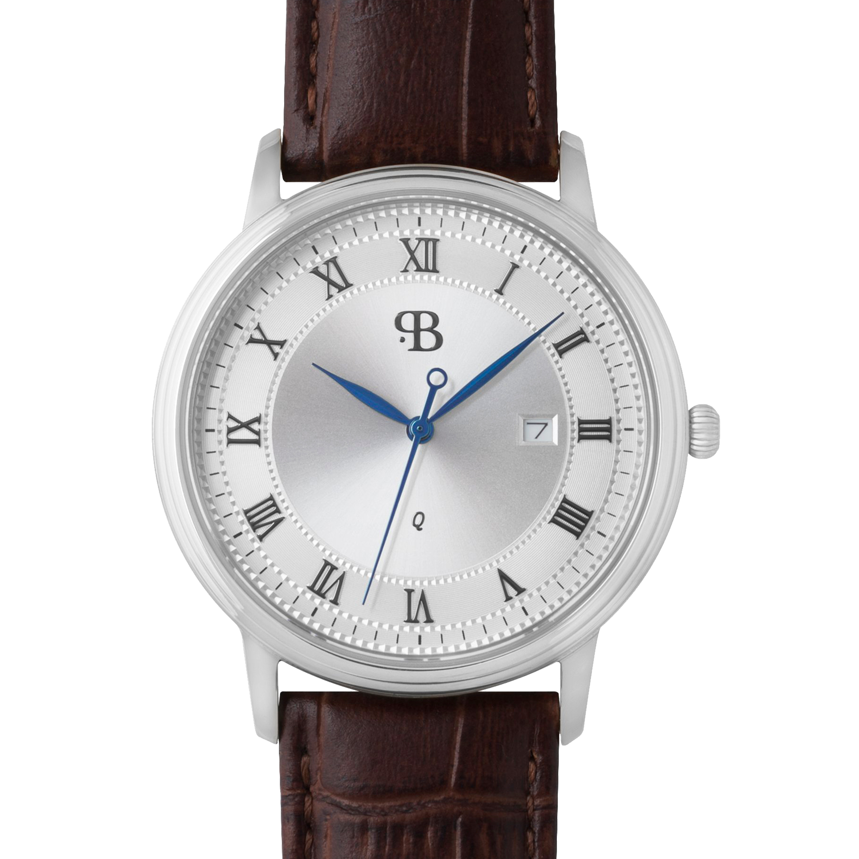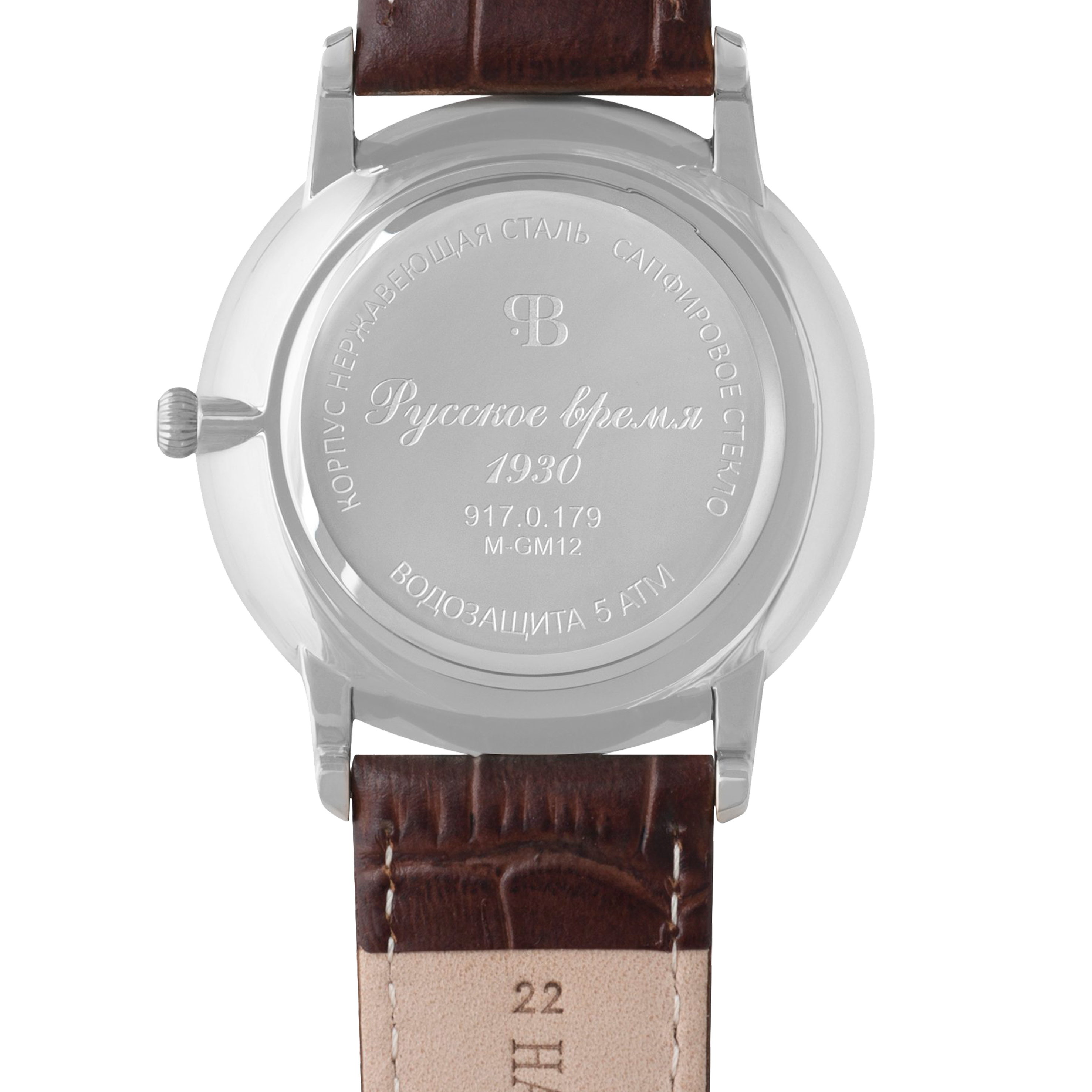 Наручные кварцевые часы Русское время серебристые с коричневым ремешком