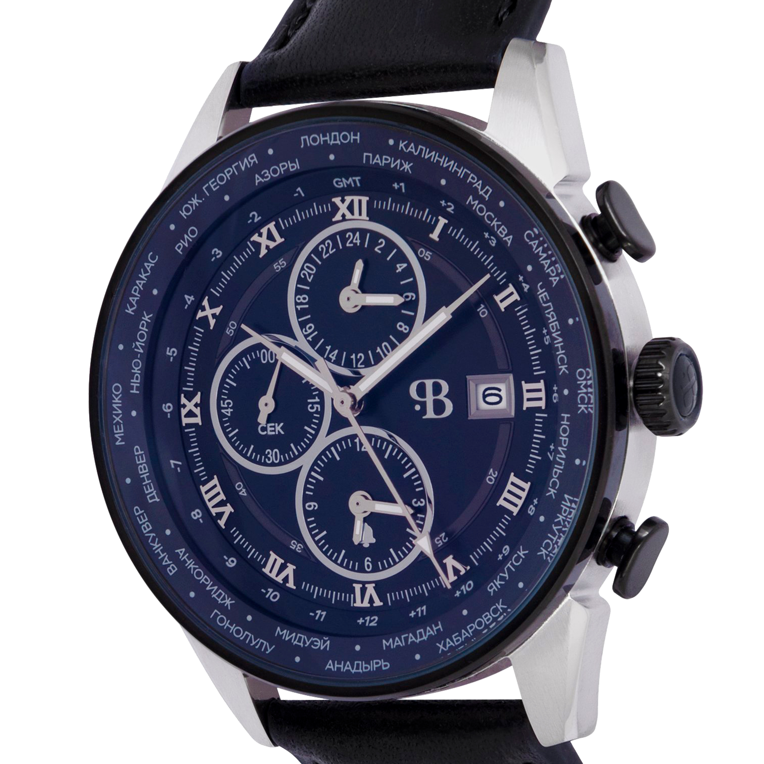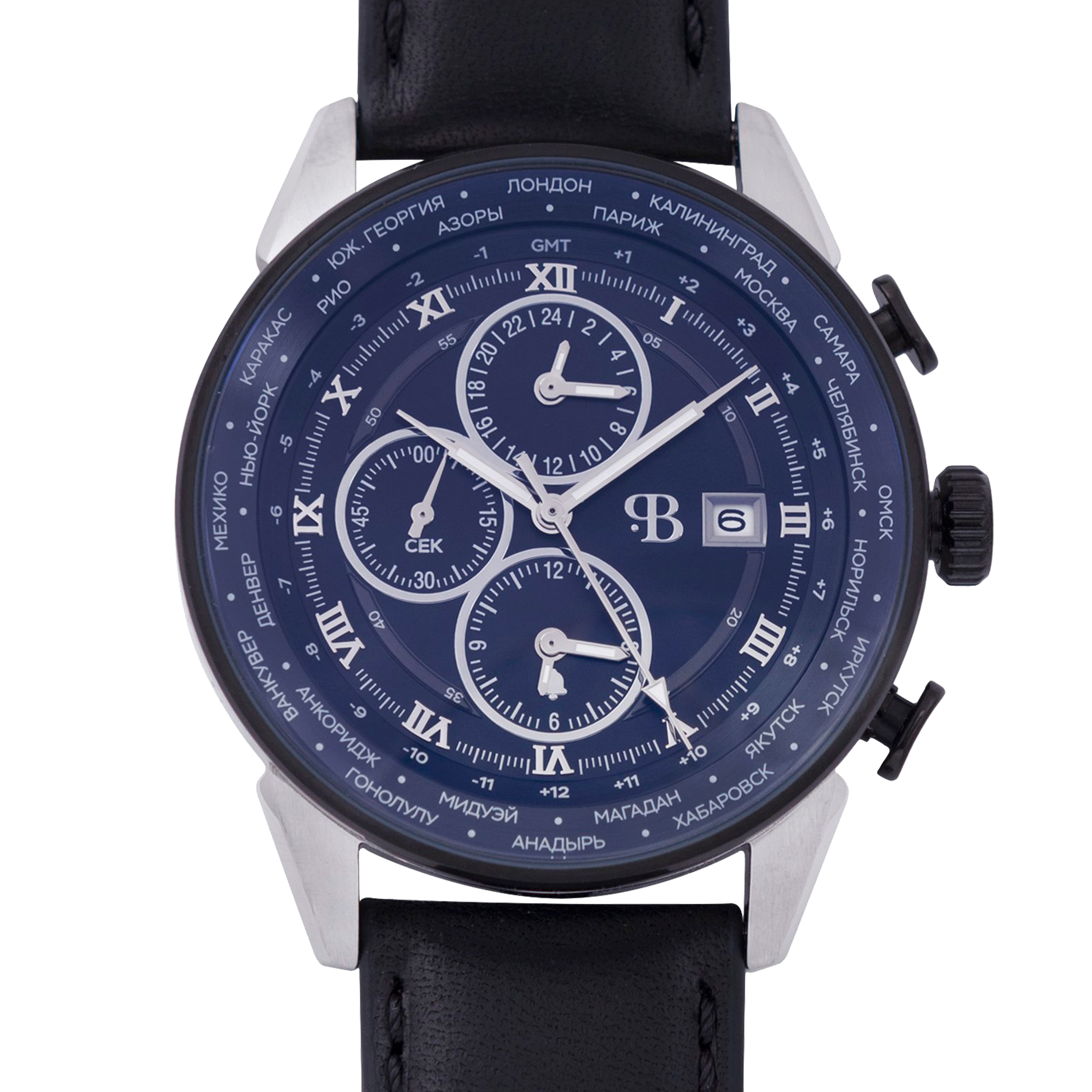 Наручные кварцевые часы Русское время сине-серебристые с черным ремешком