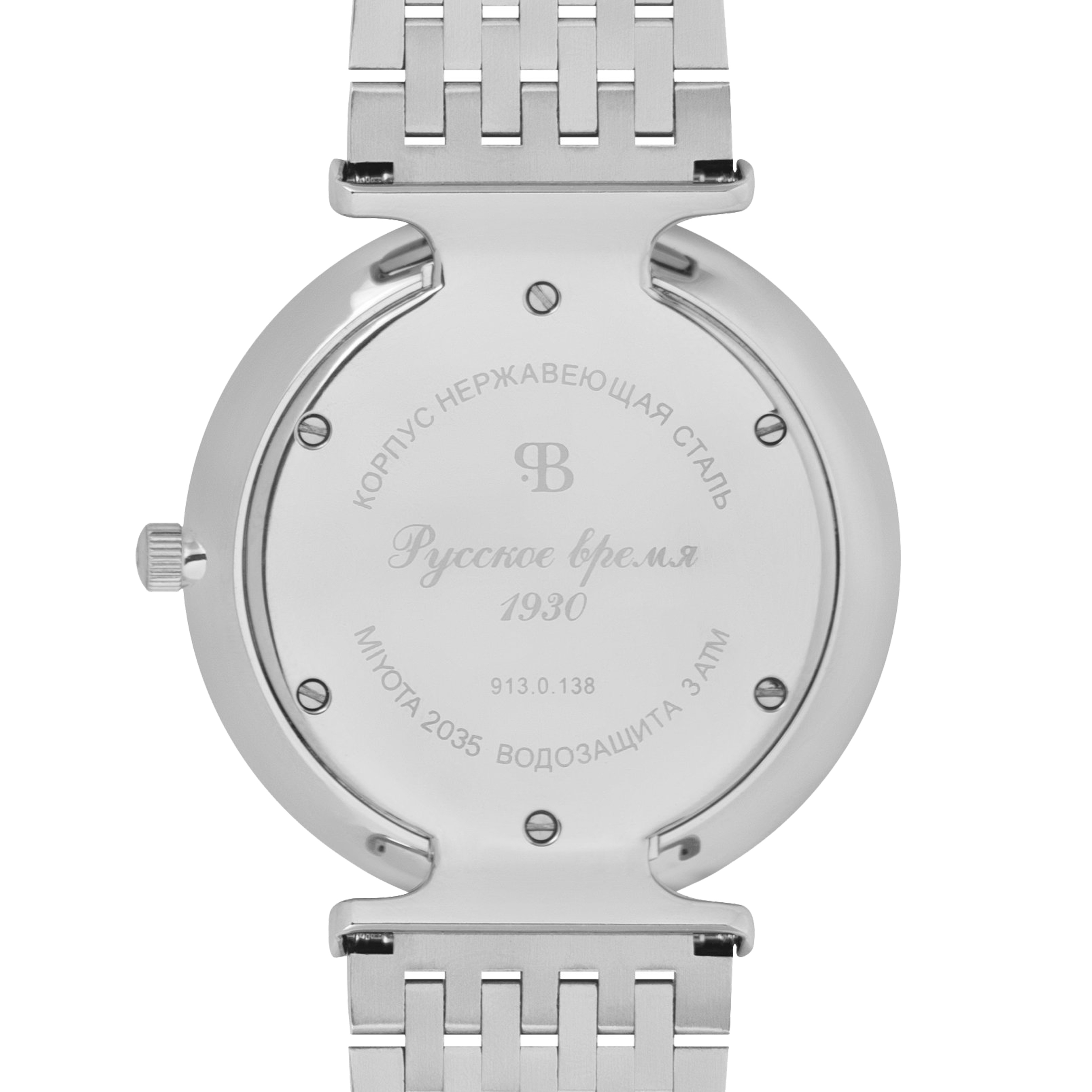 Коллекция мужских часов «Русское время» отражает лучшие качества российского мужчины: надежность и благородство, верность традициям. Данная модель часов для человека, который знает, что жить надо здесь и сейчас. Классический дизайн позволяет надевать эту модель каждый день, не задумываясь о выборе подходящих аксессуаров и одежды. Деловая встреча или романтическое свидание – эти современные часы помогут не опоздать и подчеркнут Ваш отменный вкус. Кварцевые часы – это лаконичность и полная уверенность в любых условиях. Все те, кто ценит качество, выбирает именно такой часовой механизм. Такие часы в стальном корпусе хорошо обезопасены от мелких повреждений и безопасны для здоровья. Нержавеющая сталь – гипоаллергенный материал, поэтому модель подойдет всем, кто ценит качество и заботится о здоровье. Ремешок этих часов очень удобен: Вы не будете испытывать неприятных ощущений при ношении часов. Его материал экологически безопасен и полностью разрешен к использованию на территории любой страны.