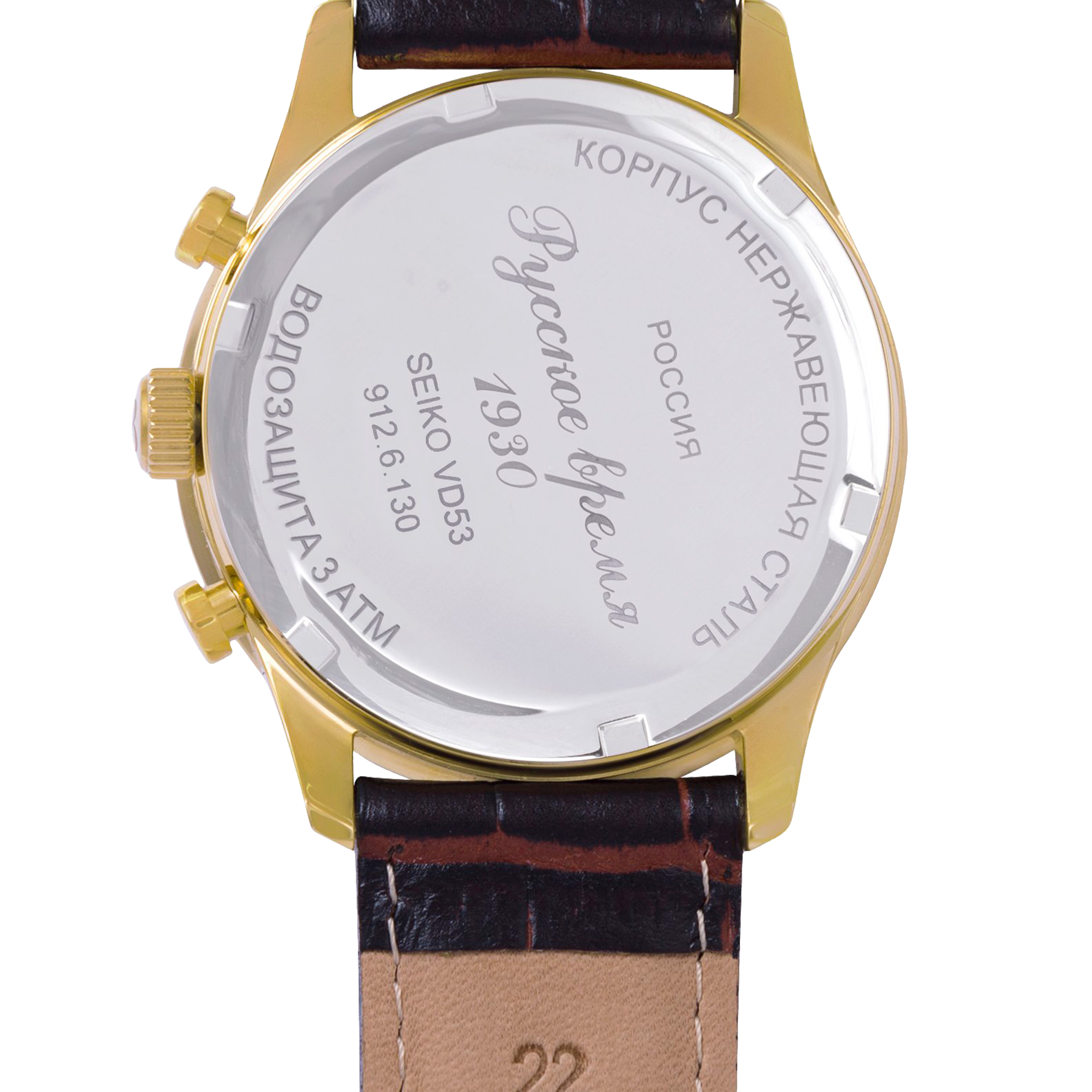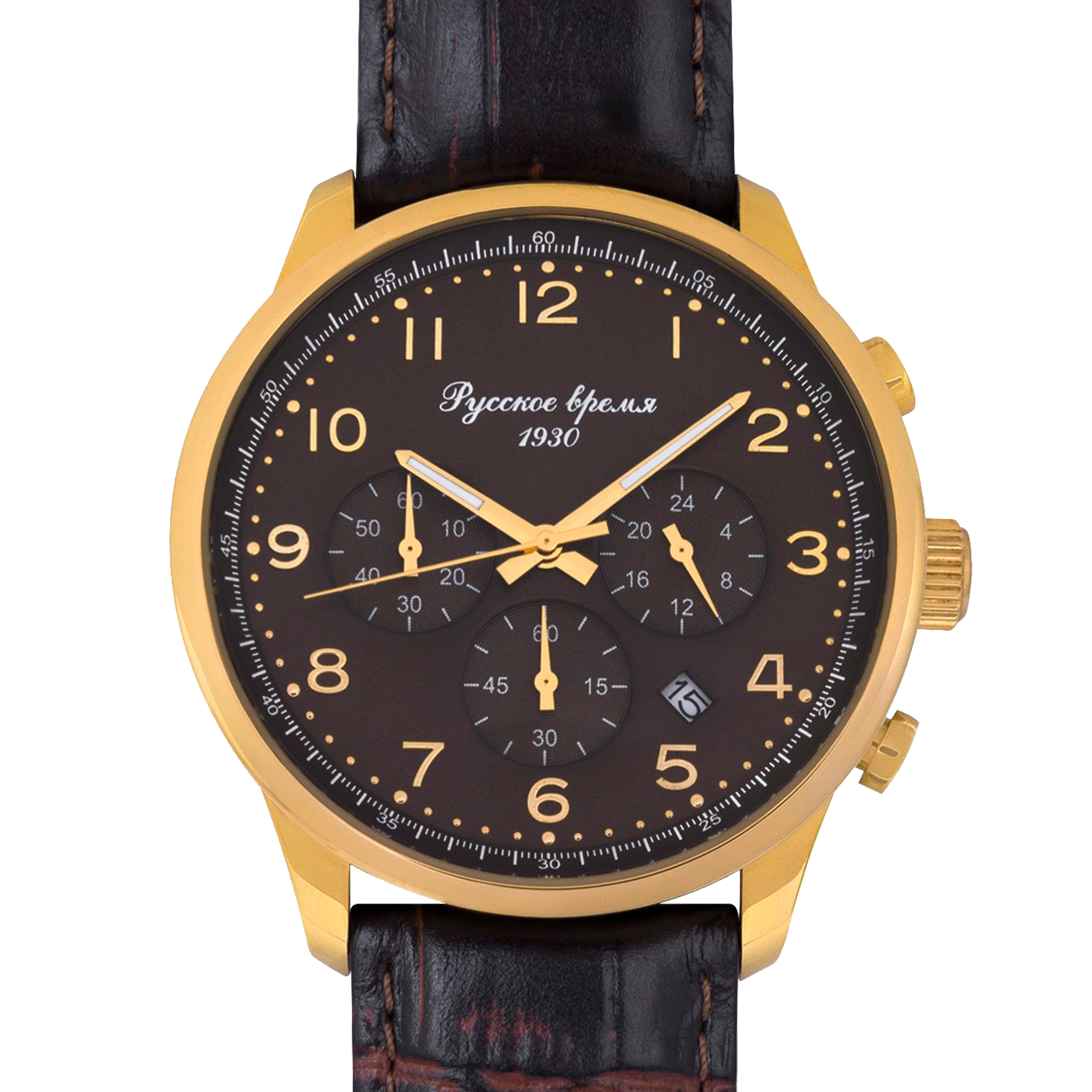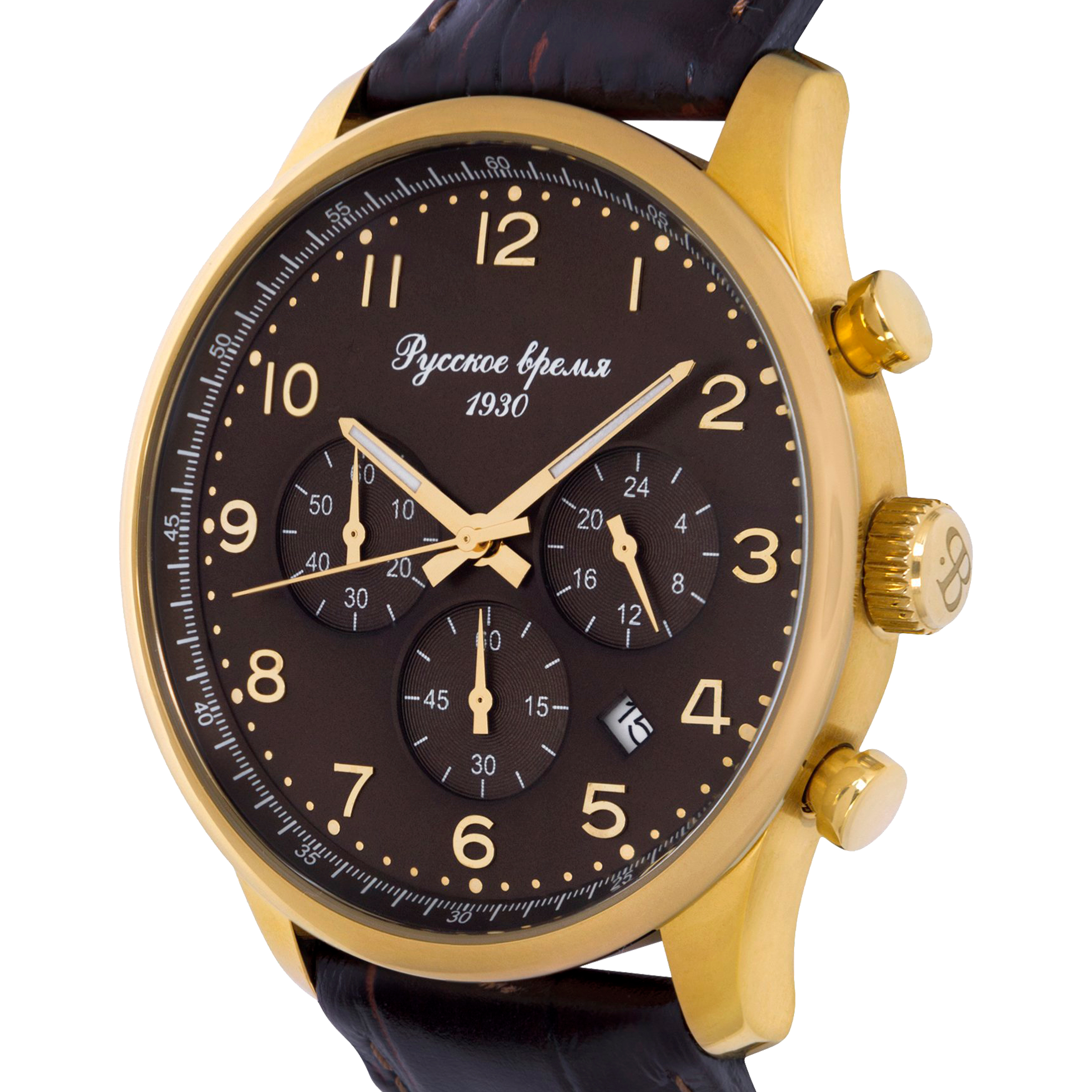 Наручные кварцевые часы Русское время золотисто-коричневые с коричневым ремешком
