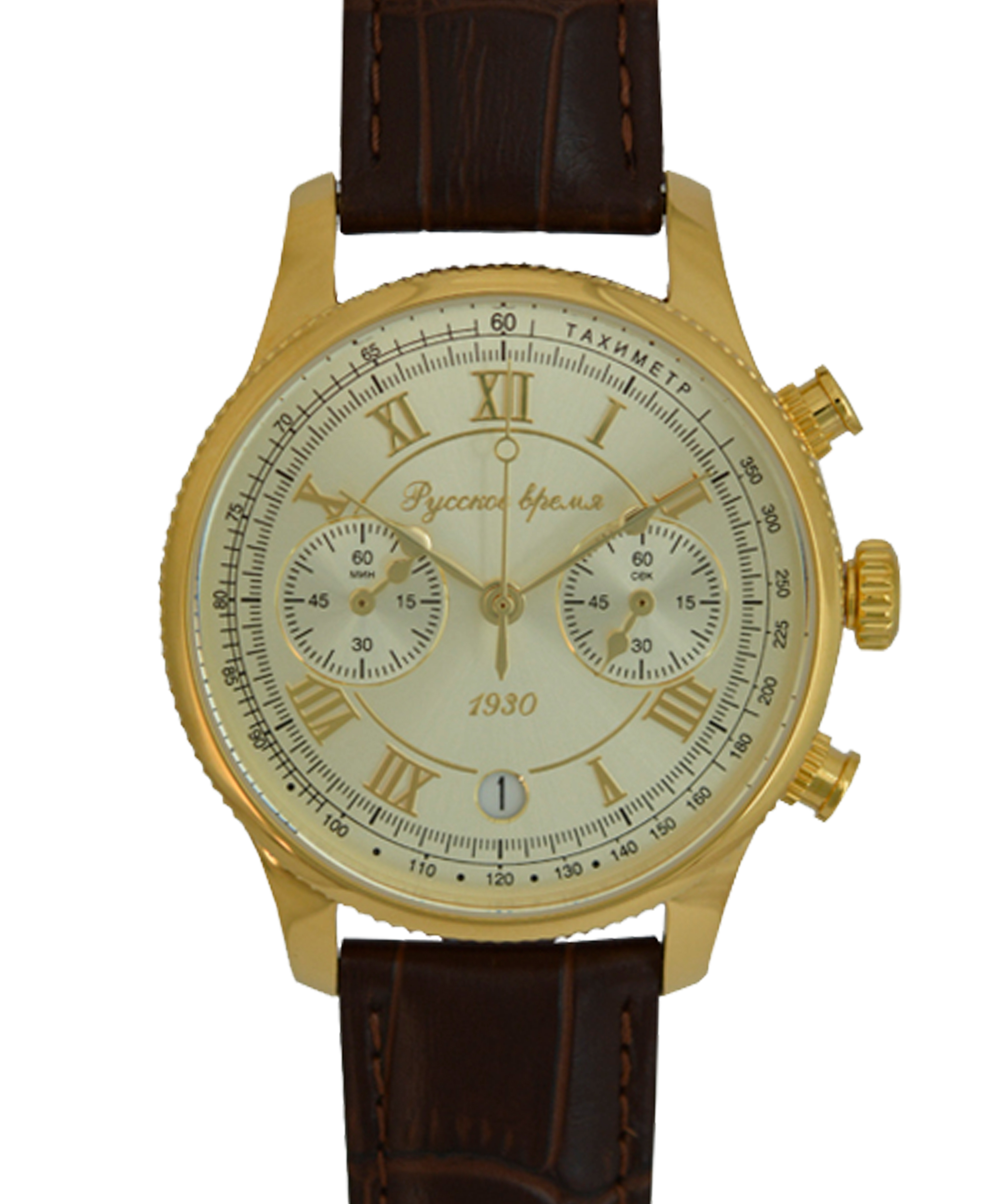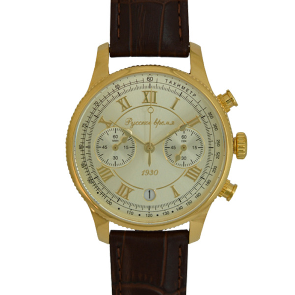 Наручные кварцевые часы Русское время золотистые с коричневым ремешком