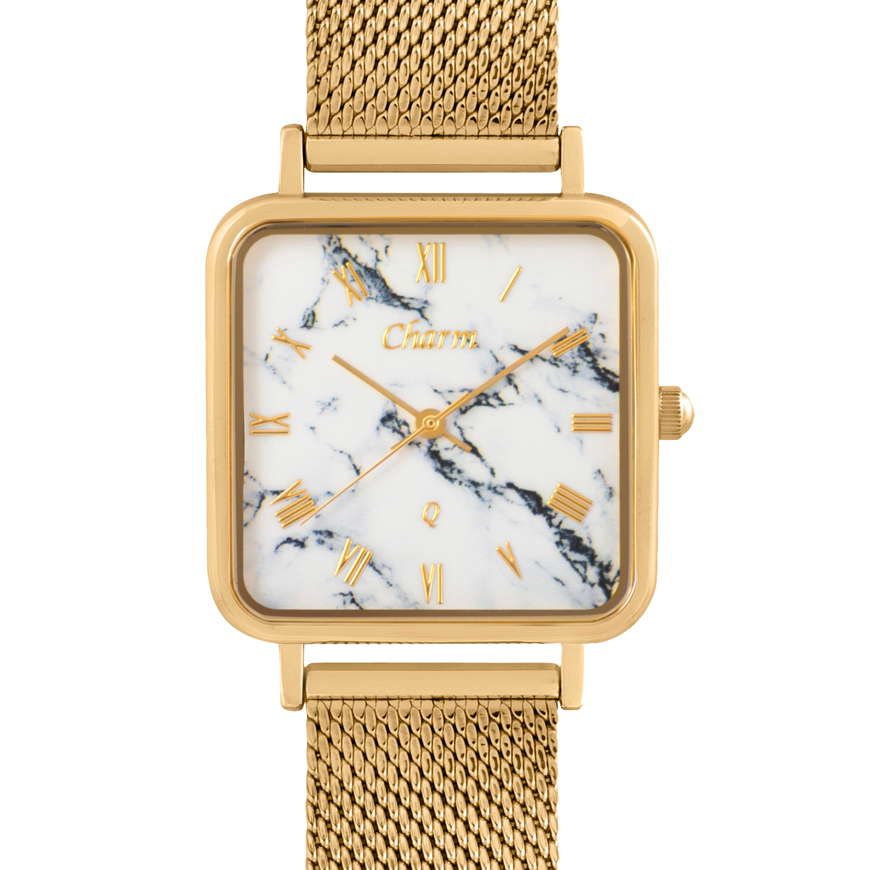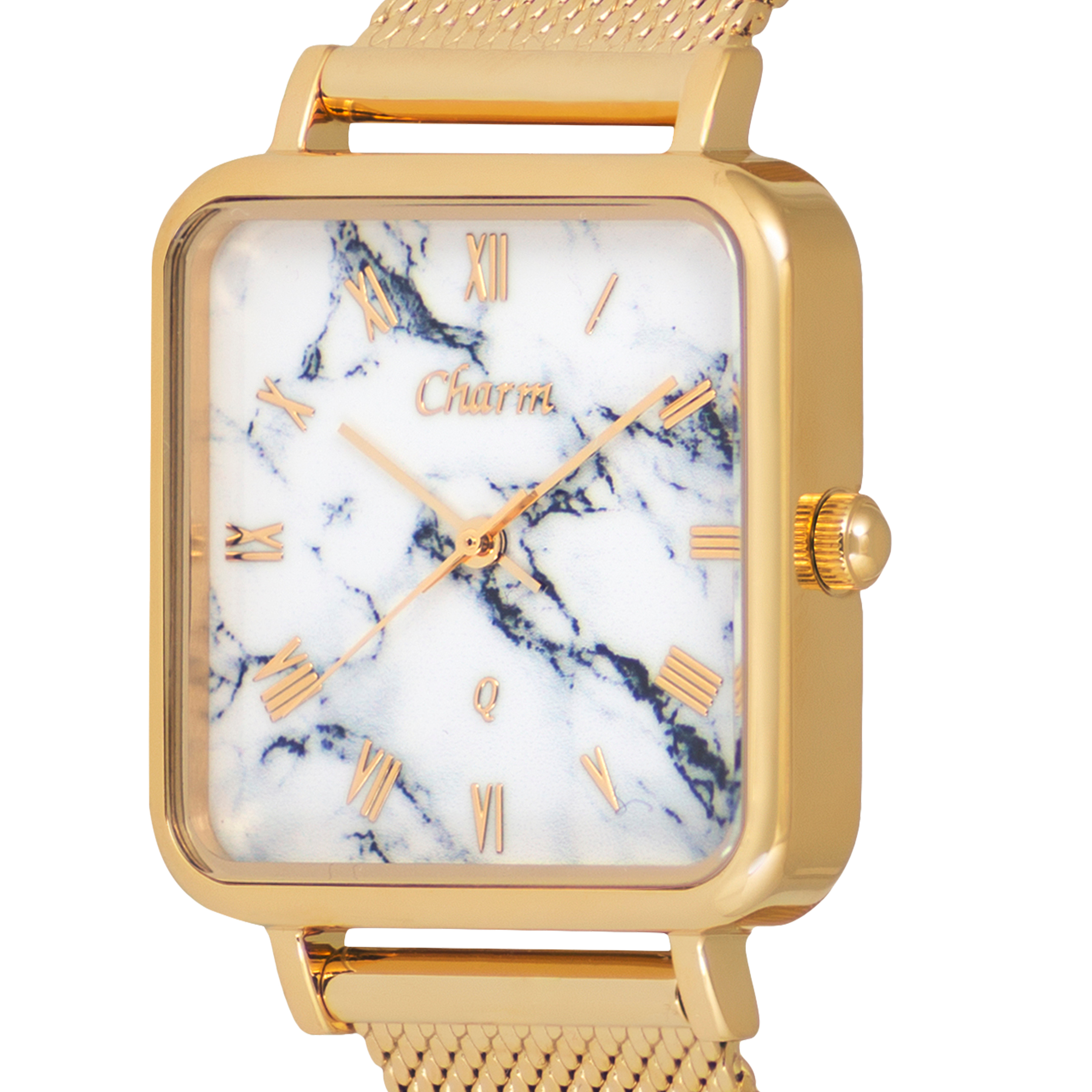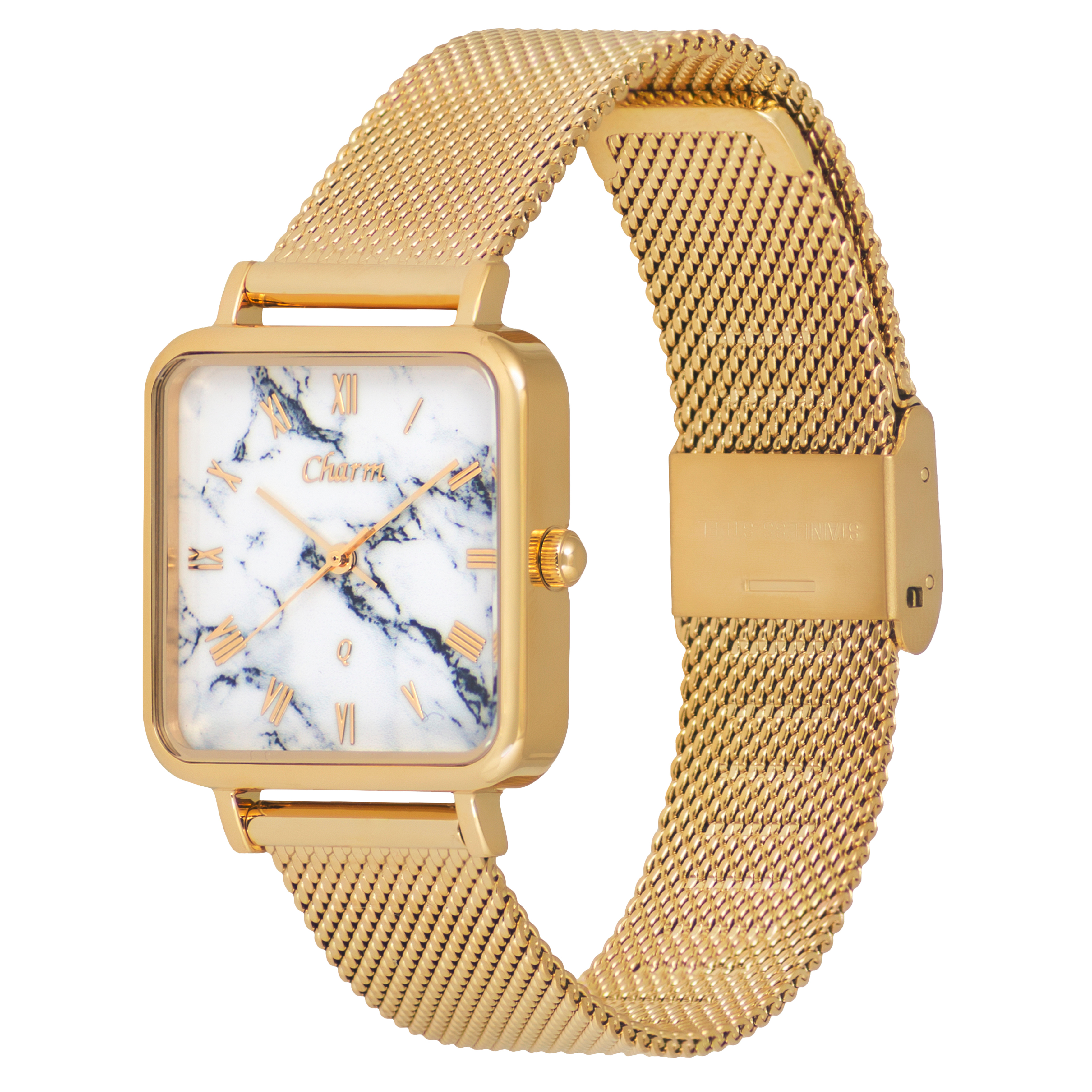Наручные кварцевые часы Шарм бело-золотистые, под мрамор