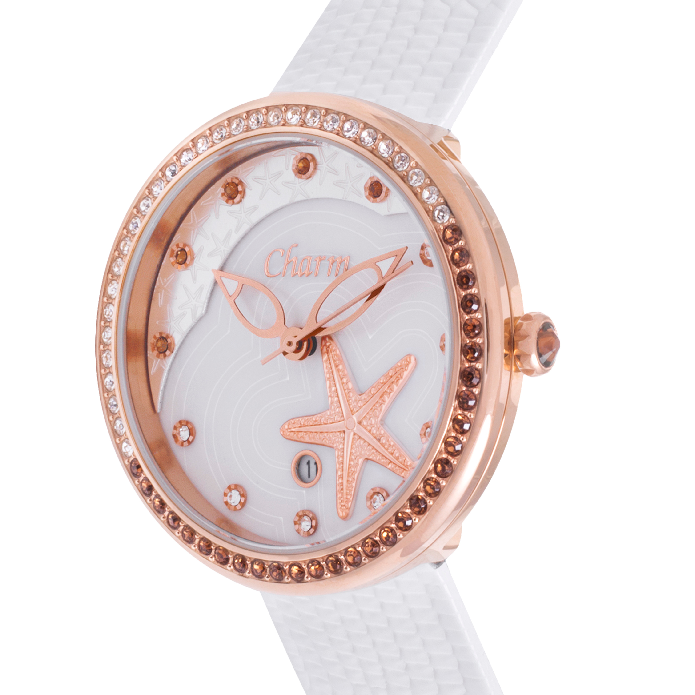 Часы из коллекции Charm – это верх женственности. Чуть кокетливые, тонко украшенные или лаконичные – каждая дама сможет подобрать то, что станет отражением ее красоты и индивидуальности. Fashion-дизайн данной модели поможет Вам привлечь к себе особое внимание и продемонстрировать Ваш неповторимый модный стиль. Часовая мода тоже капризна, и перед Вами – самый актуальный ее образец. Кварцевый механизм поможет Вам быстро и качественно решить все задачи и всегда знать самое точное время. Новое слово в нашем часовом деле. Красивый корпус из нержавеющей стали прочен, обладает гипоаллергенным свойством, то есть подходит для всех, для полных и худых. Лучшее решение, по мнению большинства любителей и профессионалов часов и покупателей. Розовое золото – лучший вариант для тех, кто любит все нестандартное, но чтит традиции. Часы с таким покрытием в моде уже несколько лет и не собираются сдавать позиции. Ремешок этих часов чрезвычайно комфортен: Вы не будете испытывать неудобства при ношении данной модели часов. Его материал экологически абсолютно безопасен и полностью разрешен к использованию на территории любой страны. Часы «Шарм» – это качество, надежность и стиль, соединенные в прочном корпусе оригинального дизайна. Откажитесь от китайских подделок сомнительных брендов – намного выгоднее заказать у нас часы, которые прослужат Вам не один год.