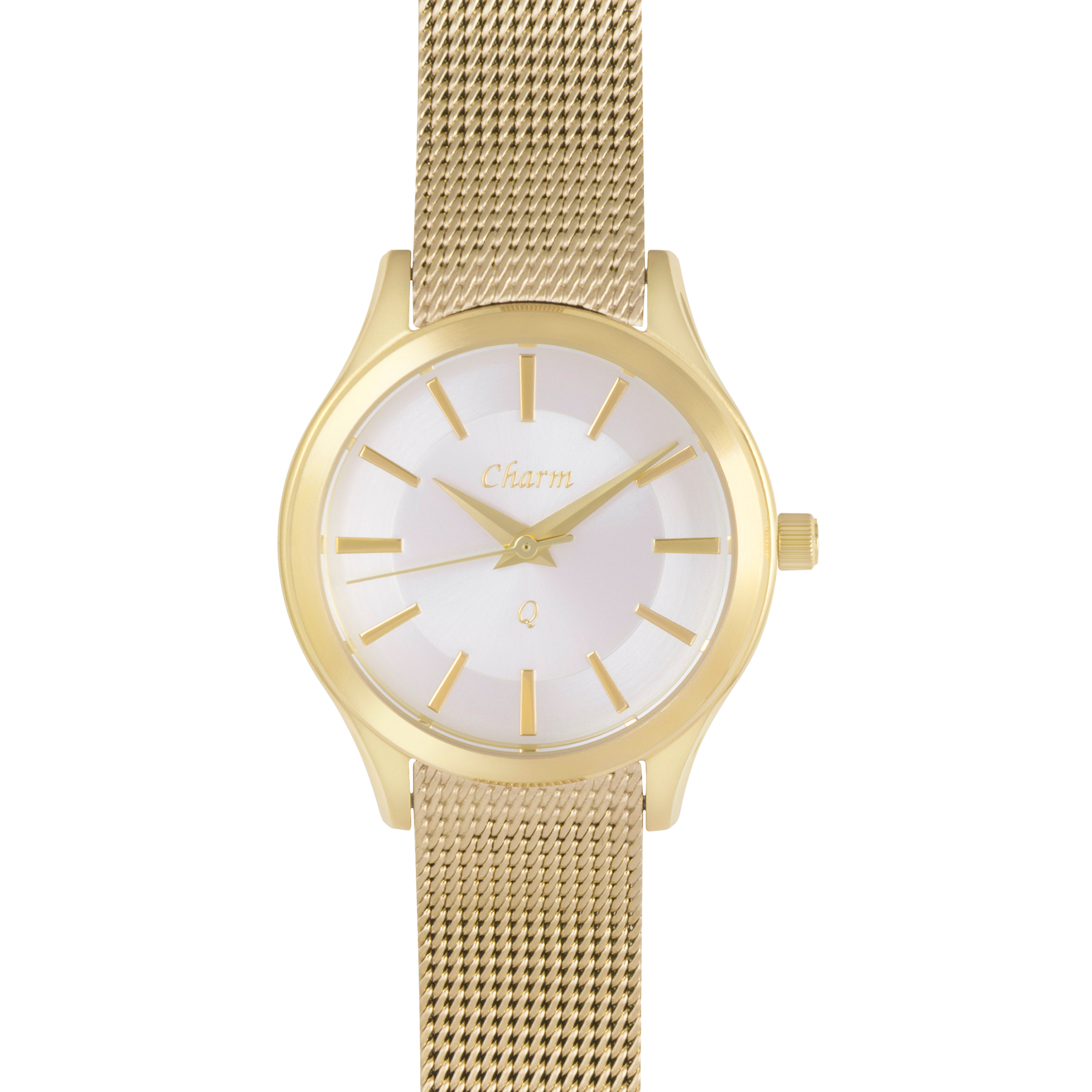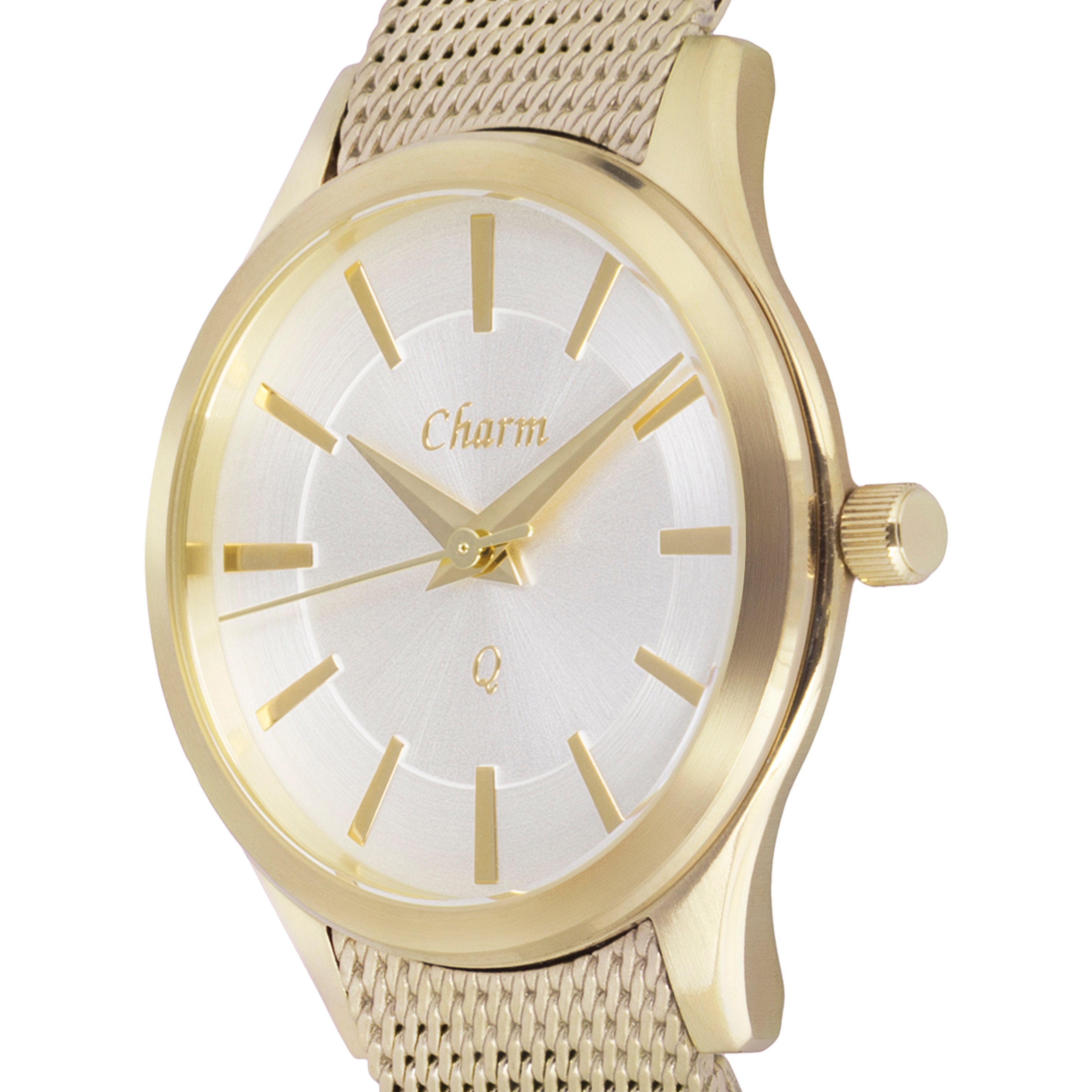 Наручные кварцевые часы Шарм бело-золотистые, желтое золото