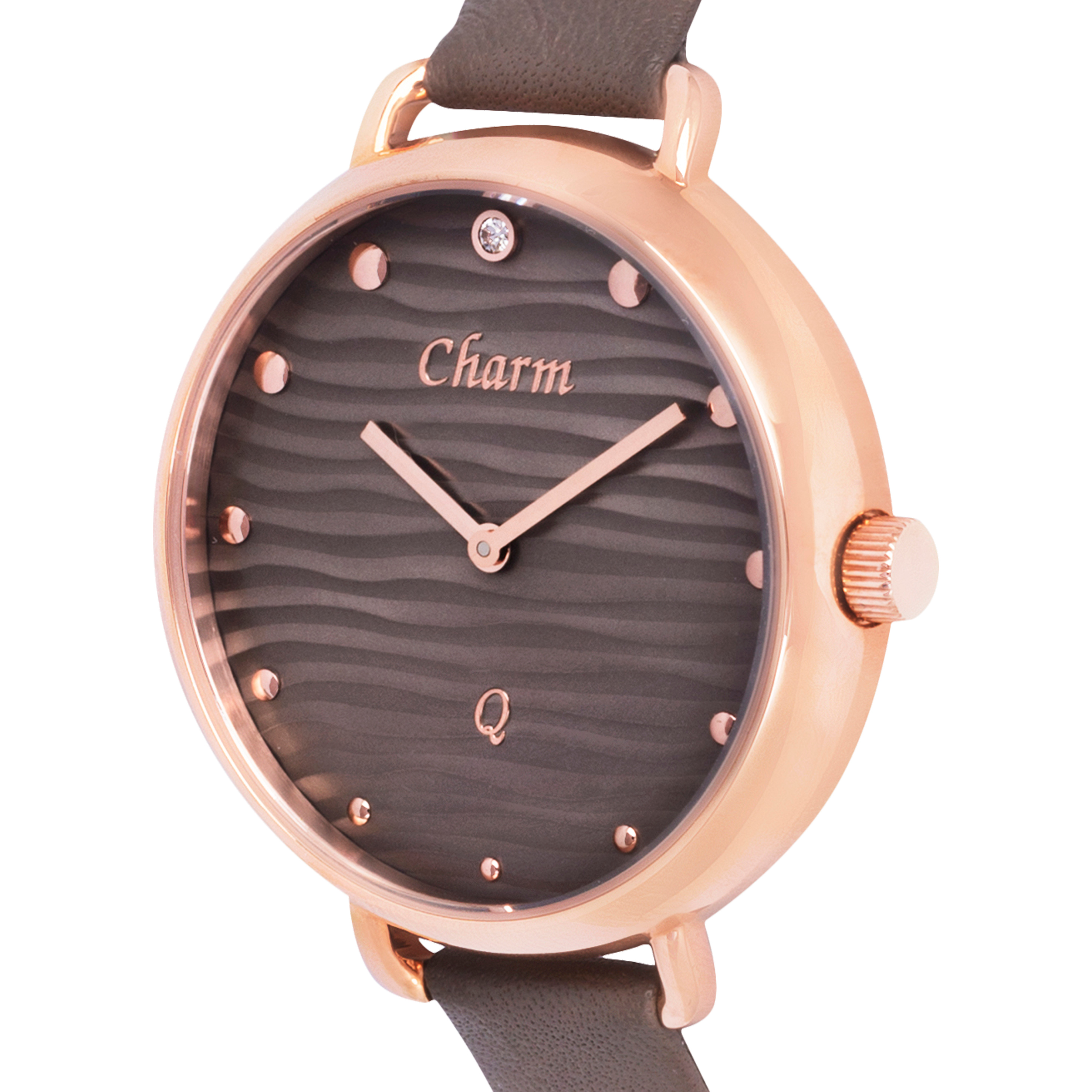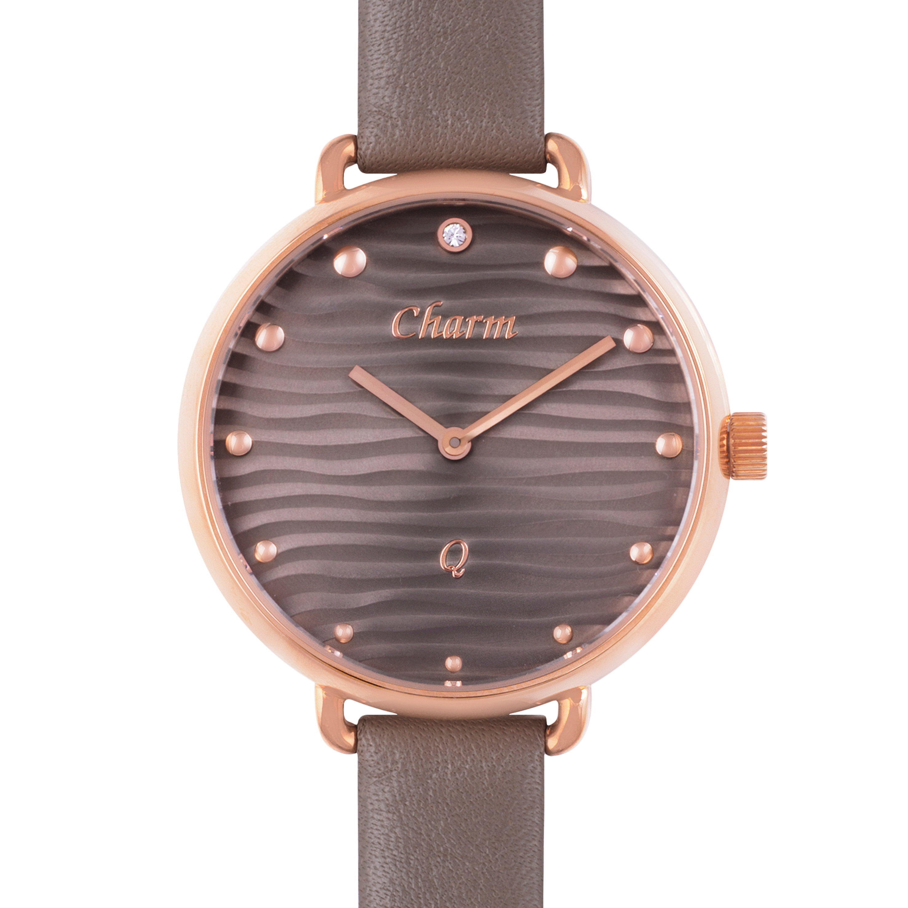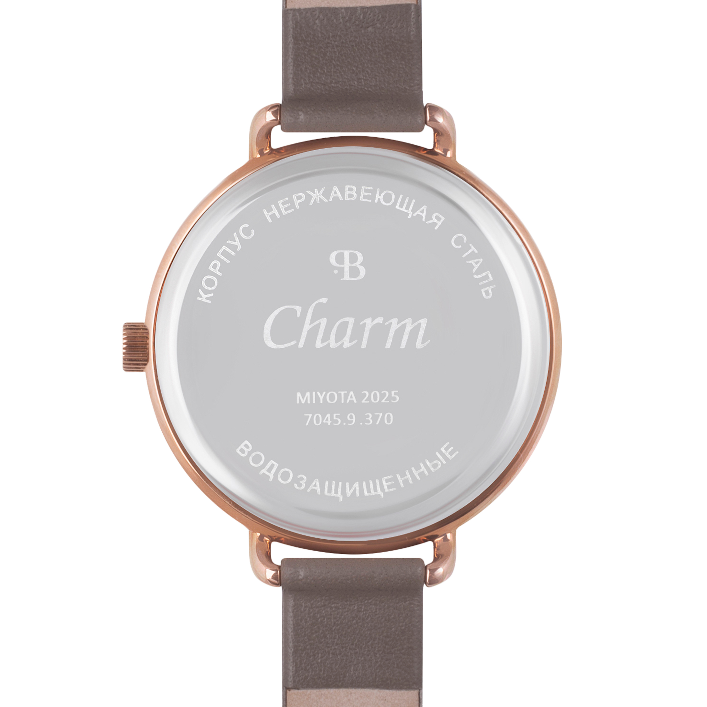 Наручные кварцевые часы Шарм бежево-золотистые с темно-бежевым ремешком