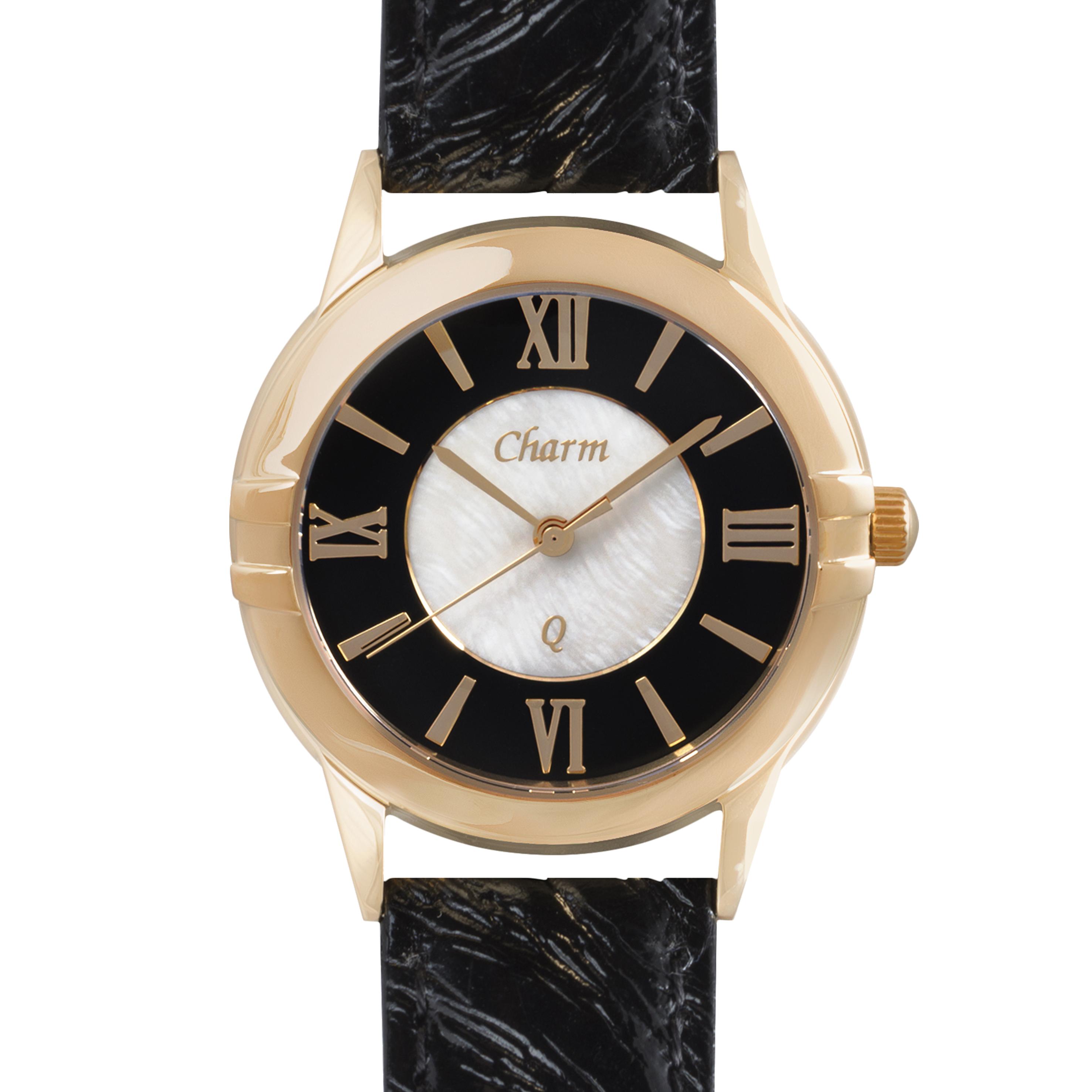 Наручные кварцевые часы Шарм черно-золотистые, с черным ремешком
