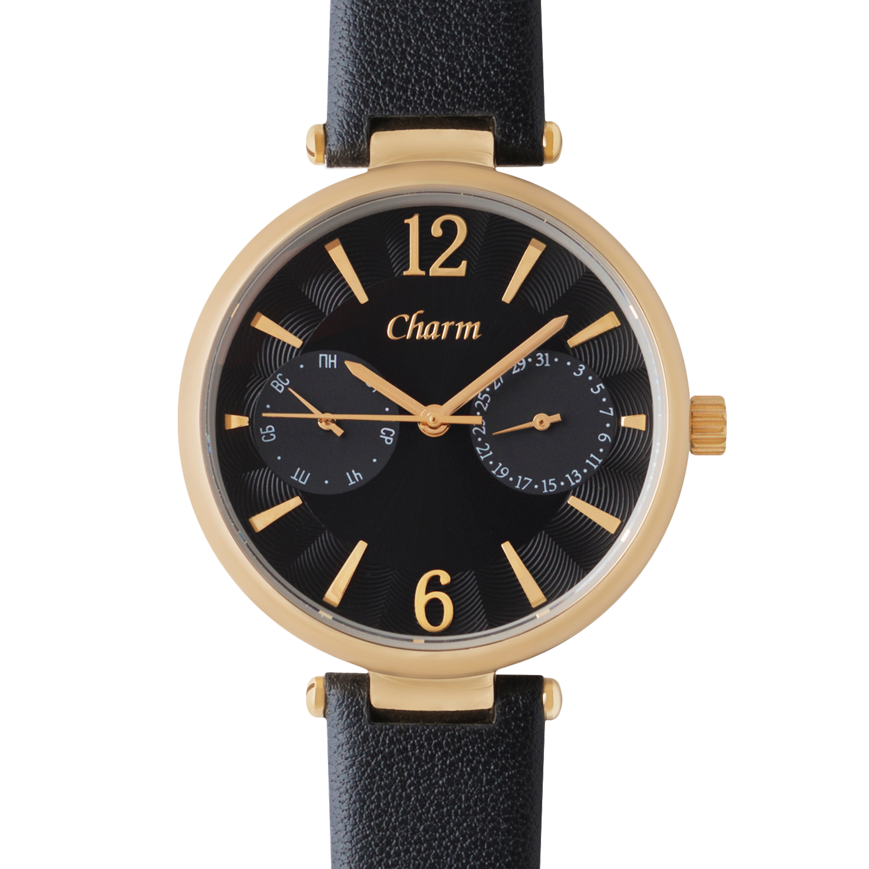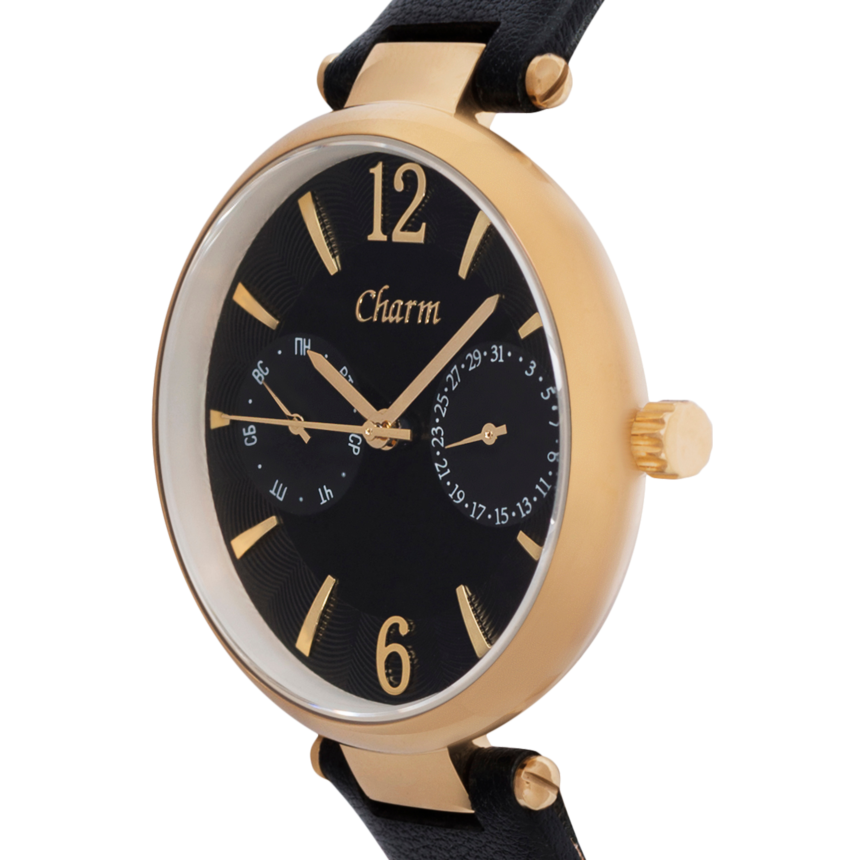 Наручные кварцевые часы Шарм черно-золотистые с черным ремешком