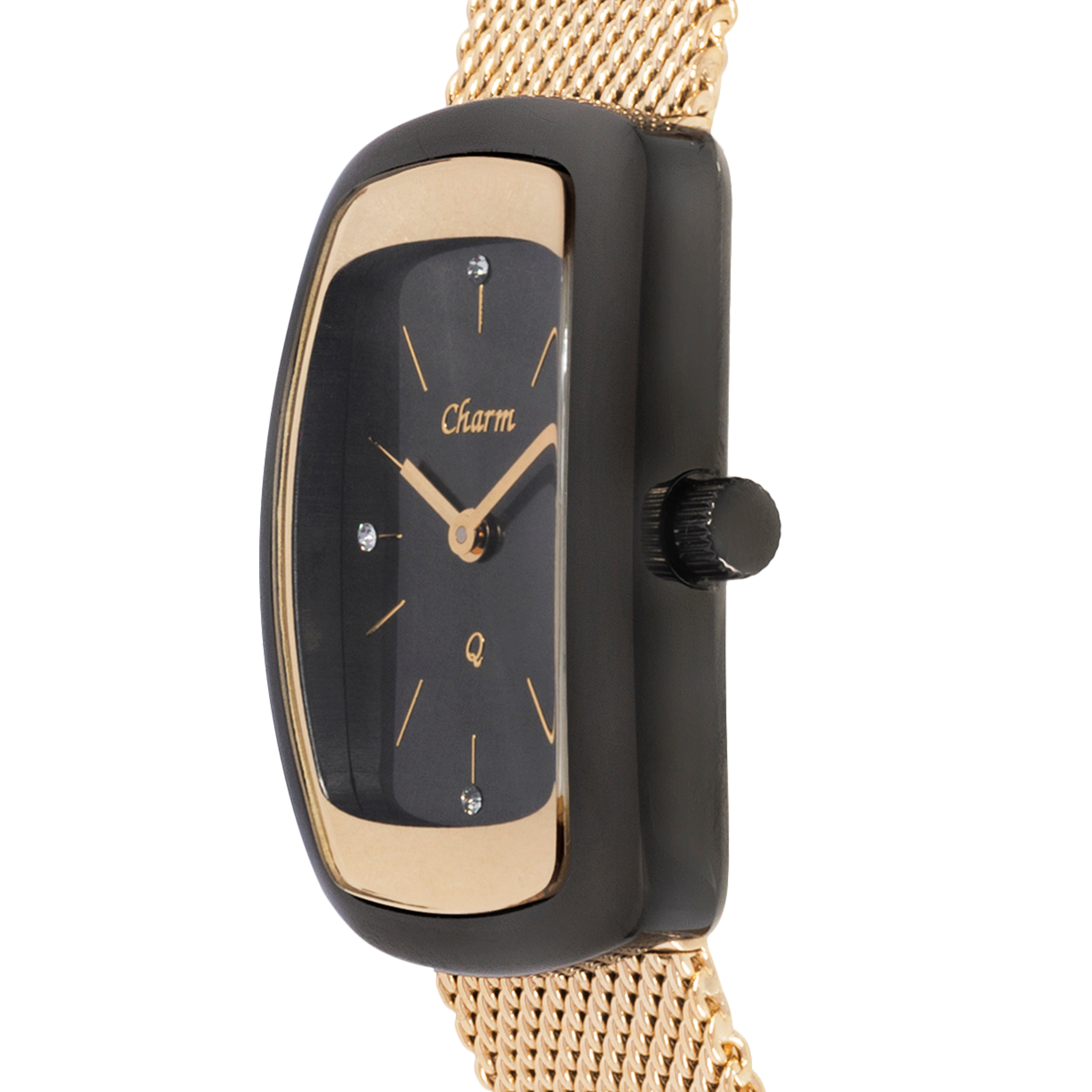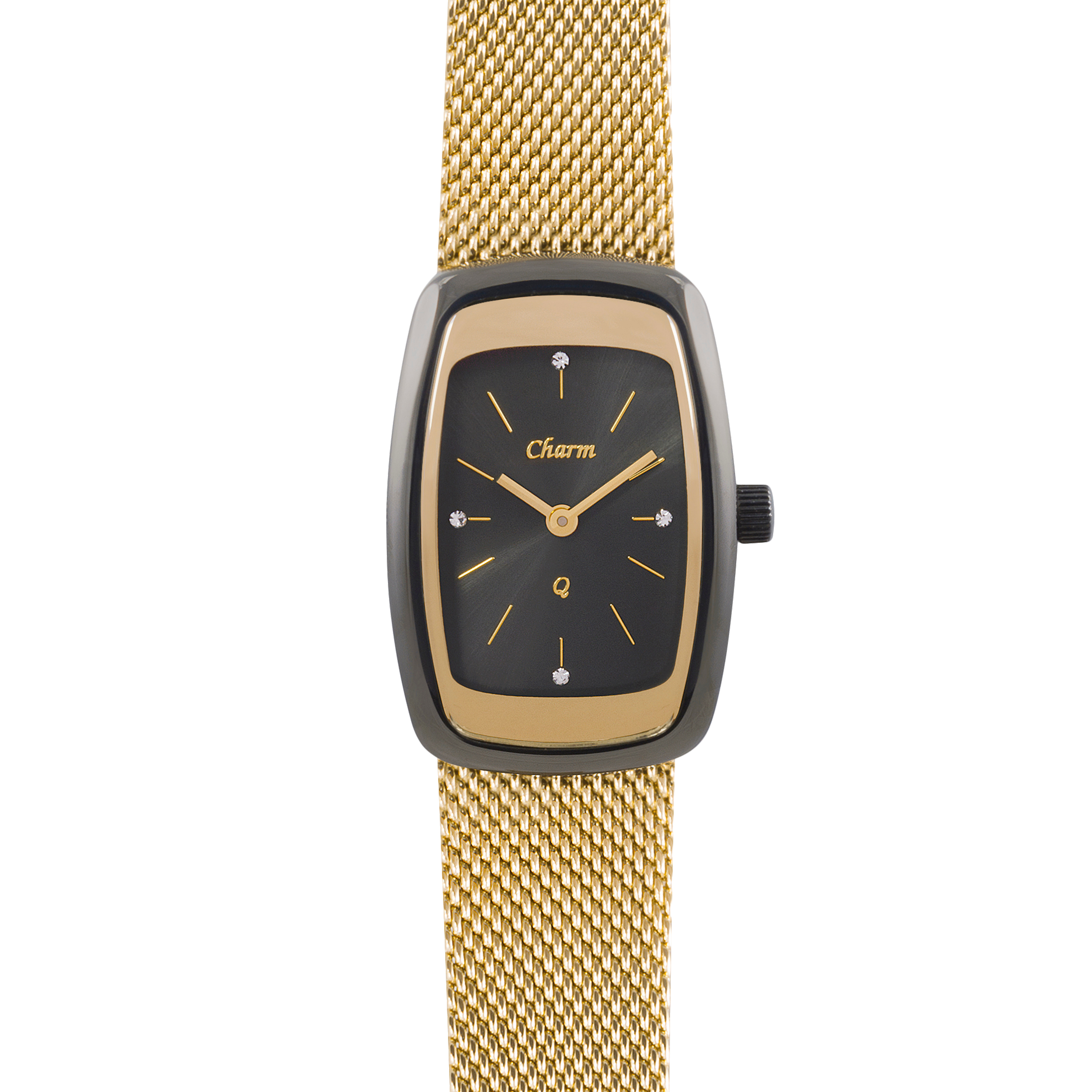 Наручные кварцевые часы Шарм черно-золотистые, желтое золото