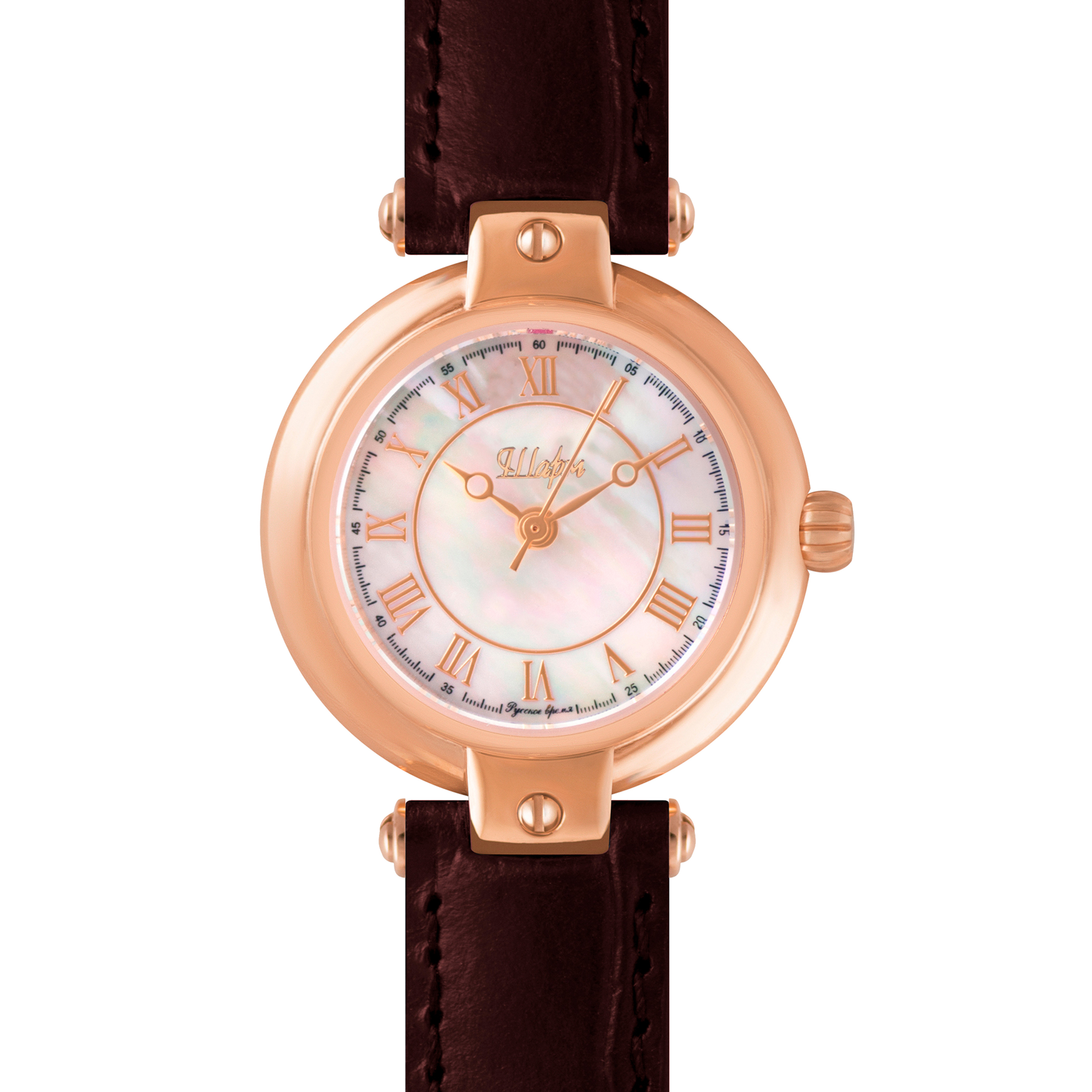 Наручные кварцевые часы Шарм перламутрово-золотистые, с коричневым ремешком, розовое золото