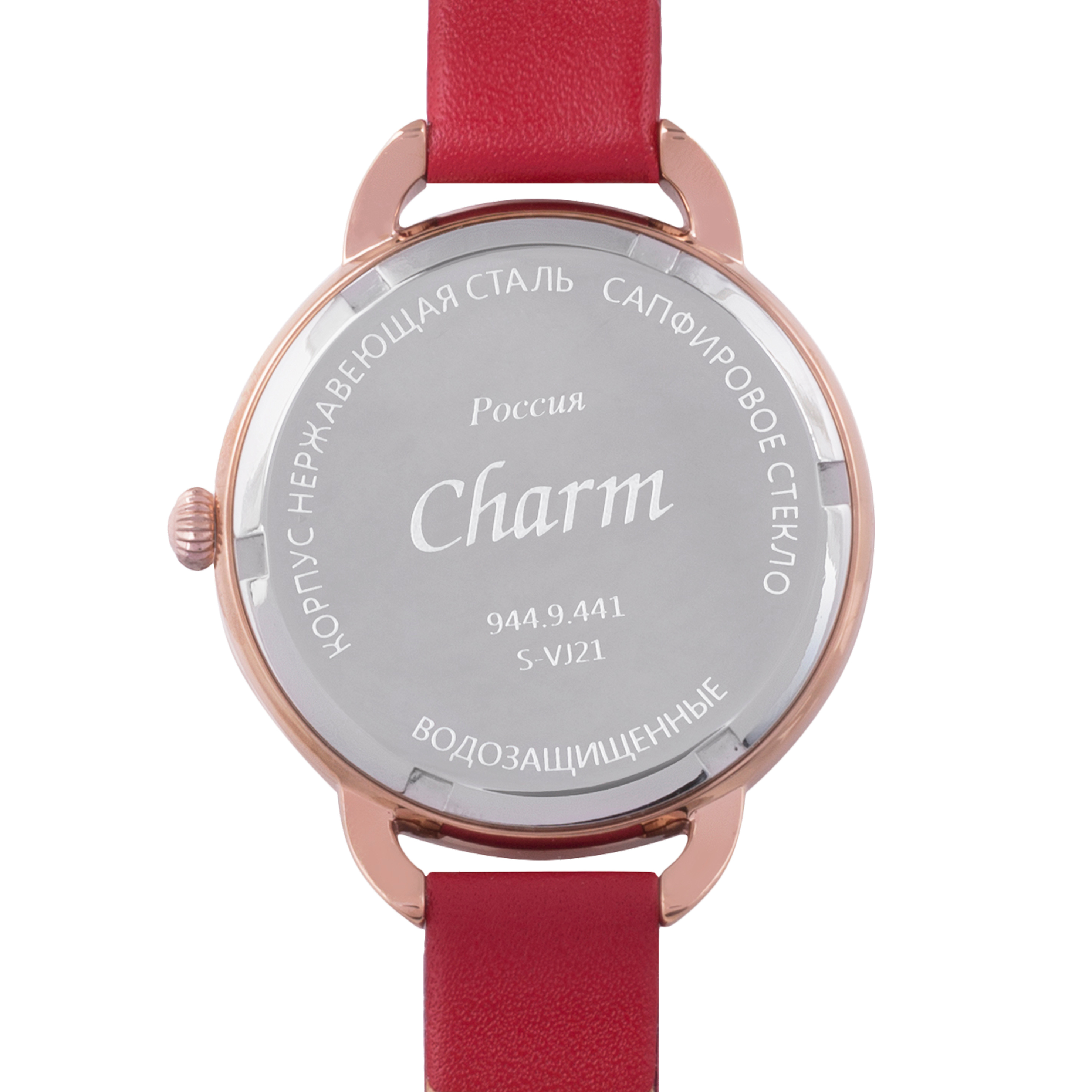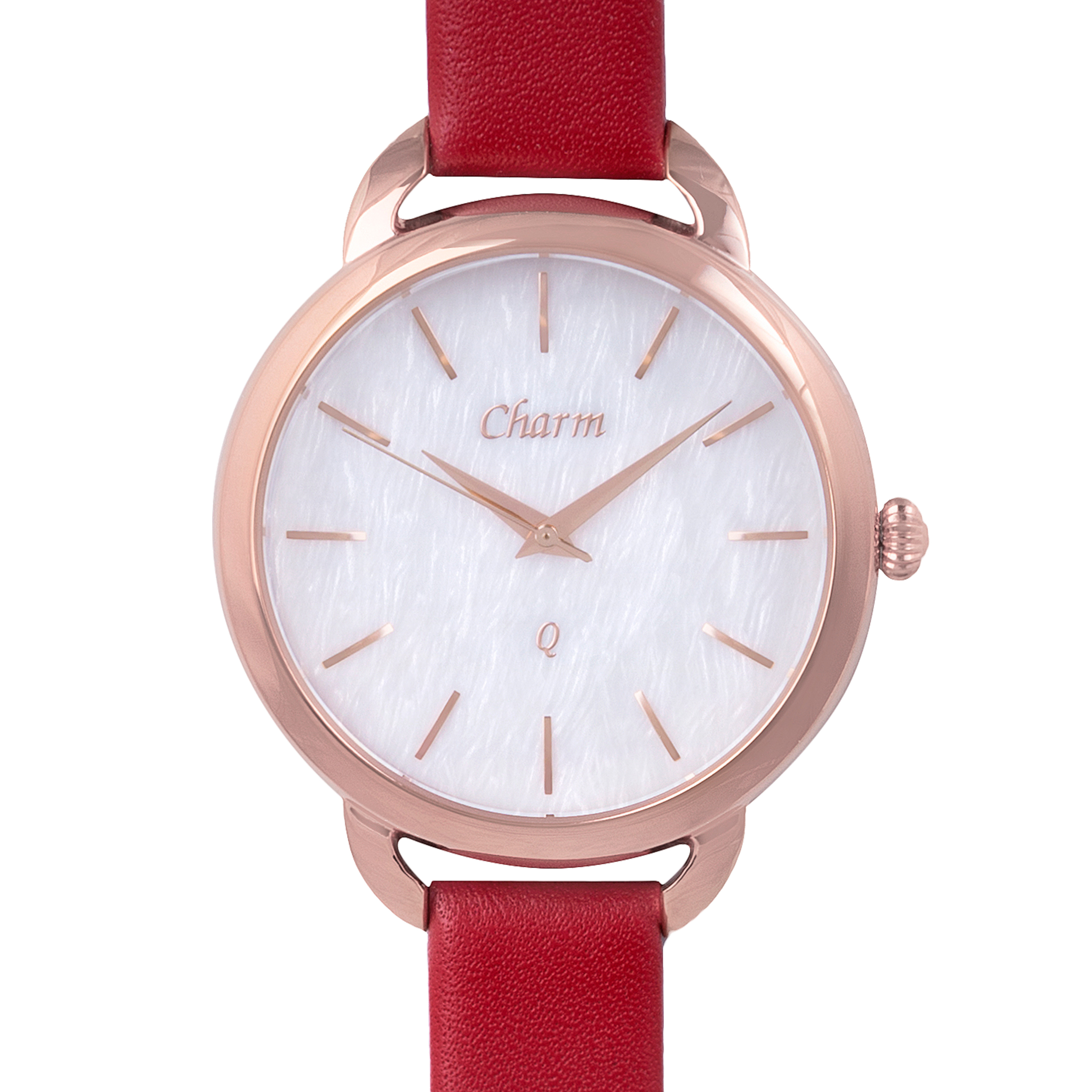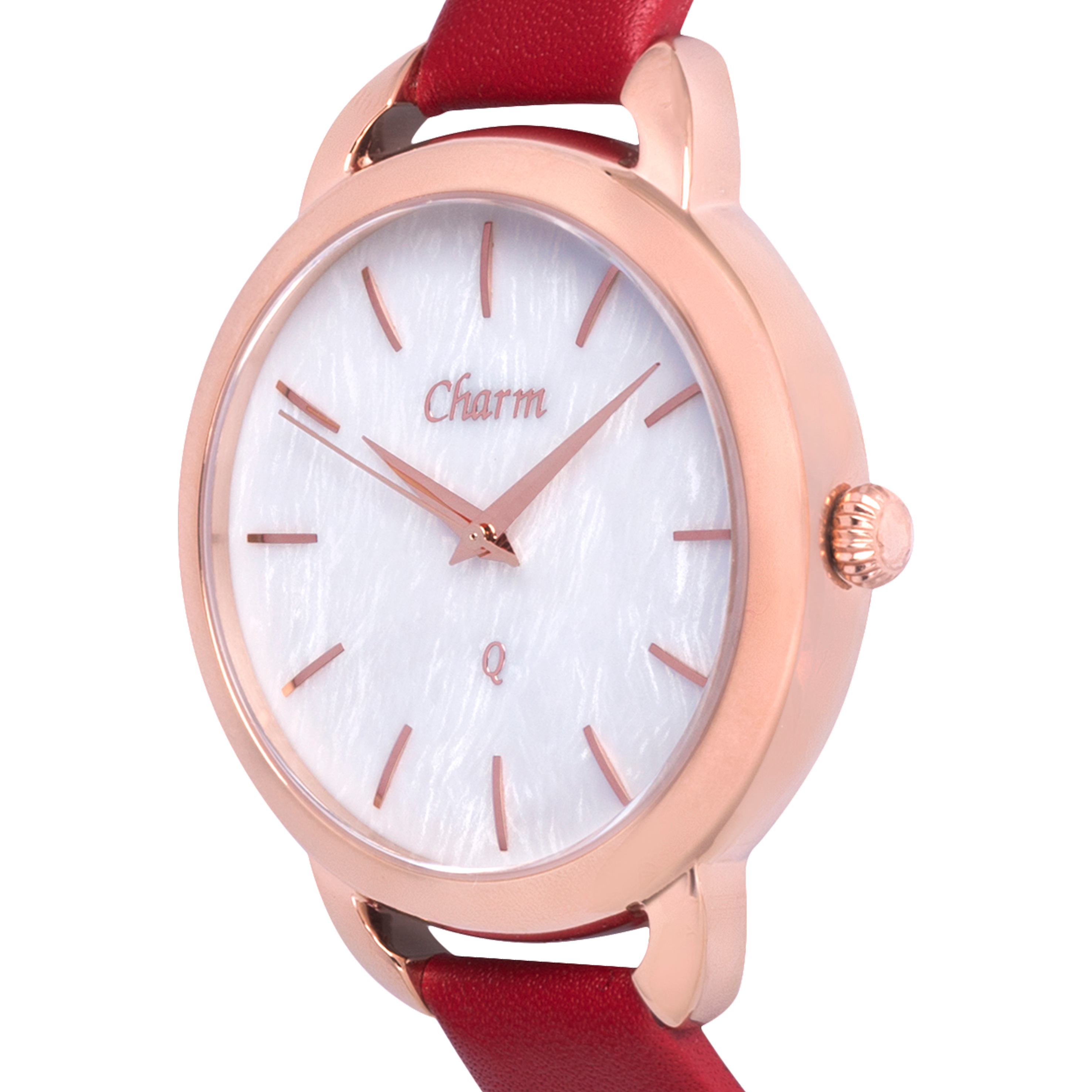Наручные кварцевые часы Шарм перламутрово-золотистые, с красным ремешком