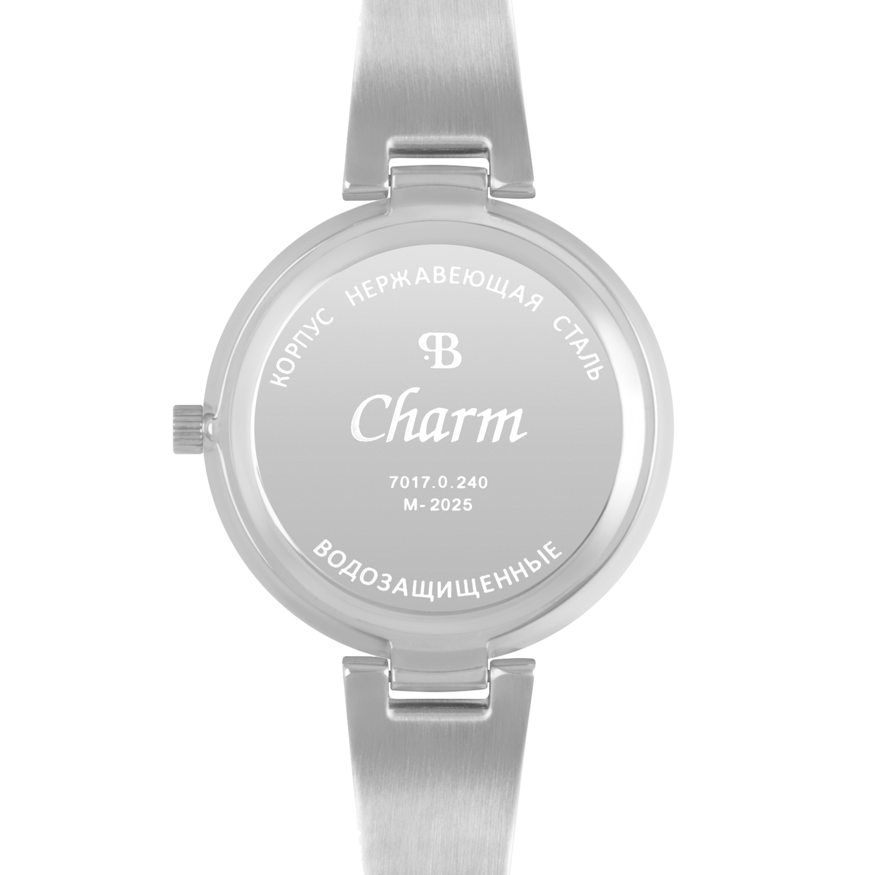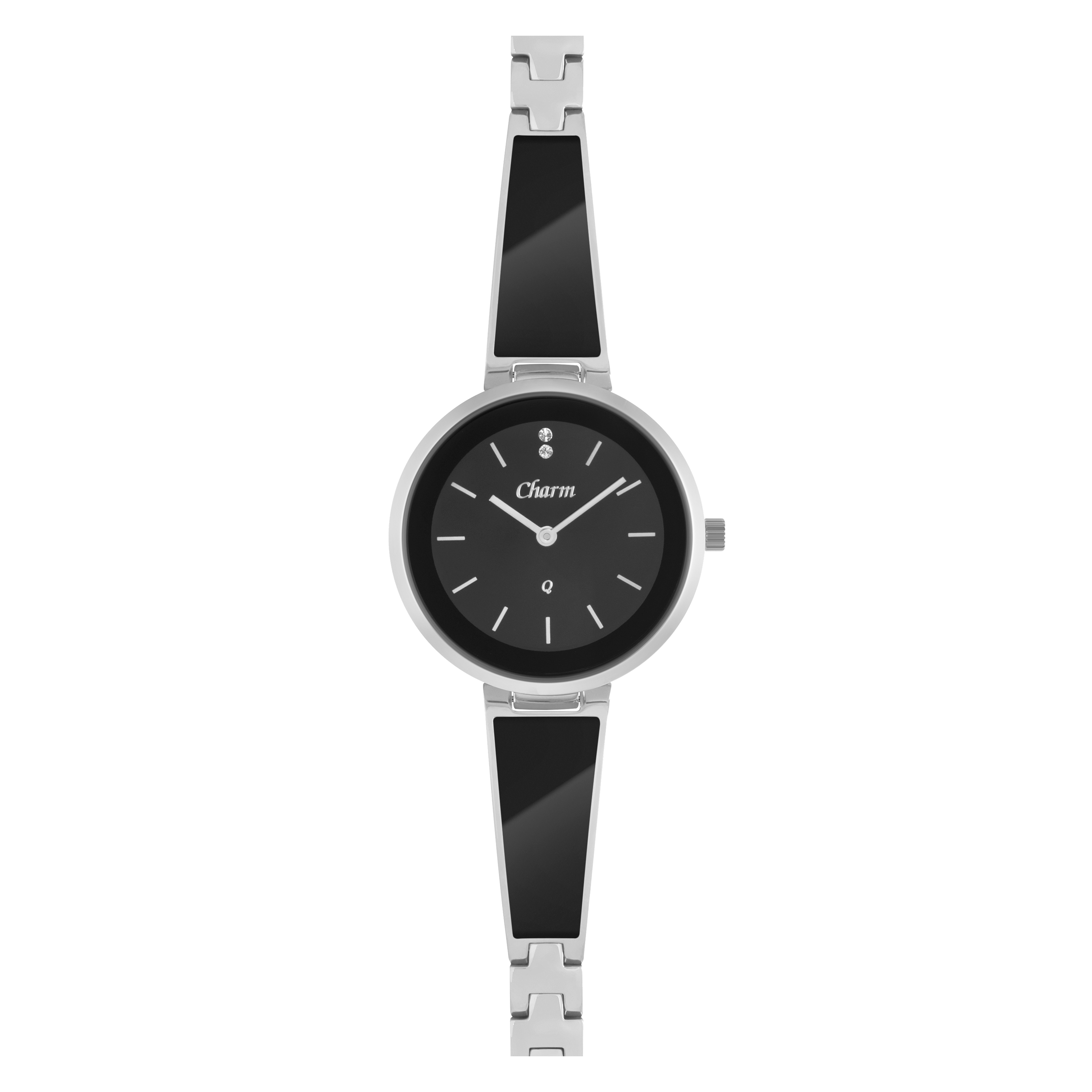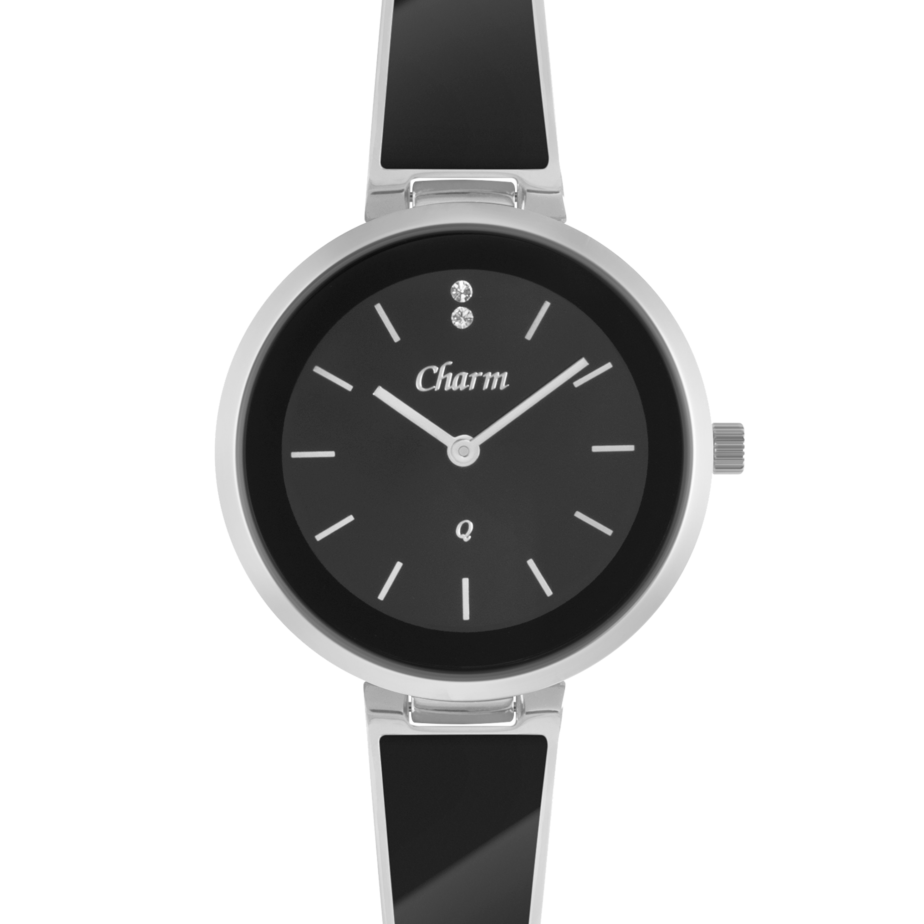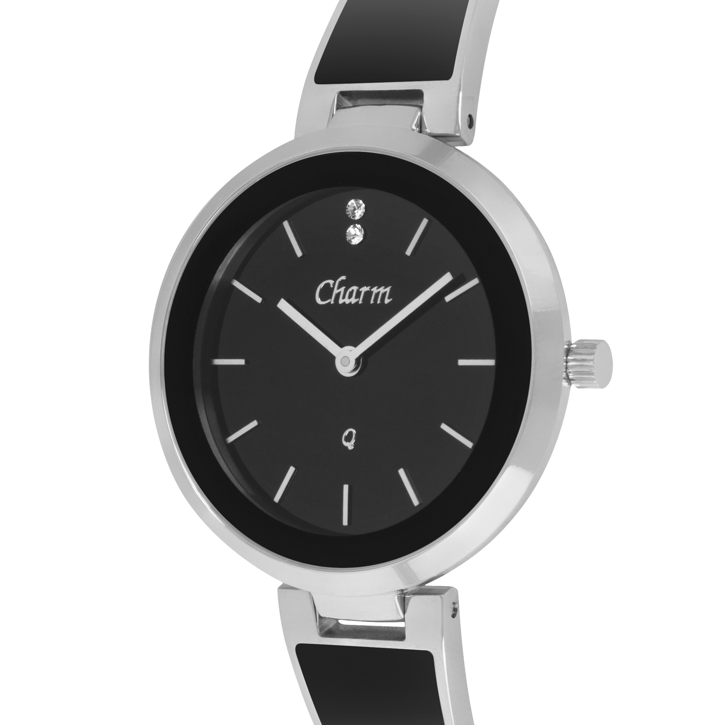 Наручные кварцевые часы Шарм серебристо-черные, со вставками под керамику