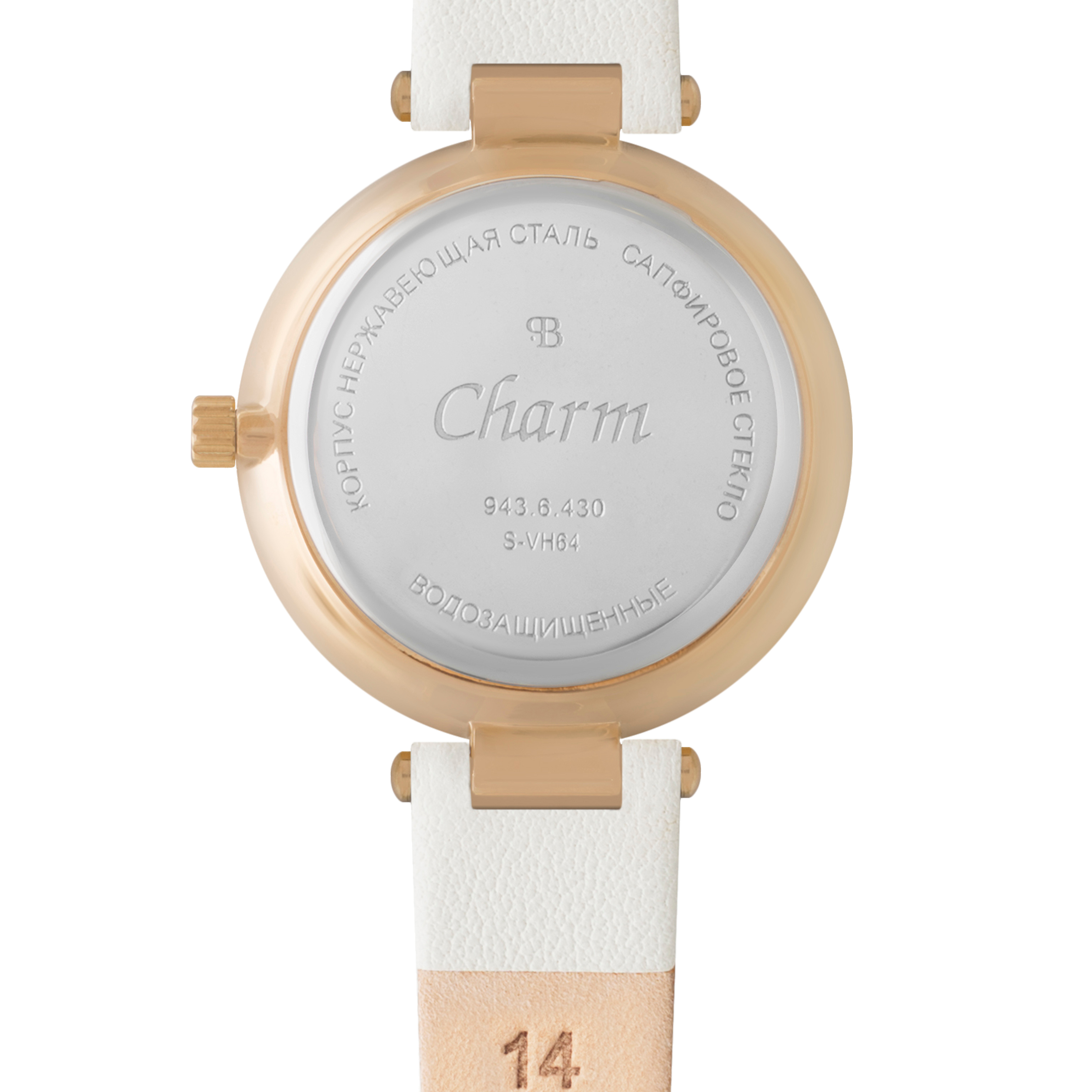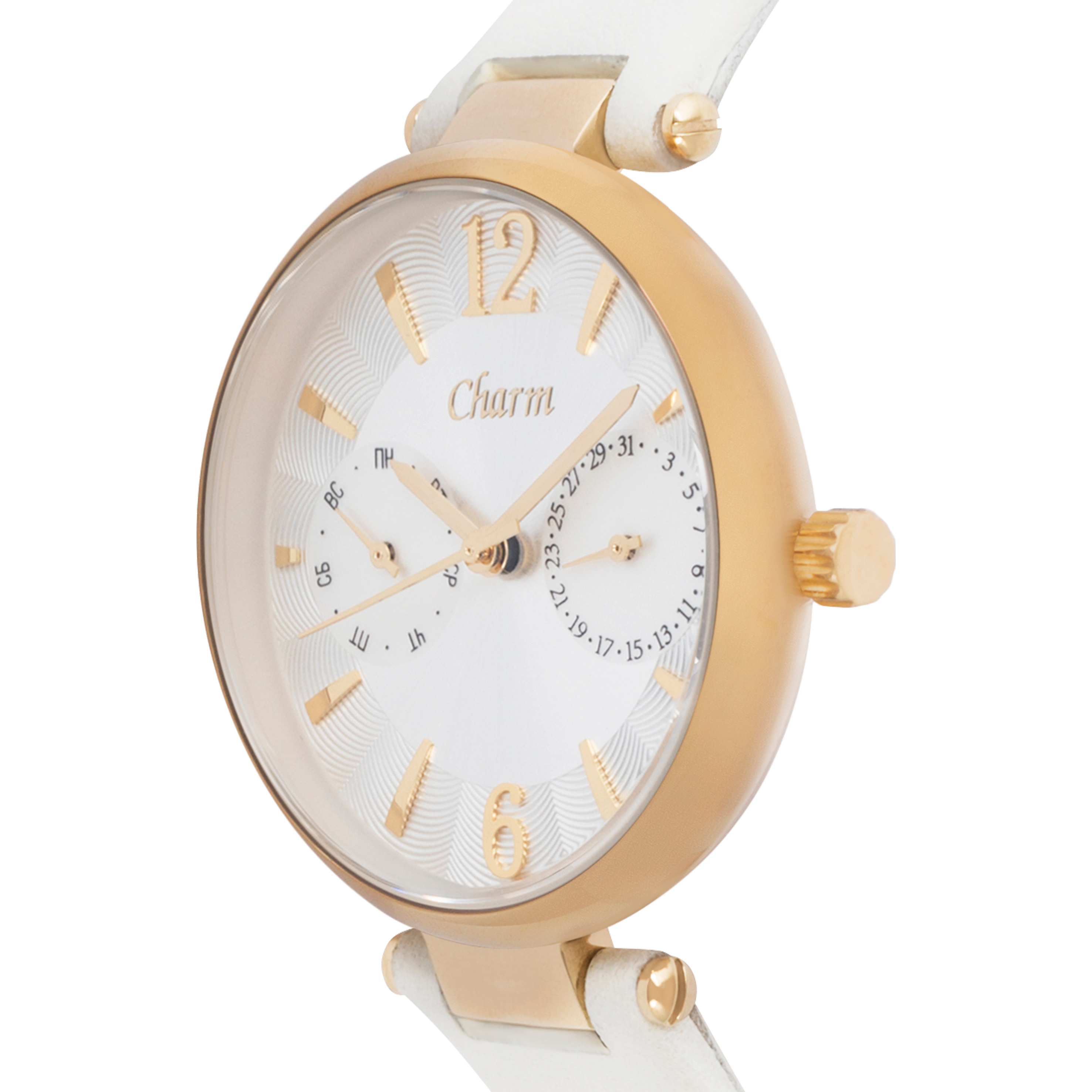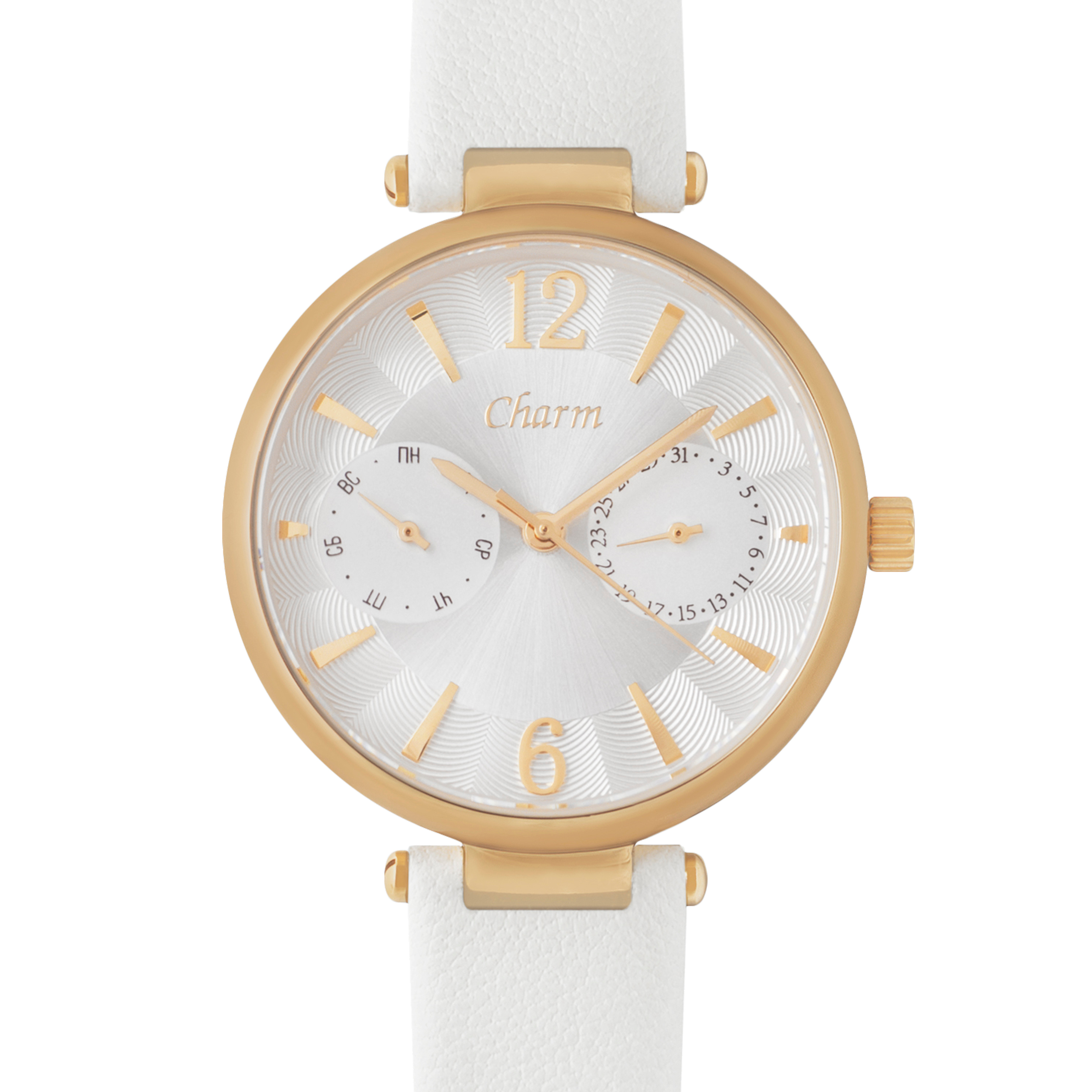 Наручные кварцевые часы Шарм серебристо-золотистые с белым ремешком
