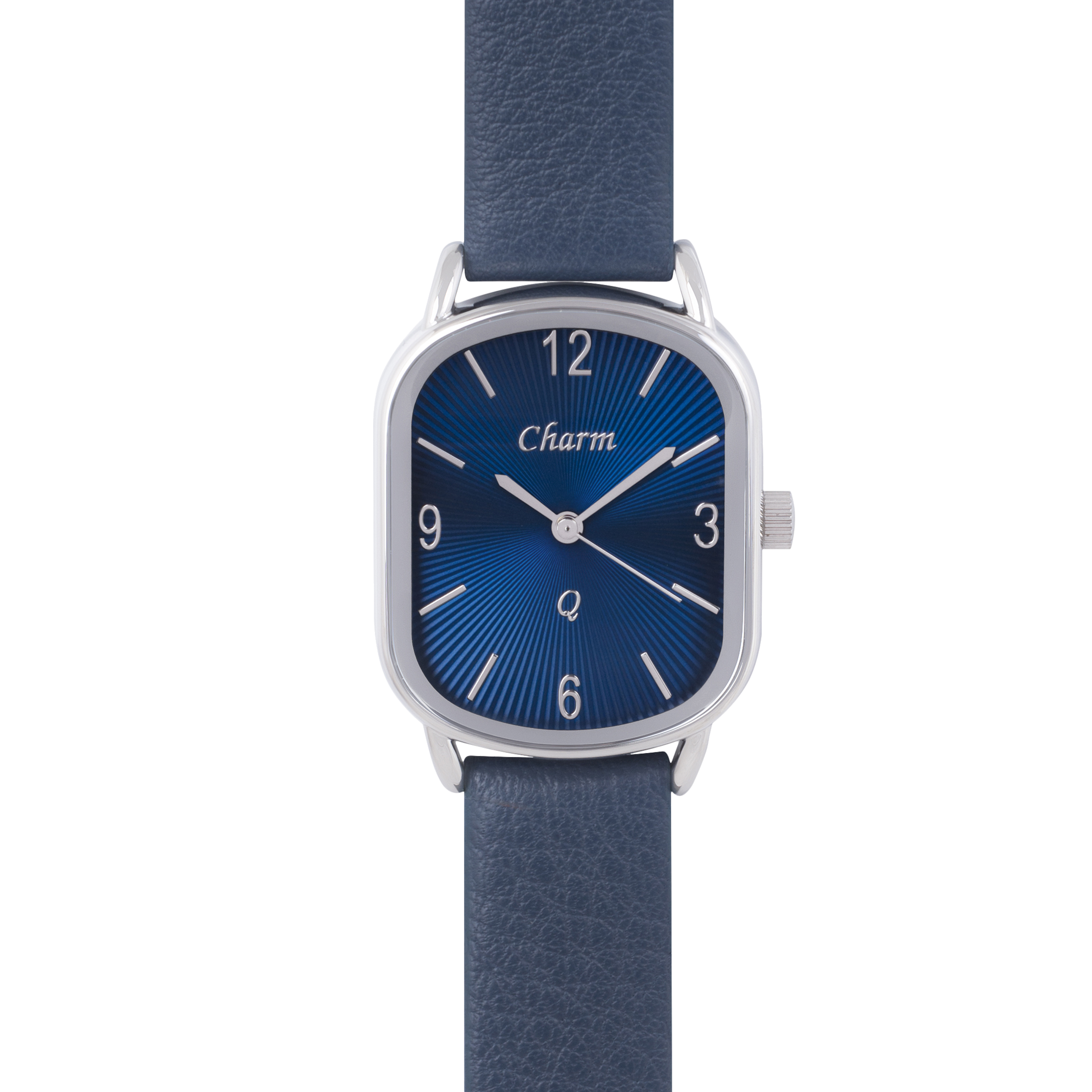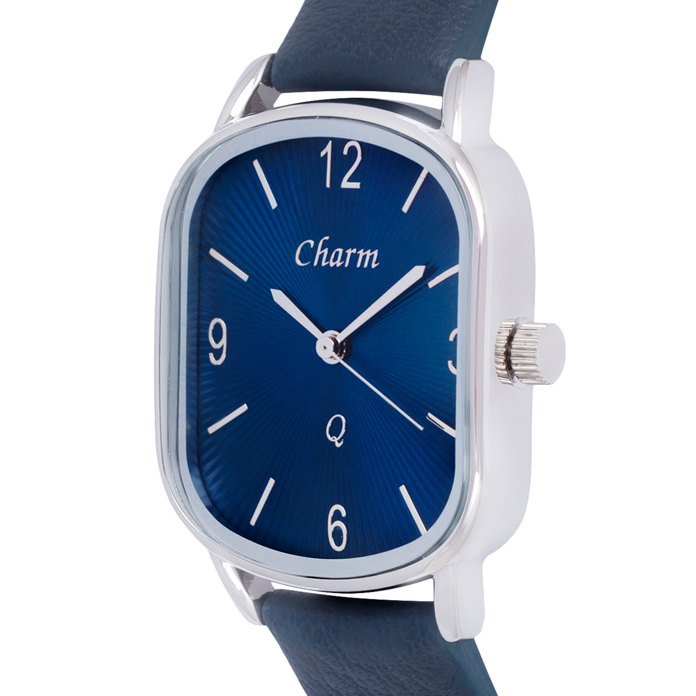 Наручные кварцевые часы Шарм сине-серебристые, с синим ремешком