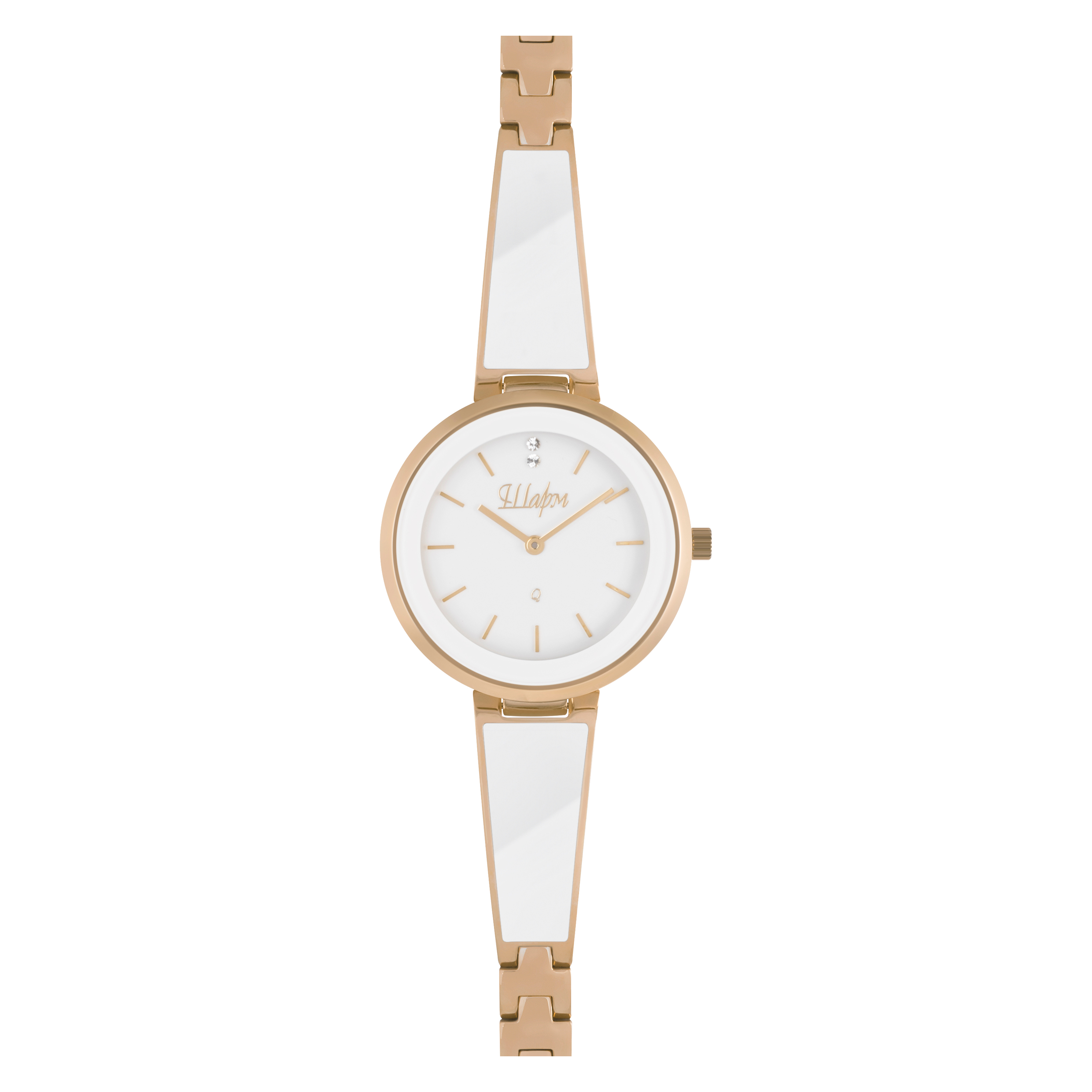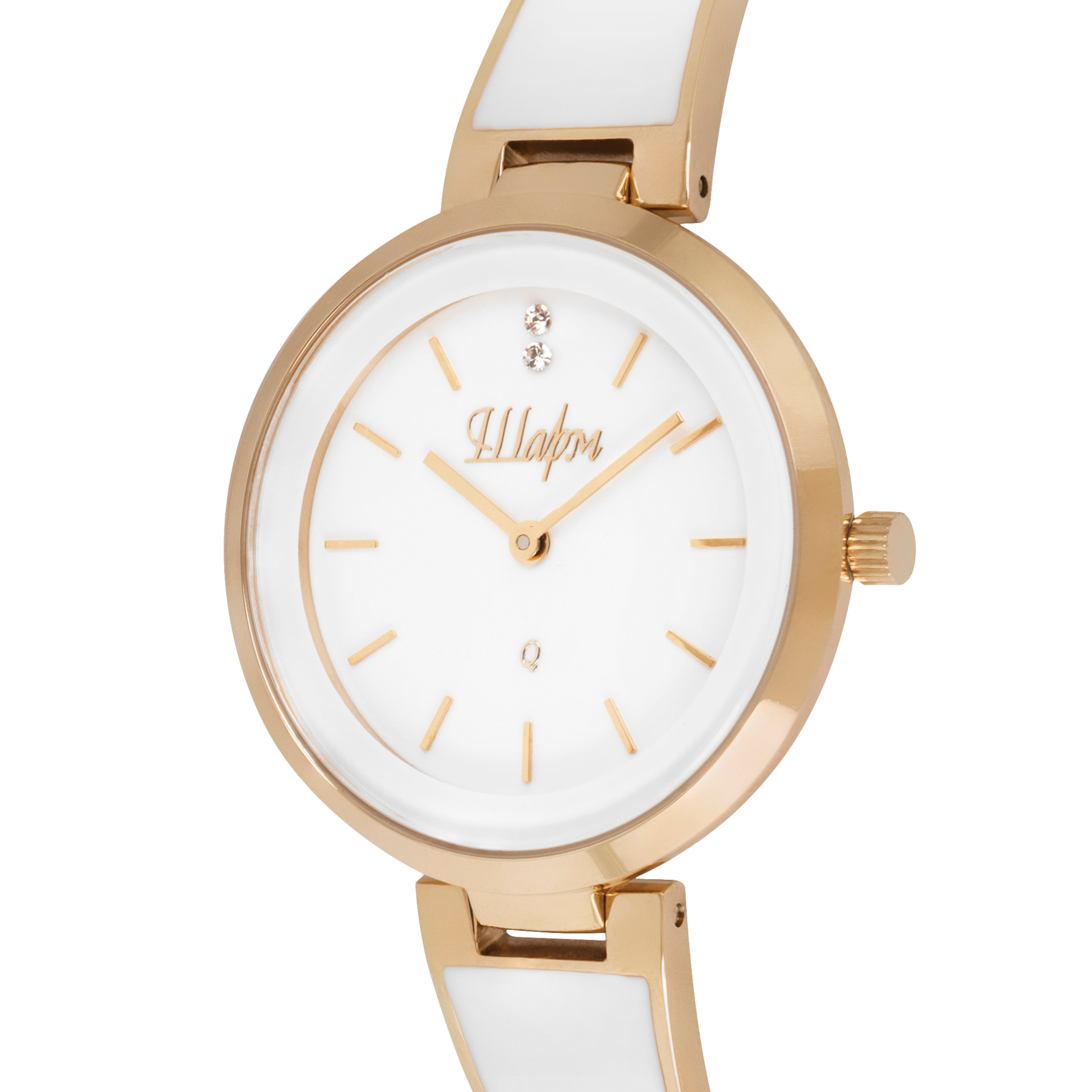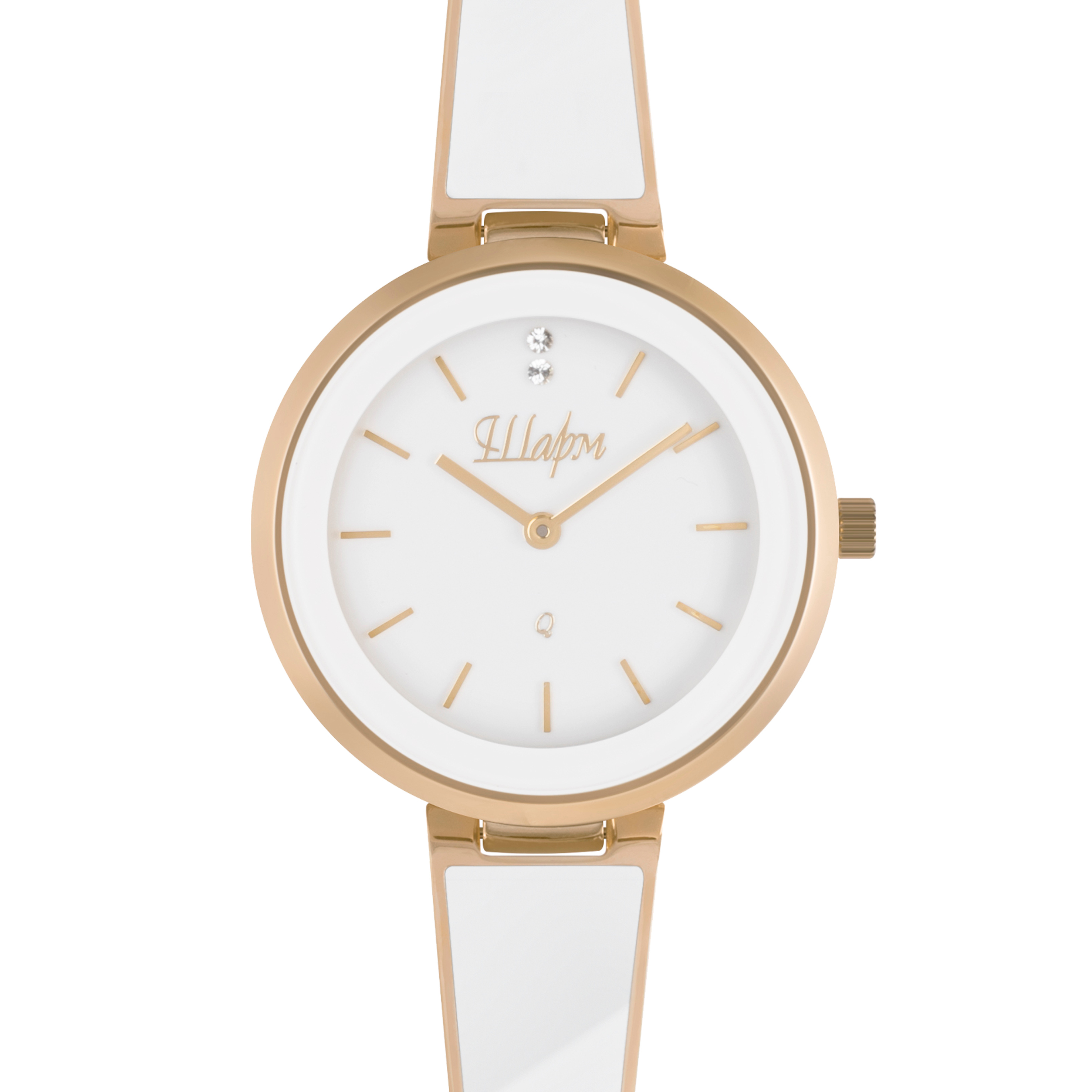 Наручные кварцевые часы Шарм золотисто-белые, со вставками под керамику, логотип на русском языке