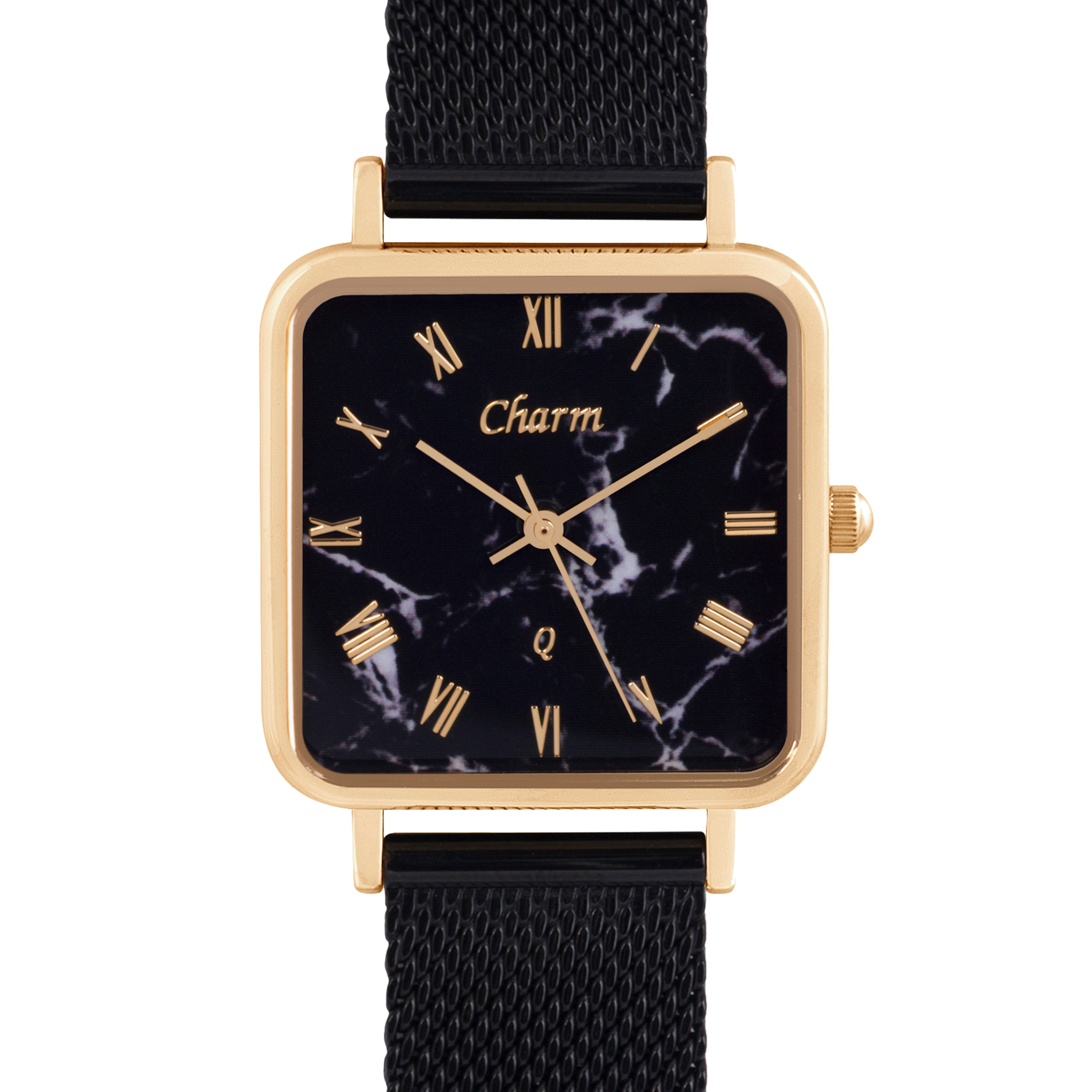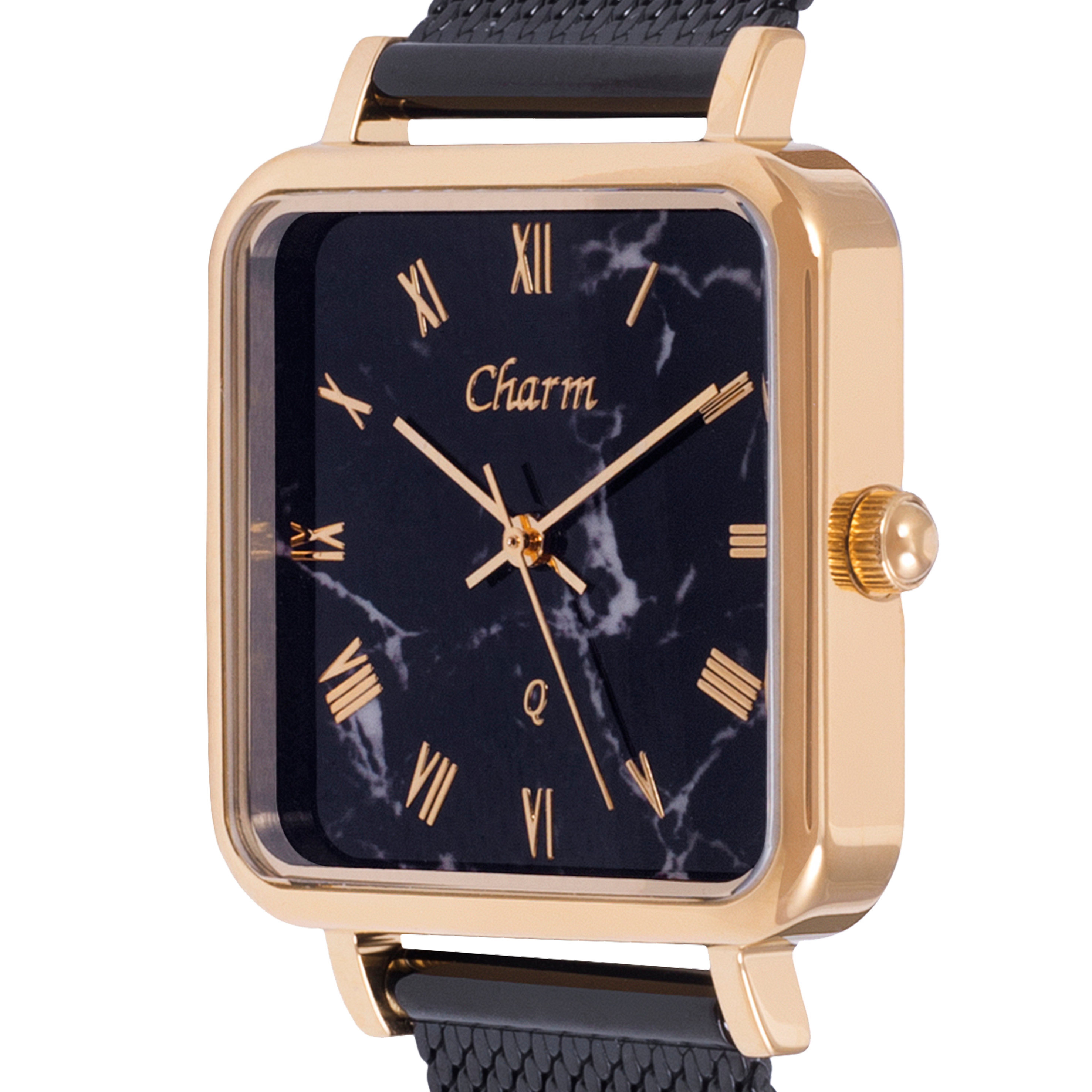 Наручные кварцевые часы Шарм золотисто-черные, под мрамор