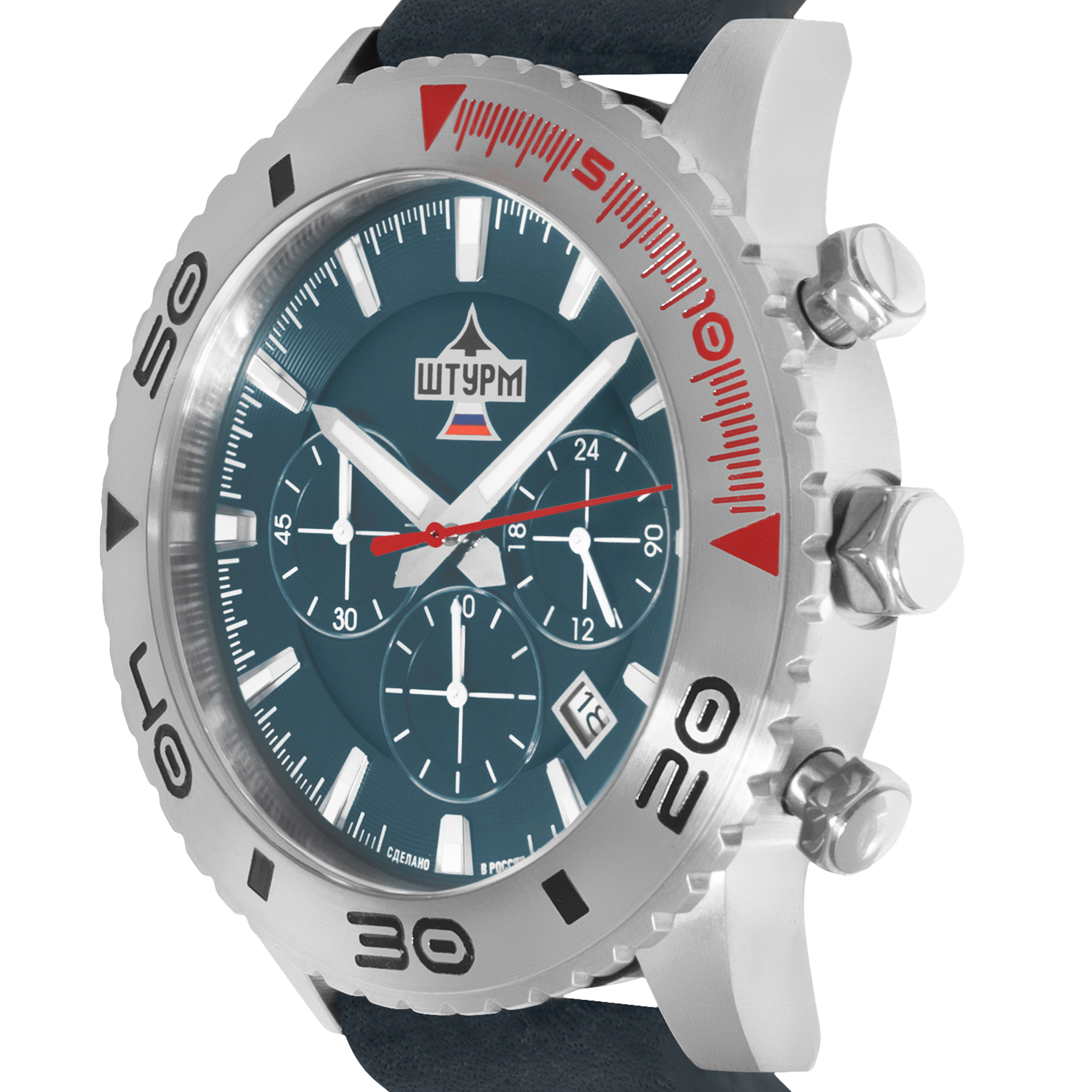 Наручные кварцевые часы Штурм бирюзово-серебристые, с темно-бирюзовым ремешком