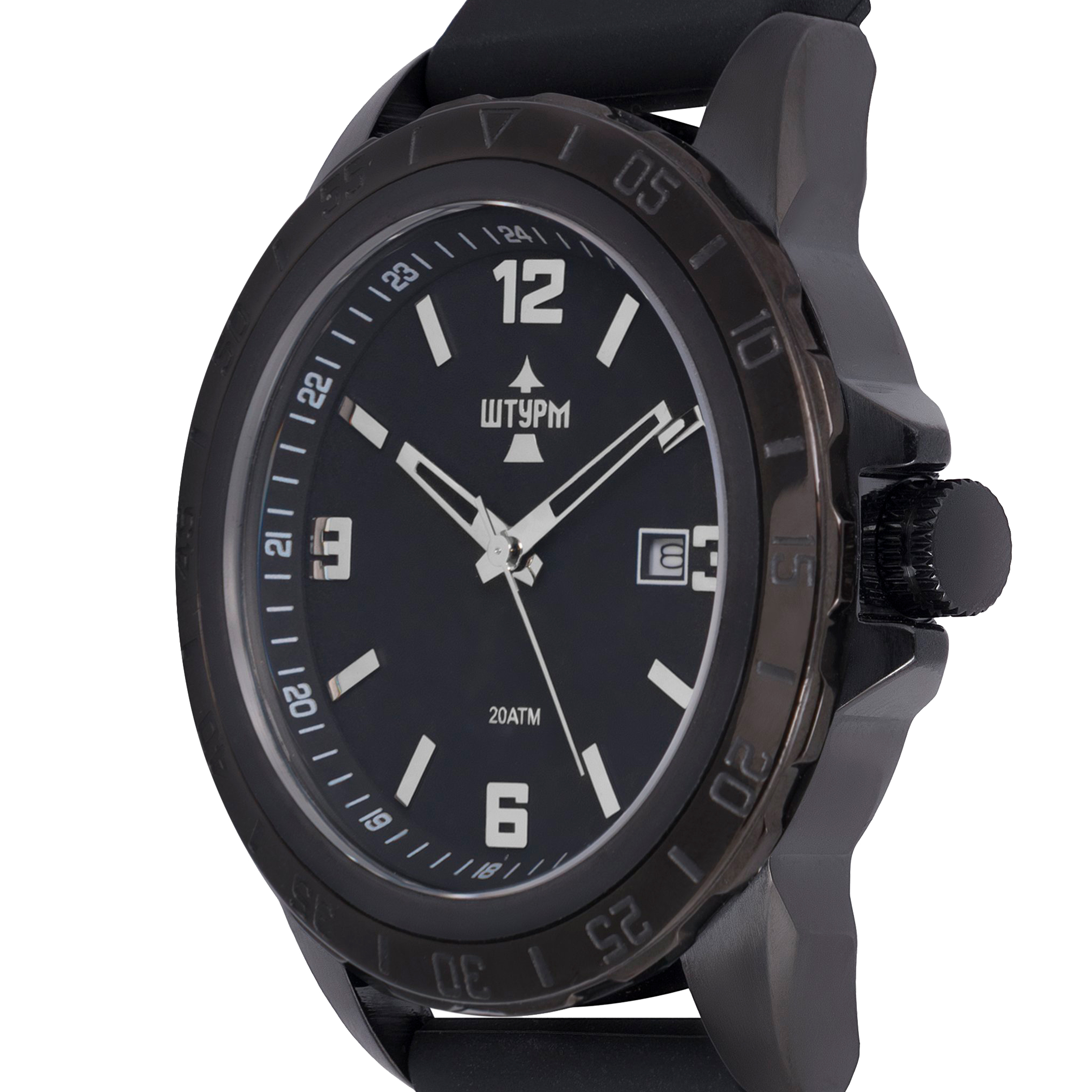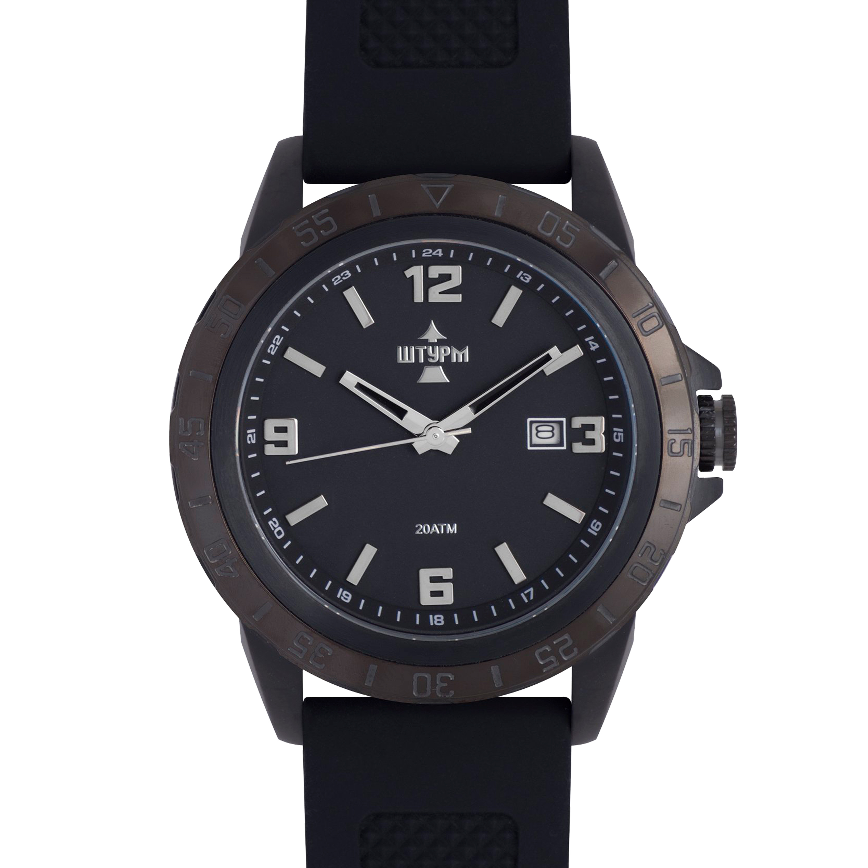 Наручные кварцевые часы Штурм черно-серые, с ремешком из каучука